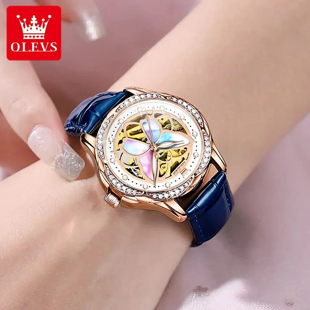 OLEVS High-Quality Women's Skeleton Watch – Ceramic Strap, Waterproof Design.