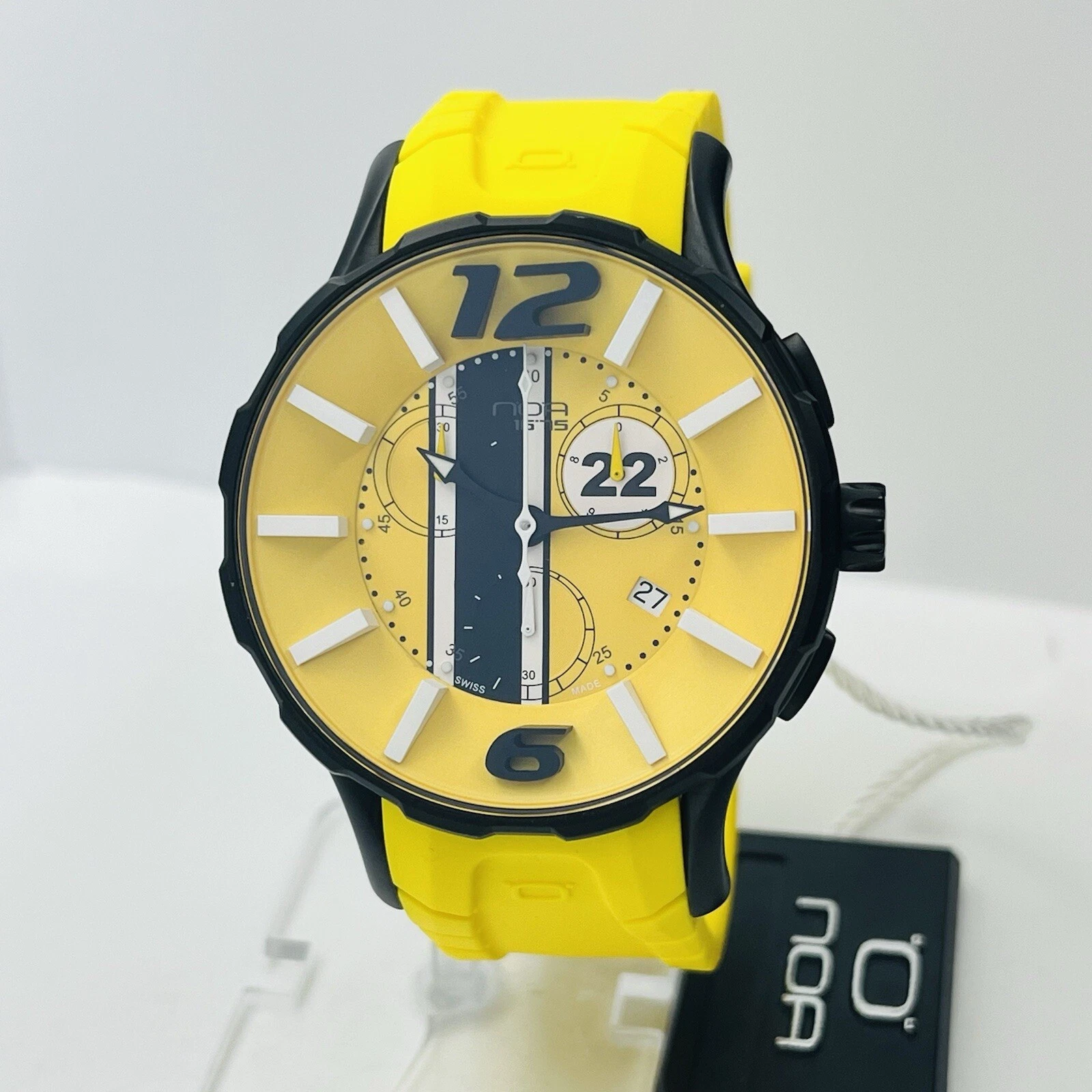 NOA G Racer Men's Yellow Quartz Chrono Steel 44mm Swiss Made Watch Eta 22 Jewels