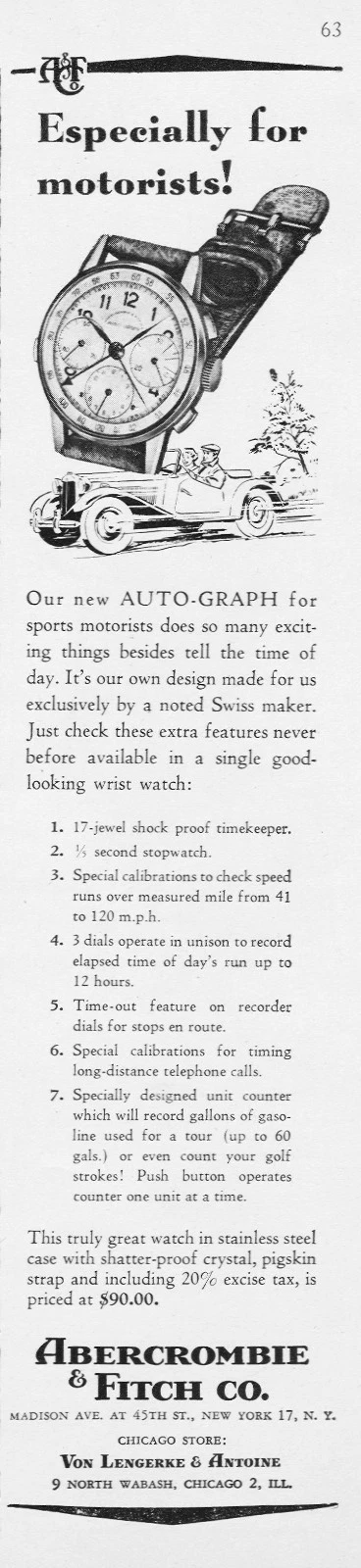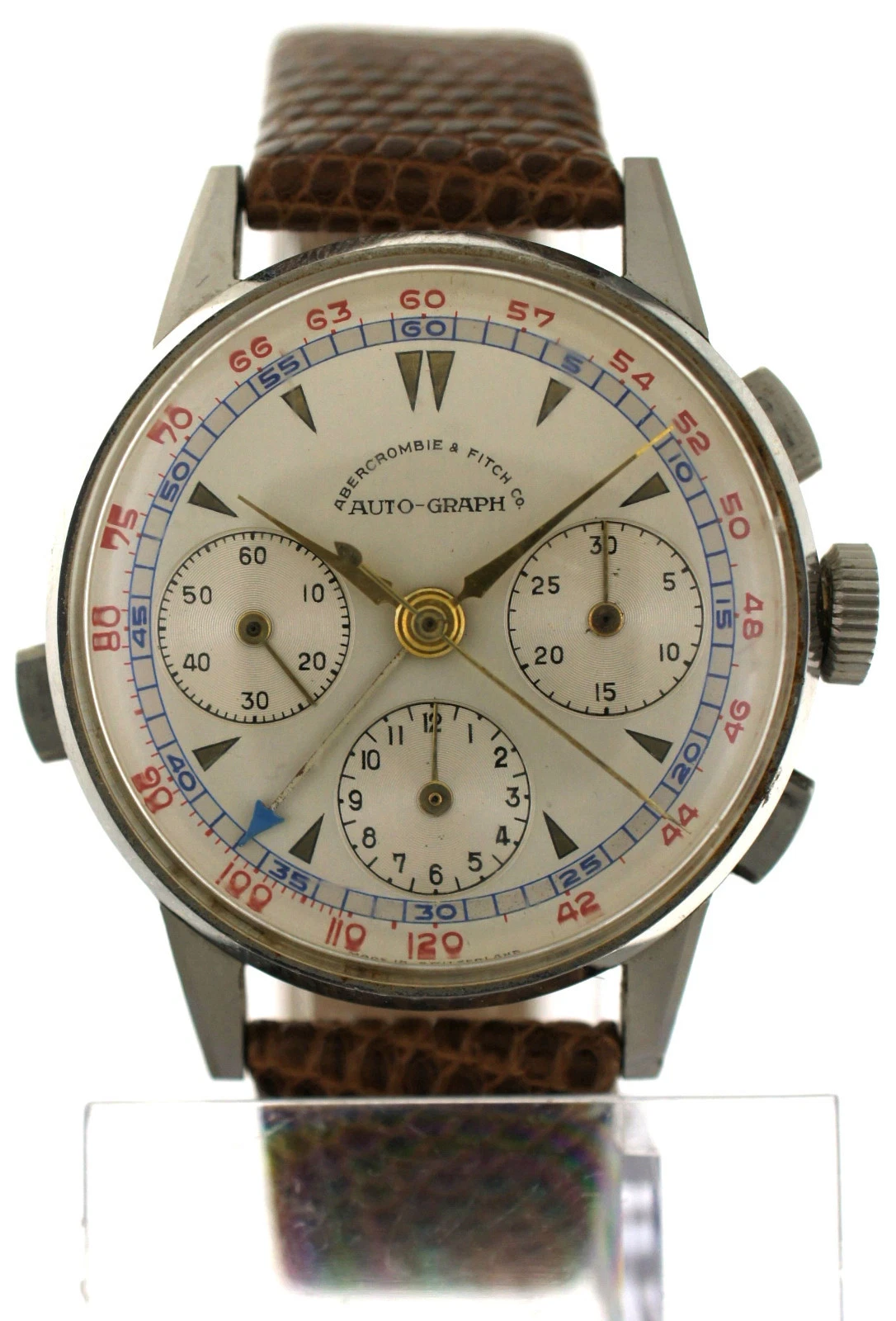 RARE Vintage 1950s Heuer for Abercrombie Fitch Auto-Graph Chronograph Watch 72C