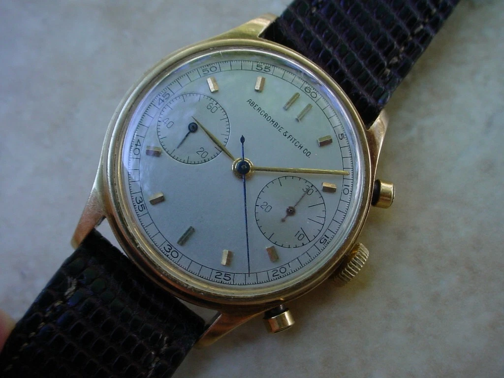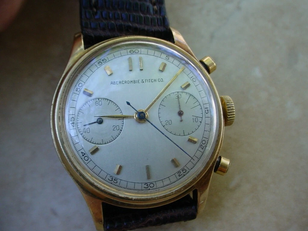 Rare Abercrombie & Fitch / Heuer 14K Gold Chronograph, Heuer Val.22 Movement