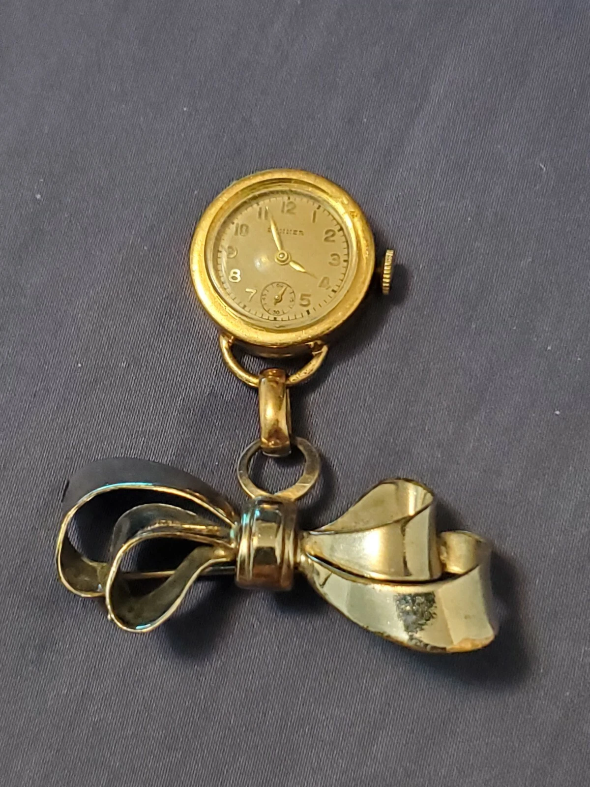 Rare Antique Banner Manual Wind Lapel Brooch Watch