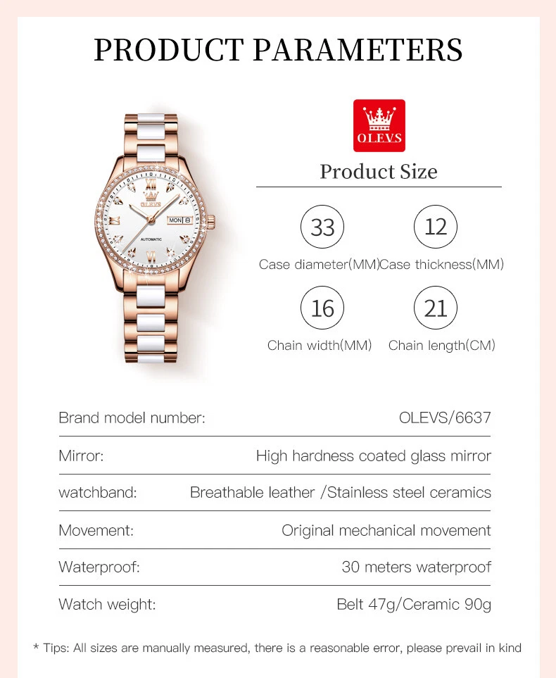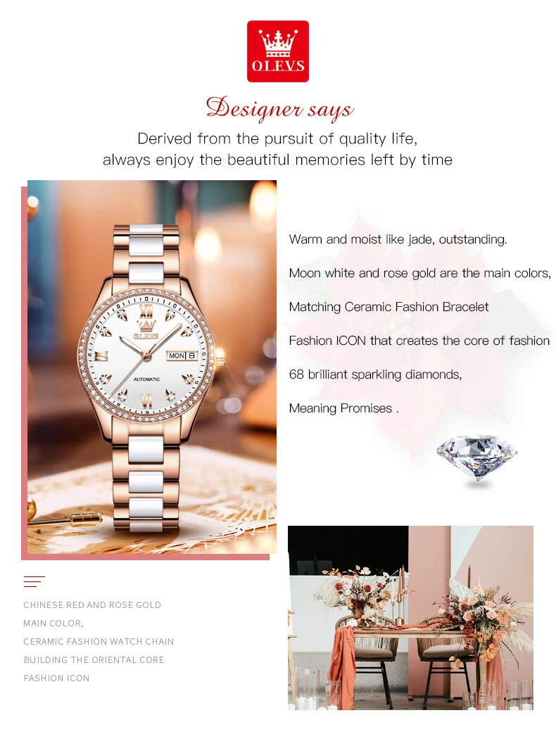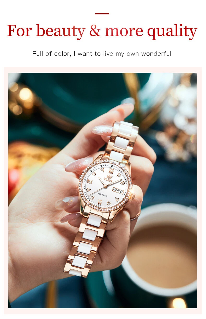 Luminous Hands Ceramic Band Automatic Mechanical Watch Women's Wrist Watch Gift