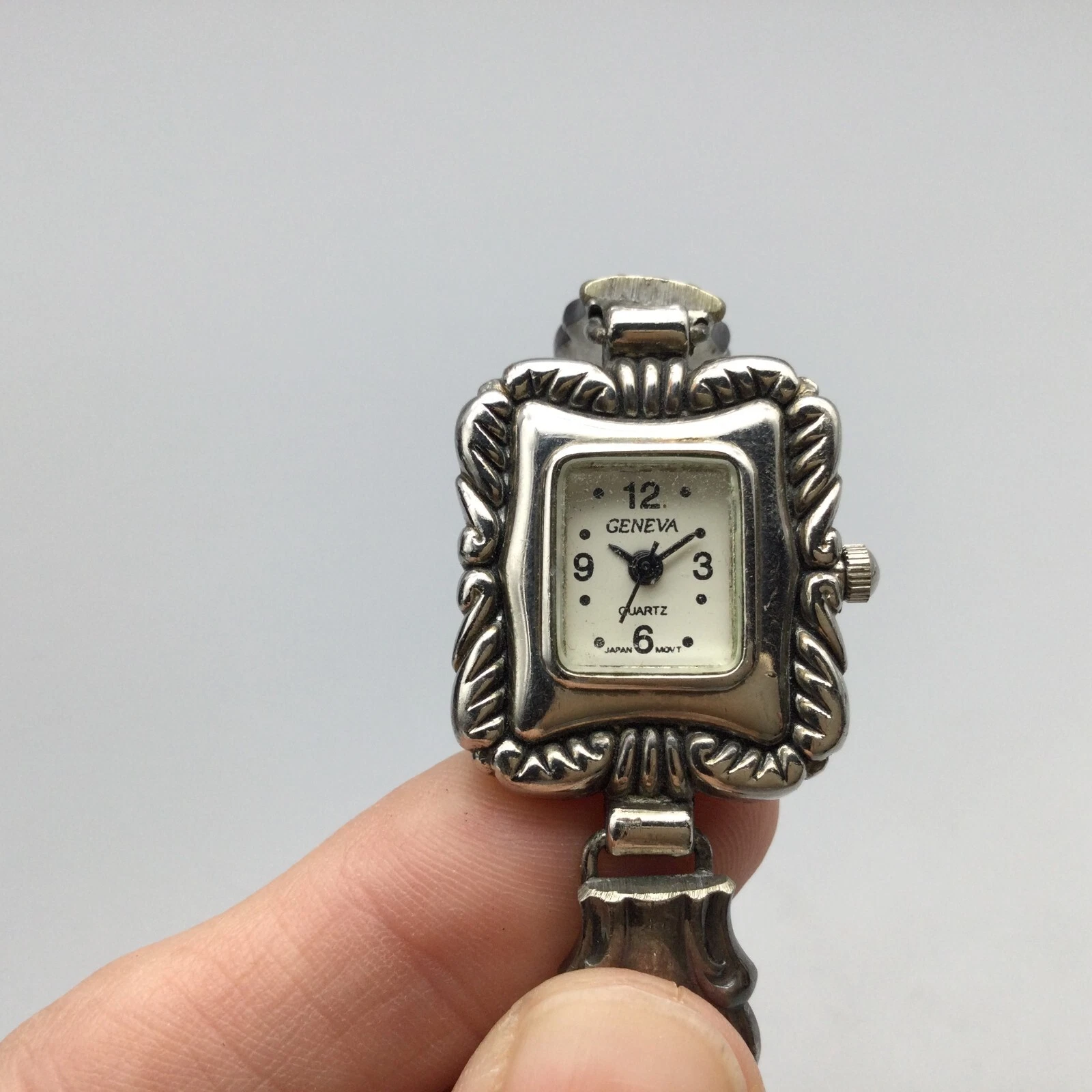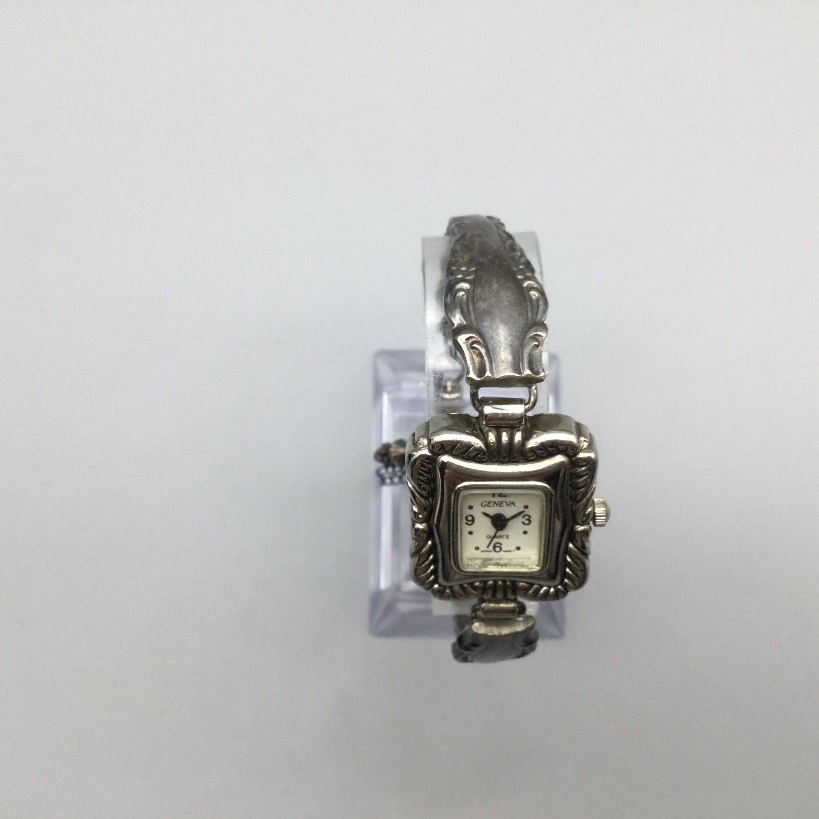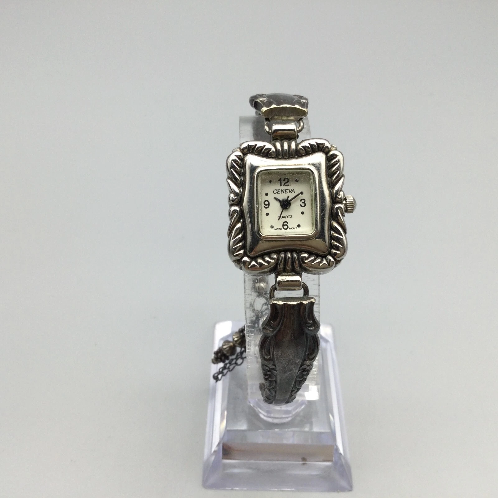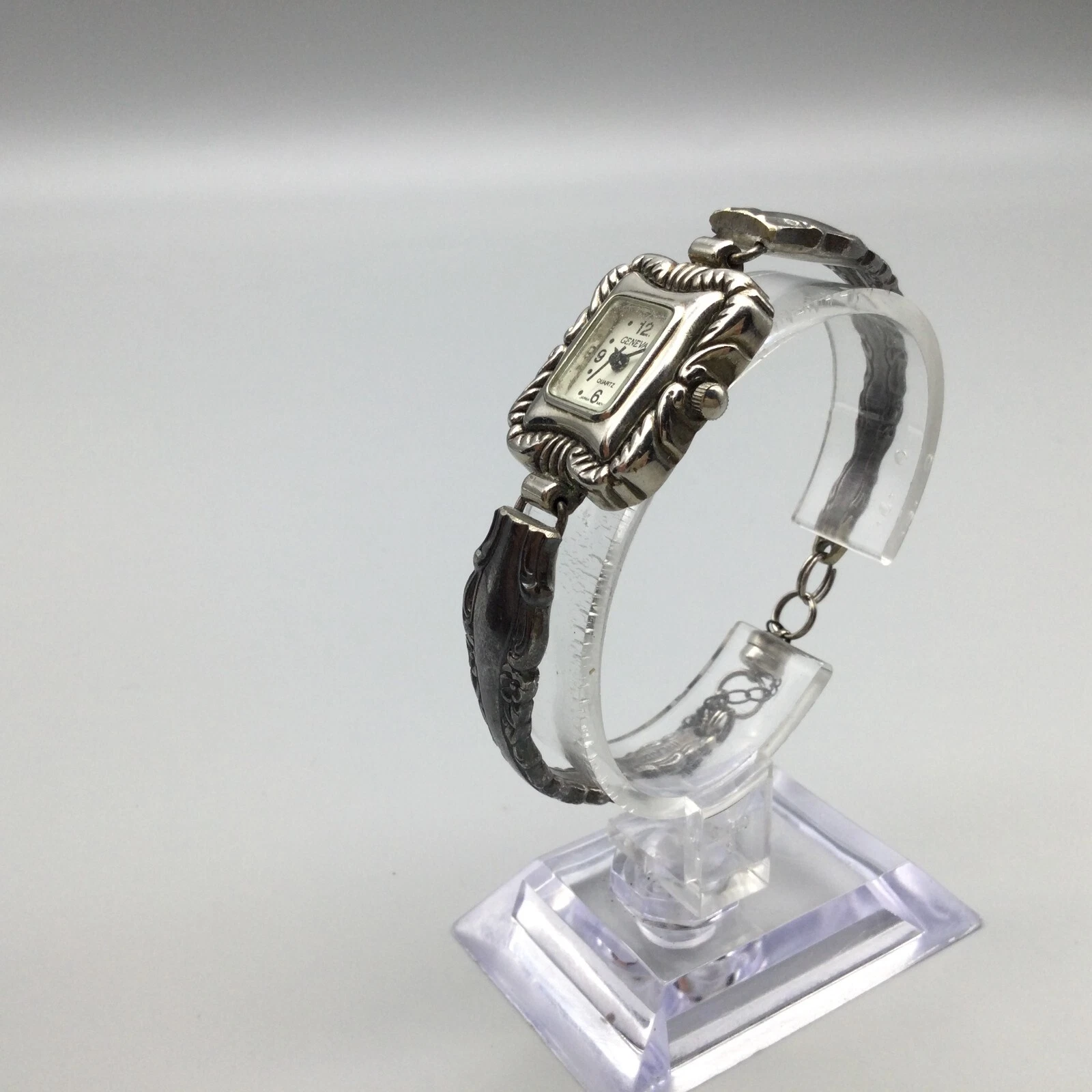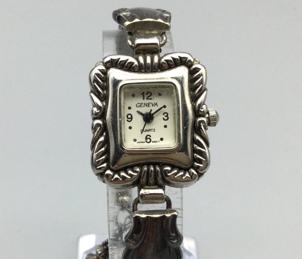 Geneva Watch Women 22mm Silver Tone Silverware Band New Battery 6.5"