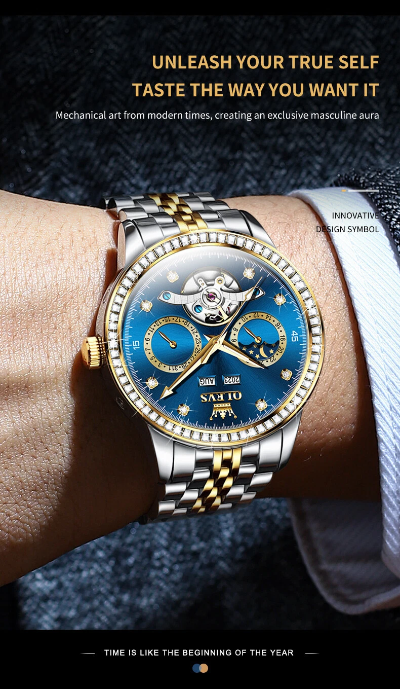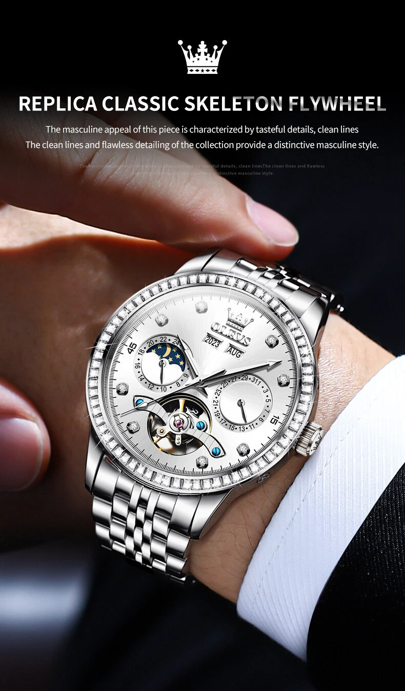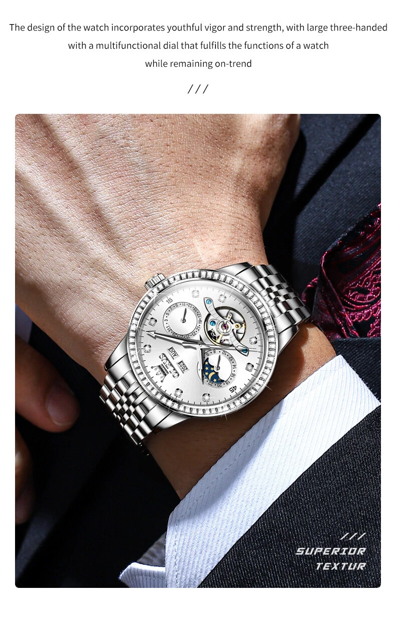 Steel Band Men's Mechanical Watch Luminous Hands Date Month Show Automatic Watch