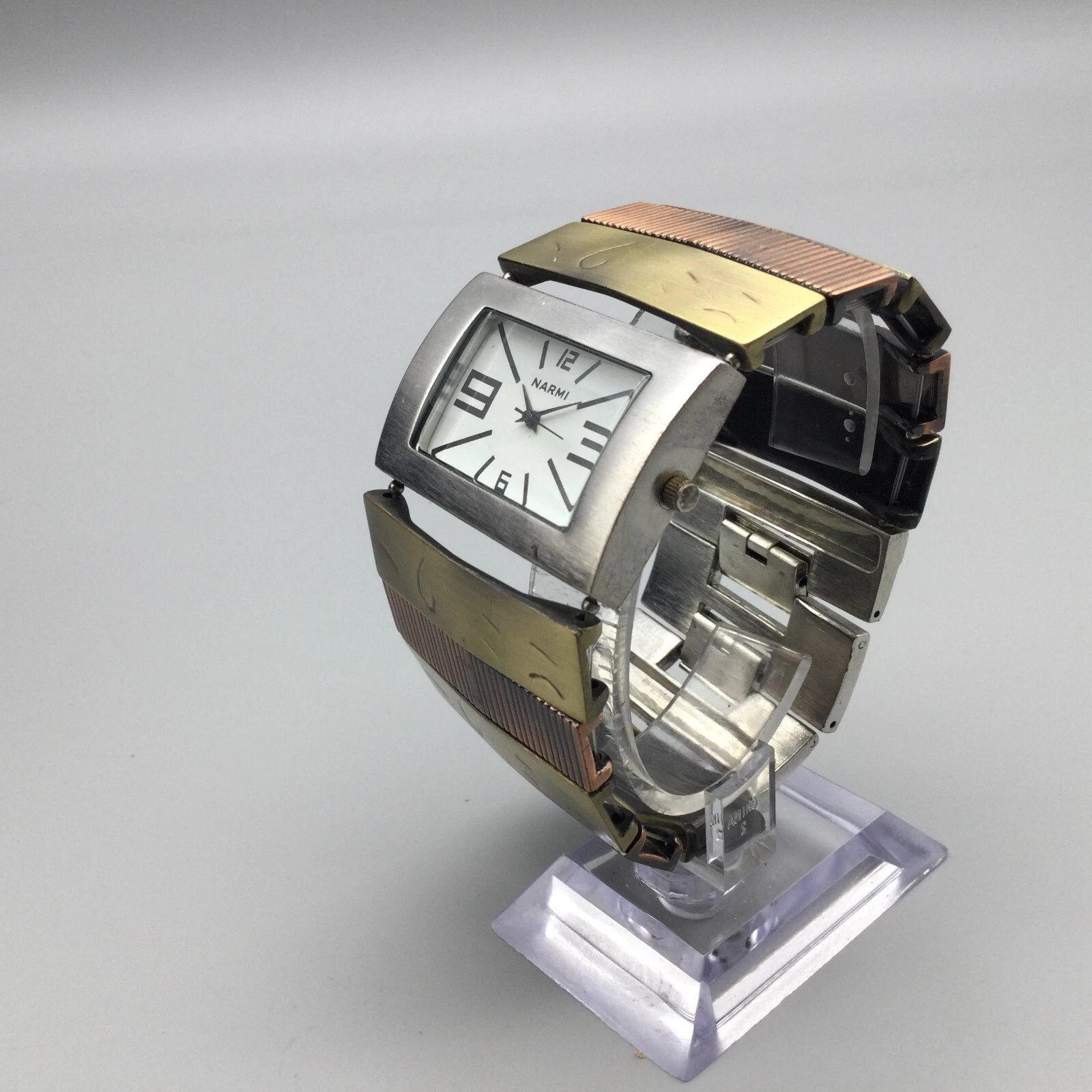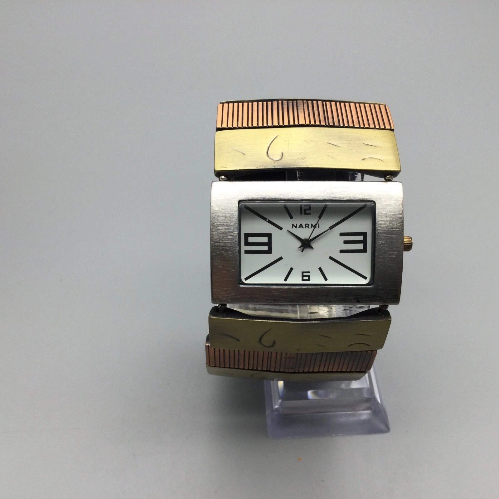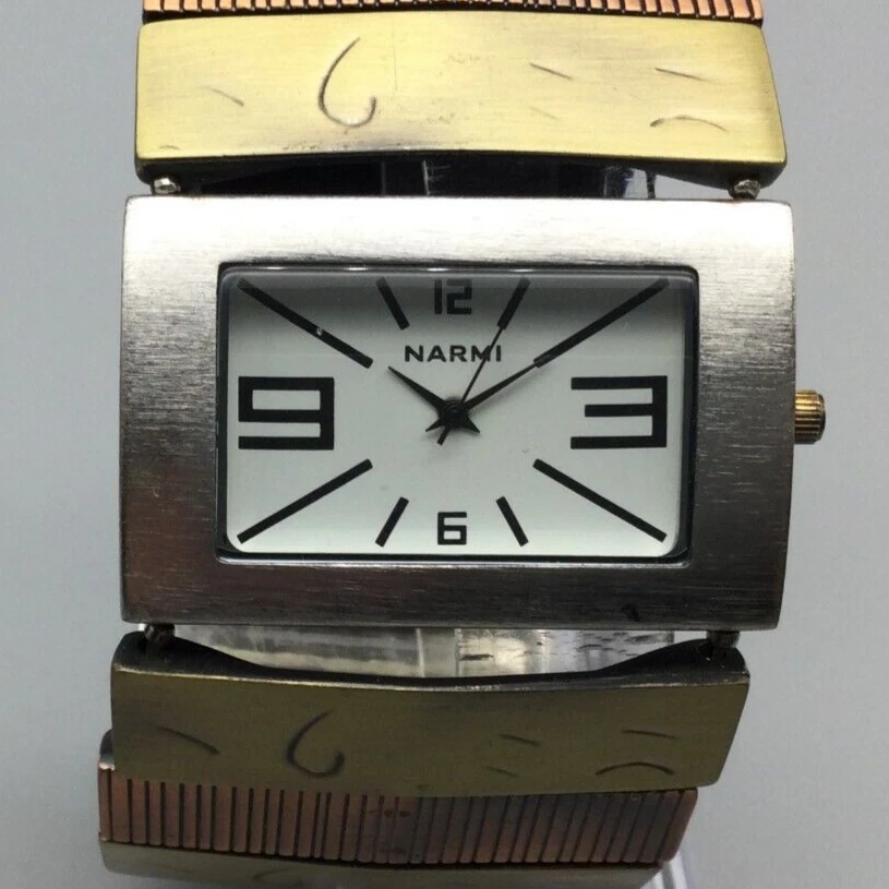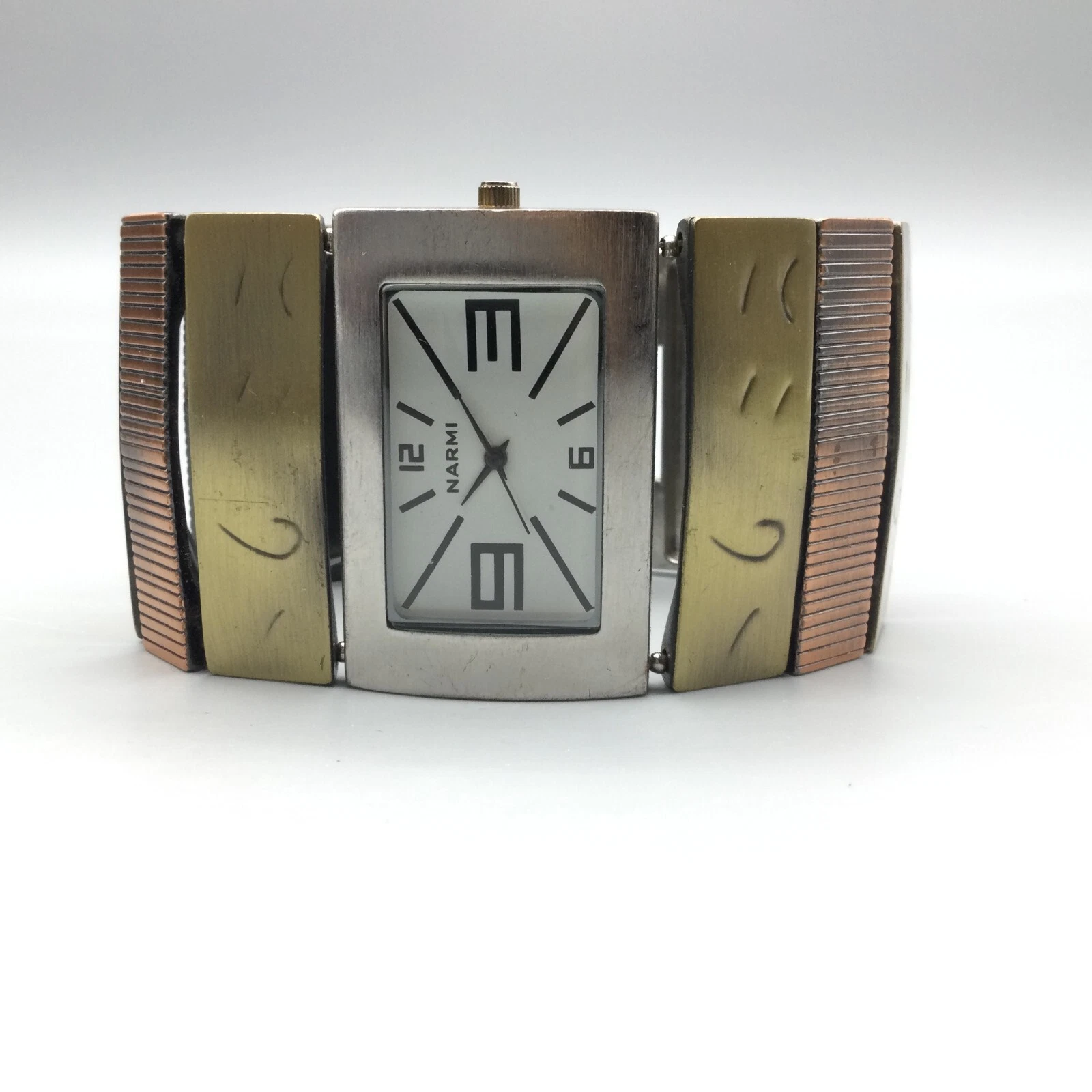 Narmi Watch Women 42mm Silver Gold Two Tone Dial Wide Band New Battery 7.25"