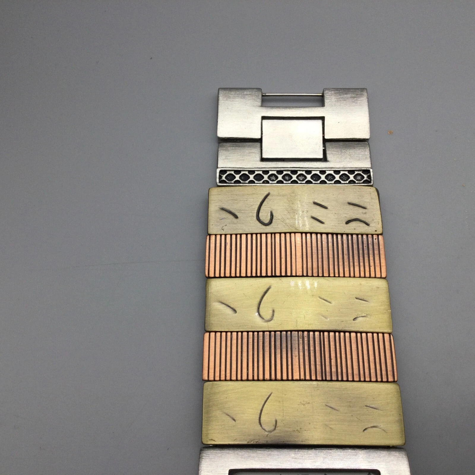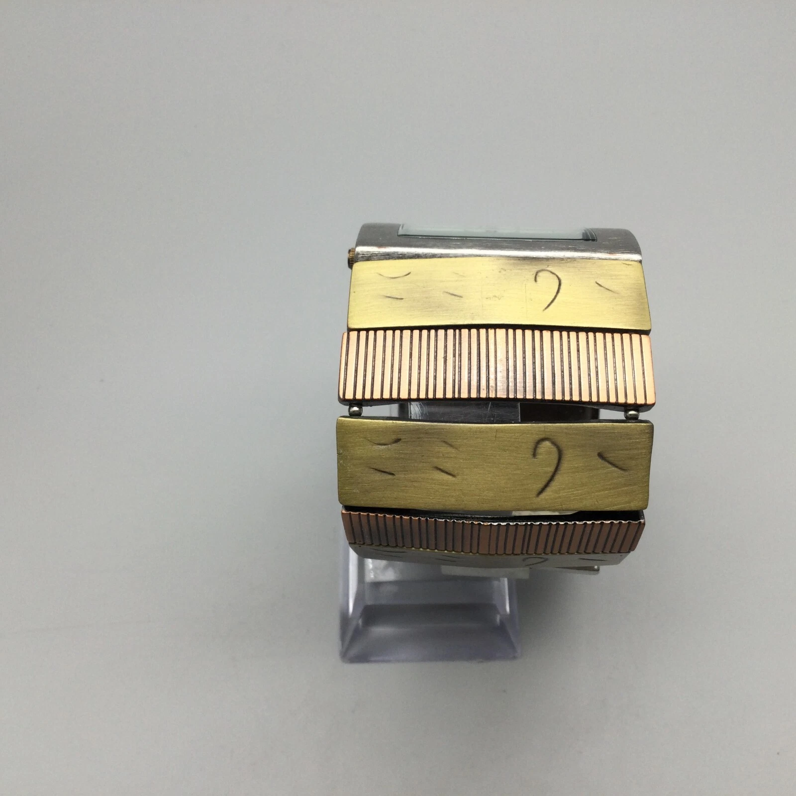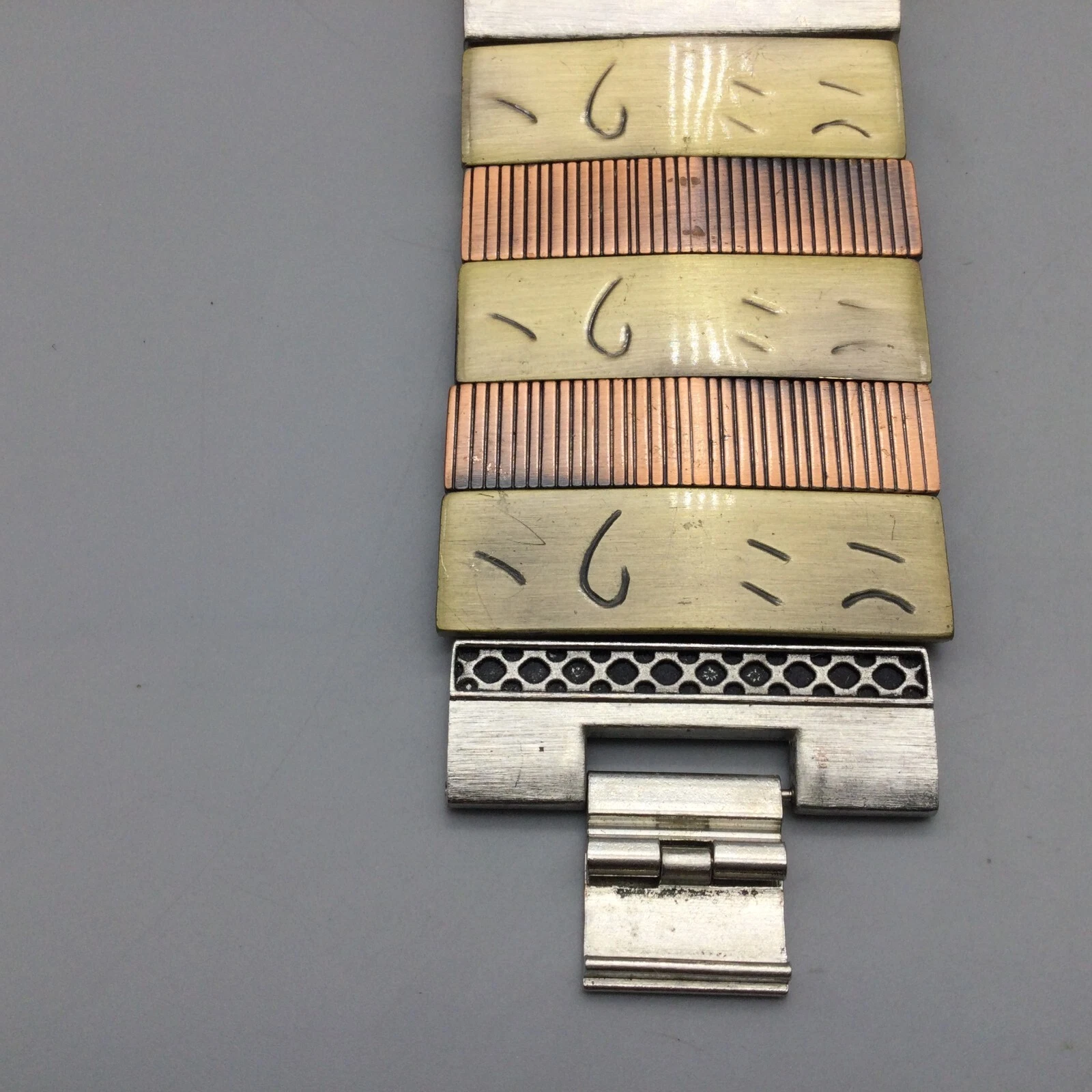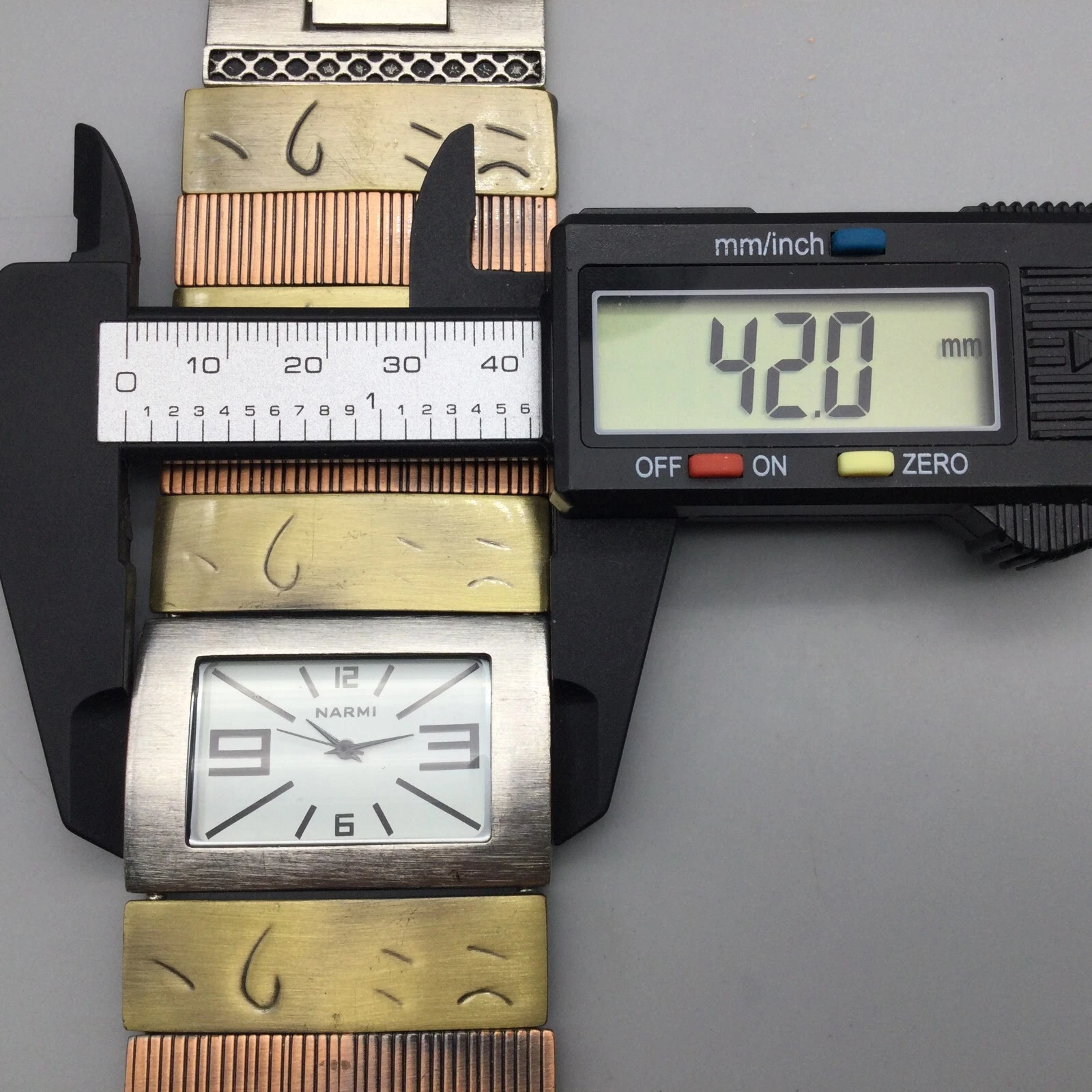 Narmi Watch Women 42mm Silver Gold Two Tone Dial Wide Band New Battery 7.25"