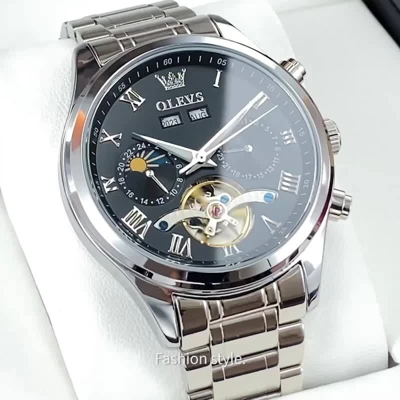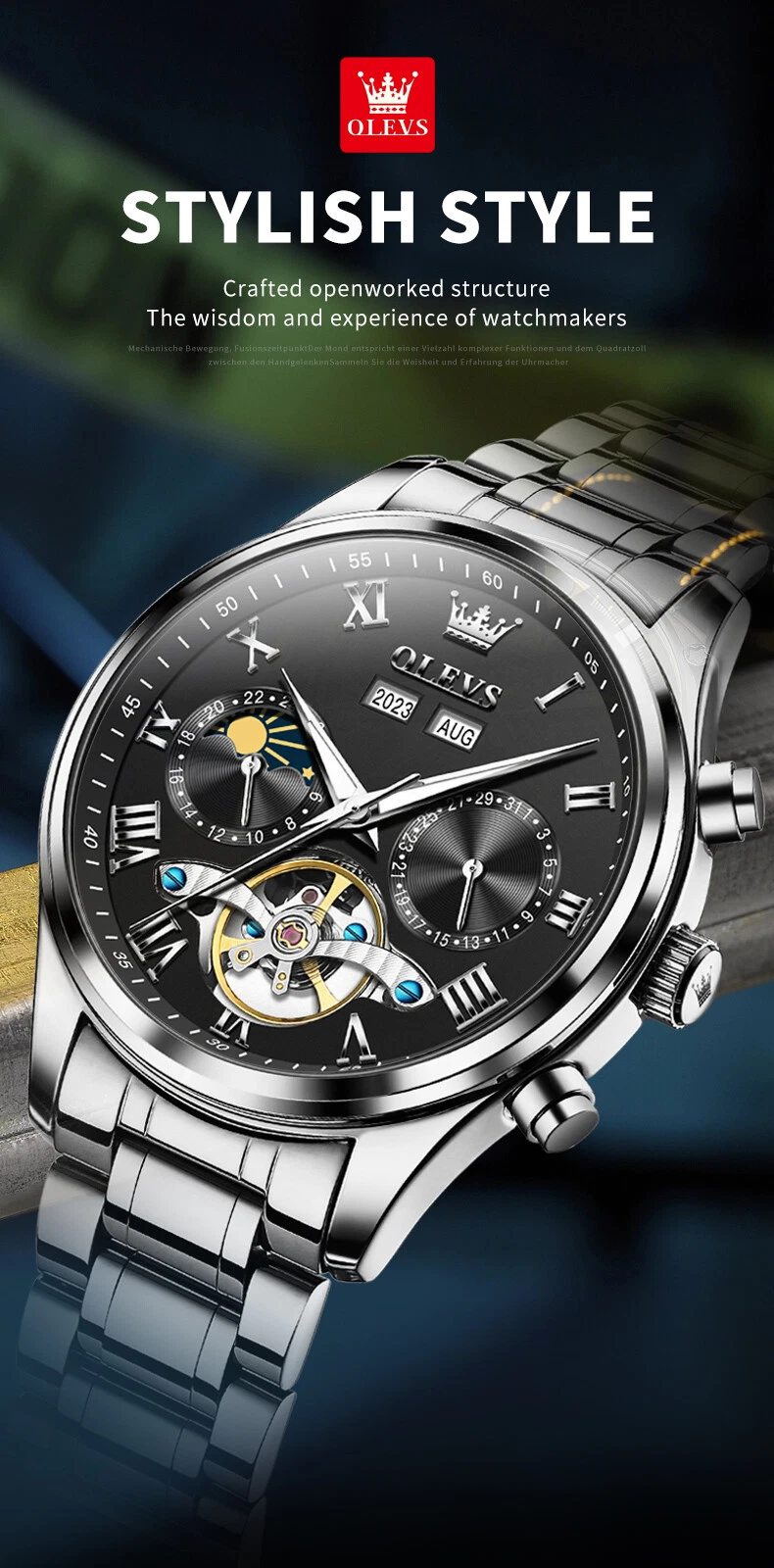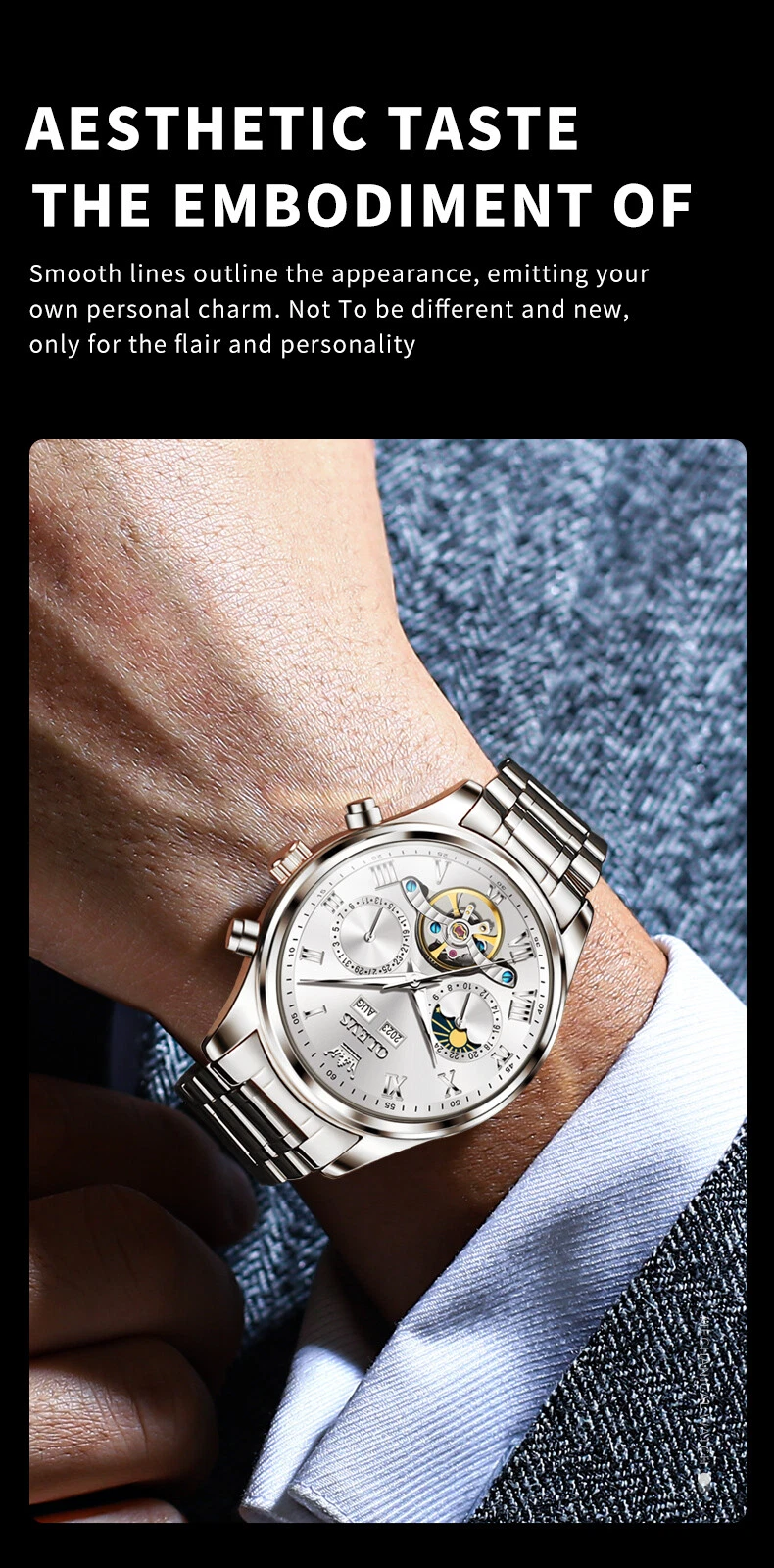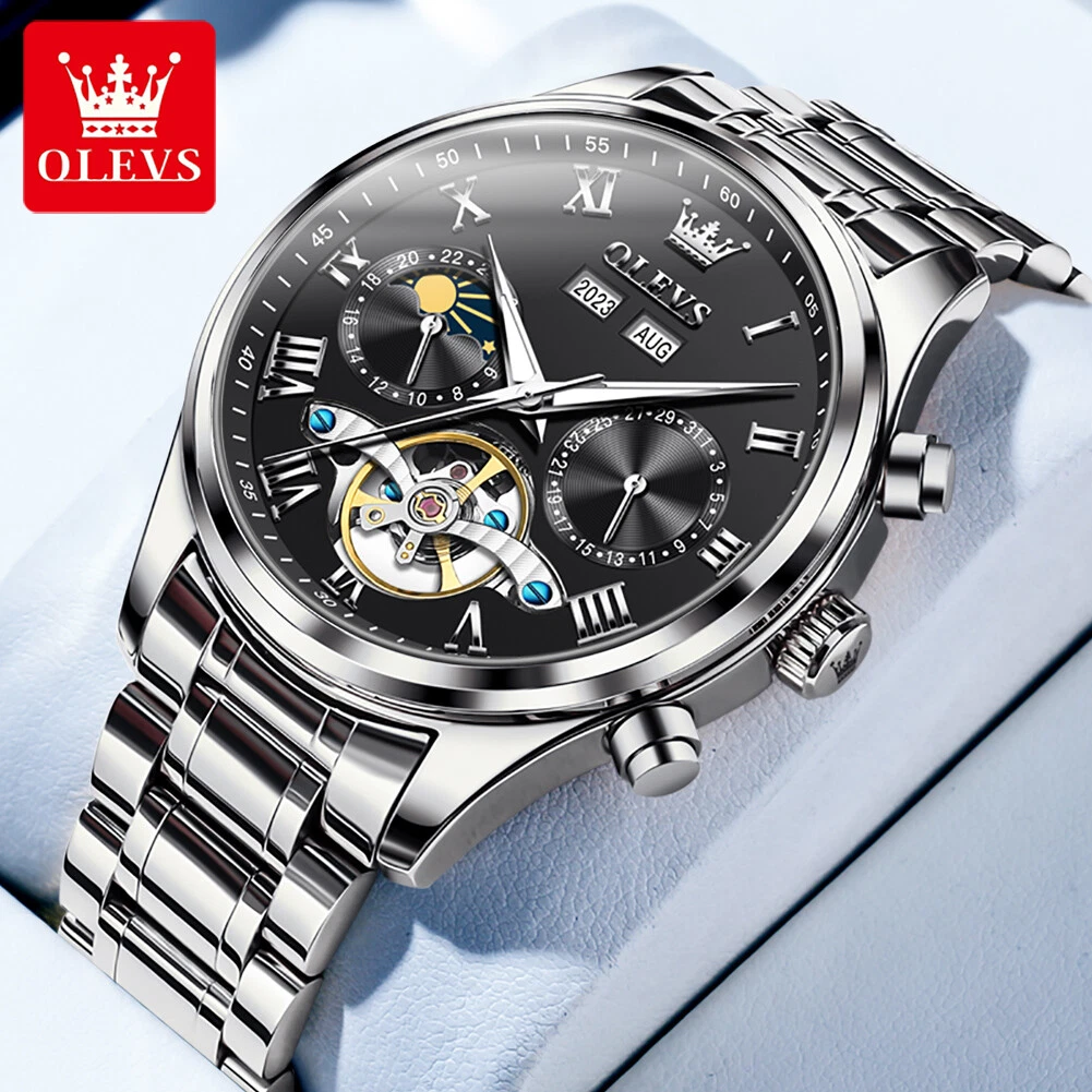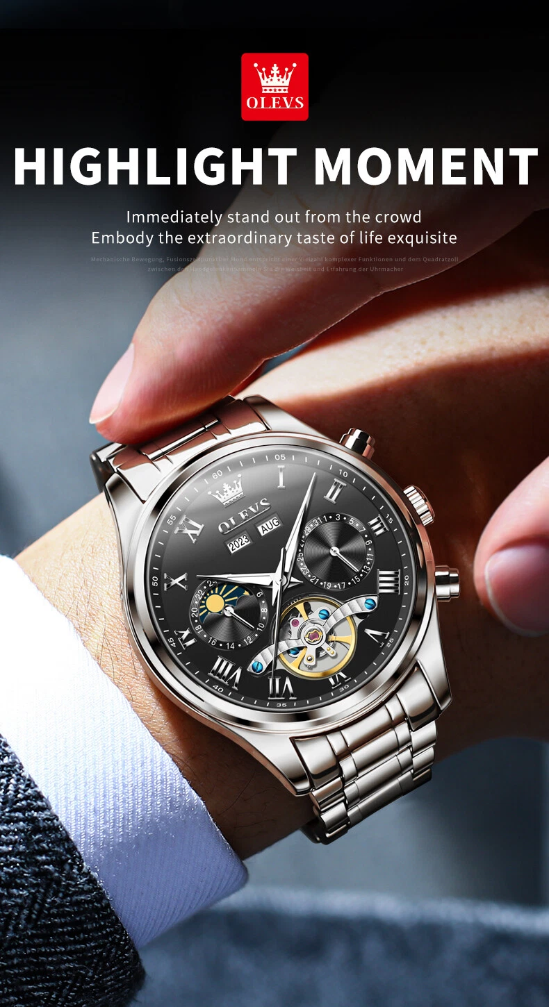 Steel Band Men's Mechanical Watch Luminous Hands Date Moon Phase Automatic Watch