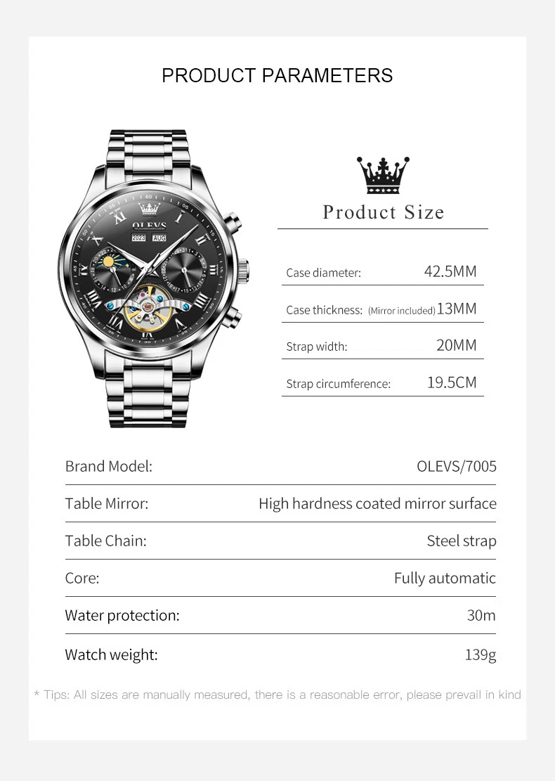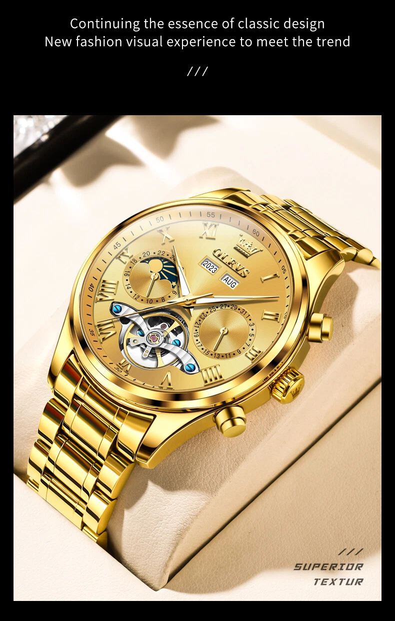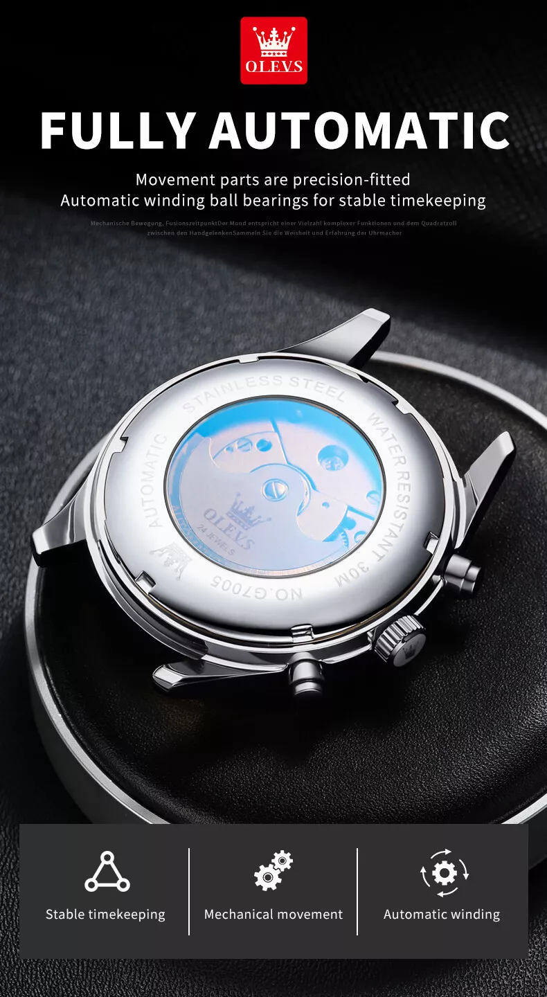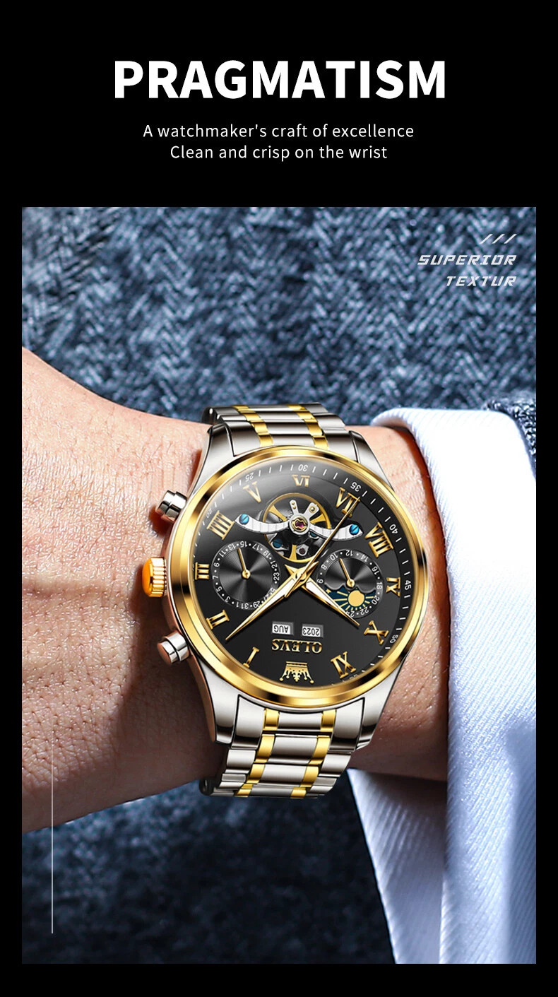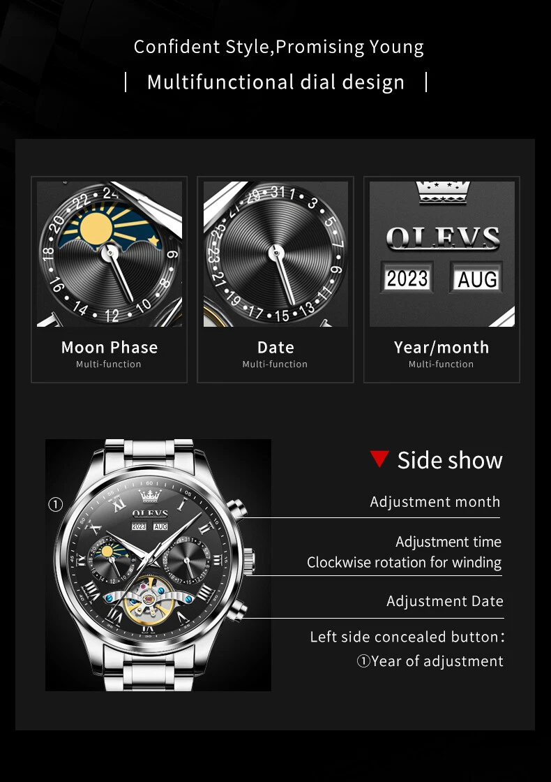 Steel Band Men's Mechanical Watch Luminous Hands Date Moon Phase Automatic Watch