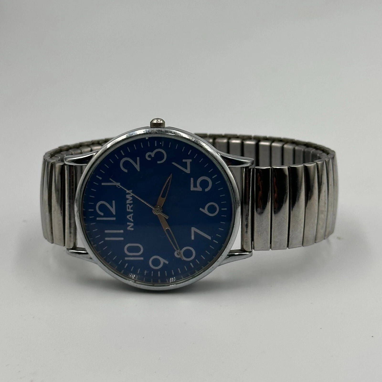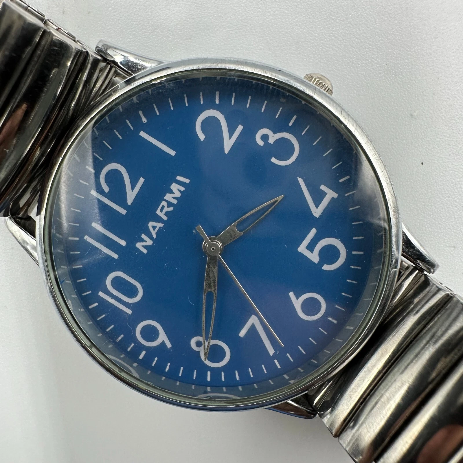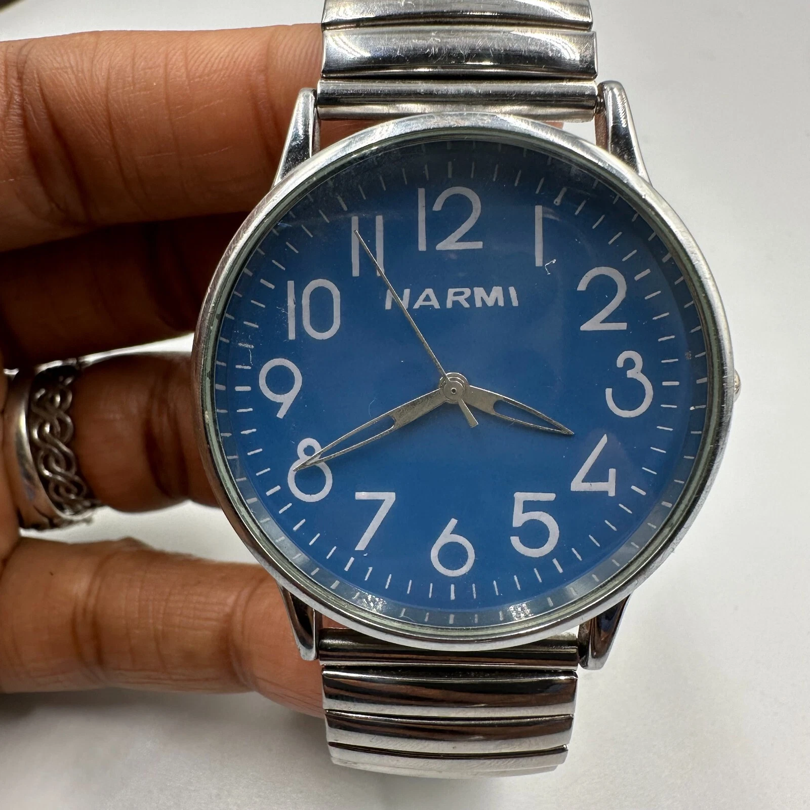 Narmi Watch Women Ladies Silver Tone Blue Dial 37MM Round New Battery