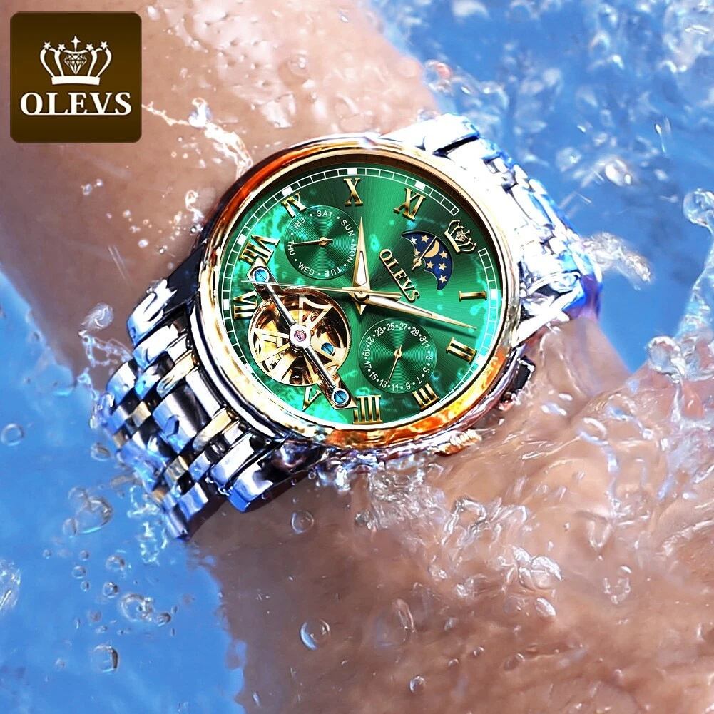 Top Brand Olevs Automatic Mechanical Wrist Watch Dress Luxury Moon Light Phaseto