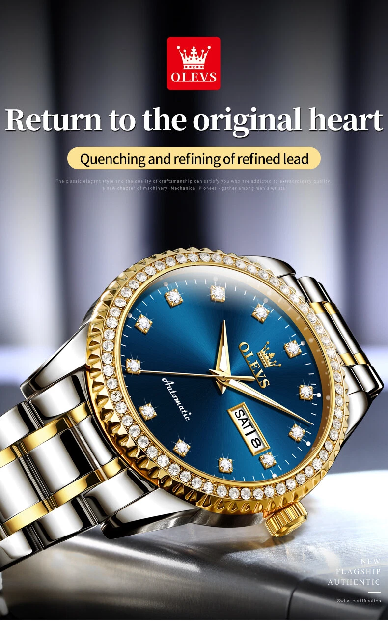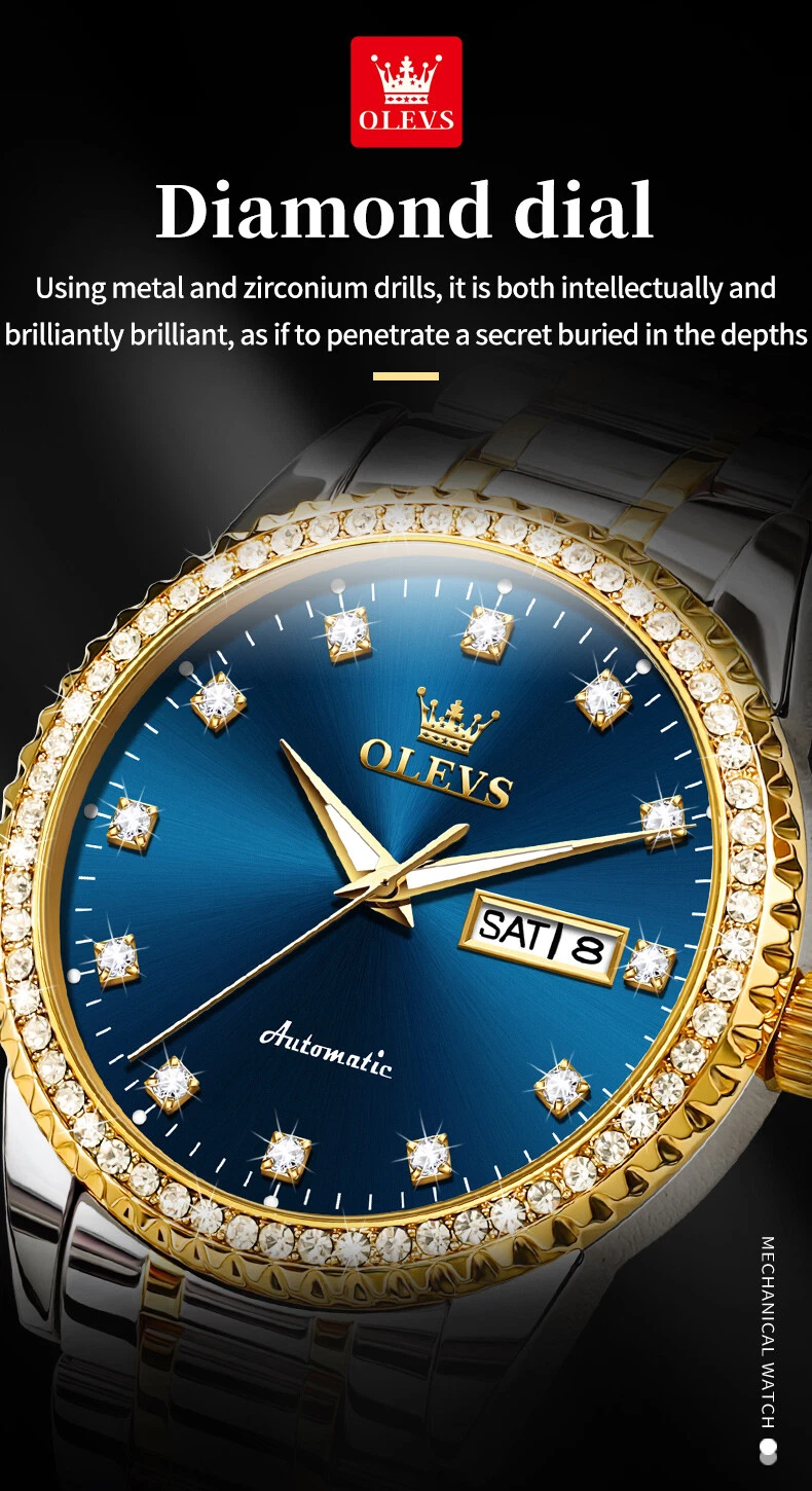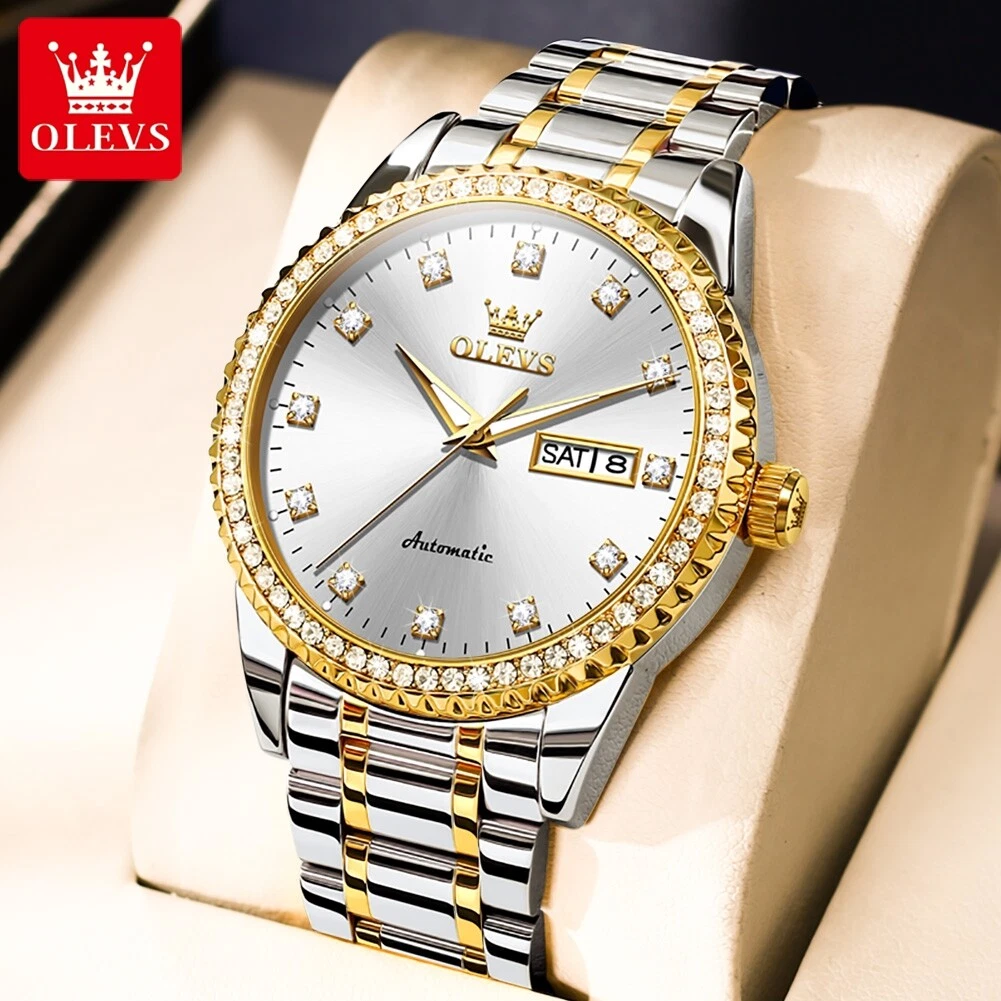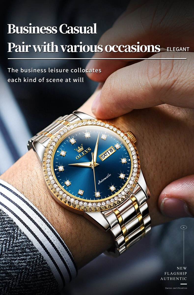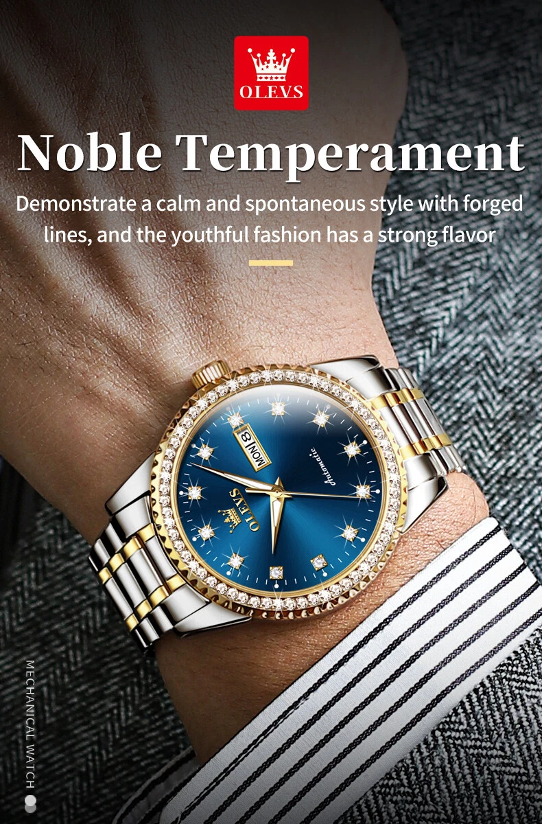Men's Wrist Watch Steel Band Automatic Mechanical Watch Waterproof Day-Date