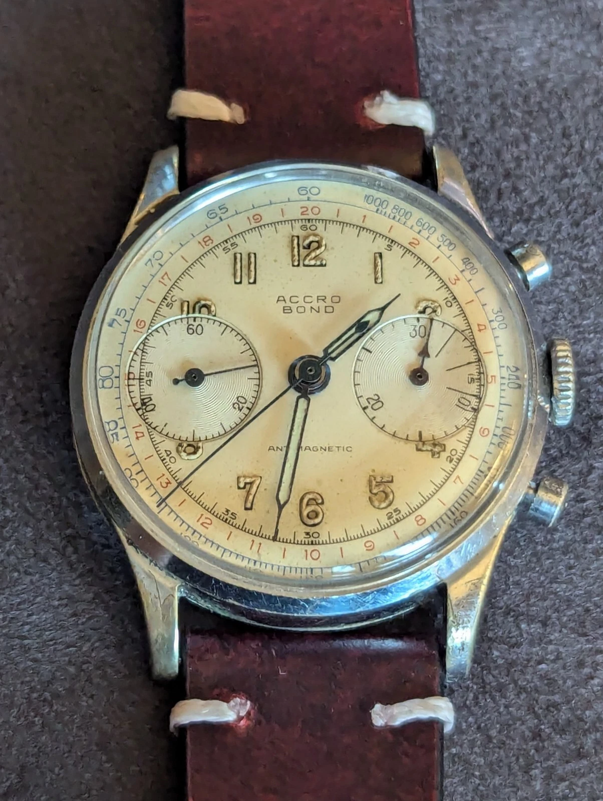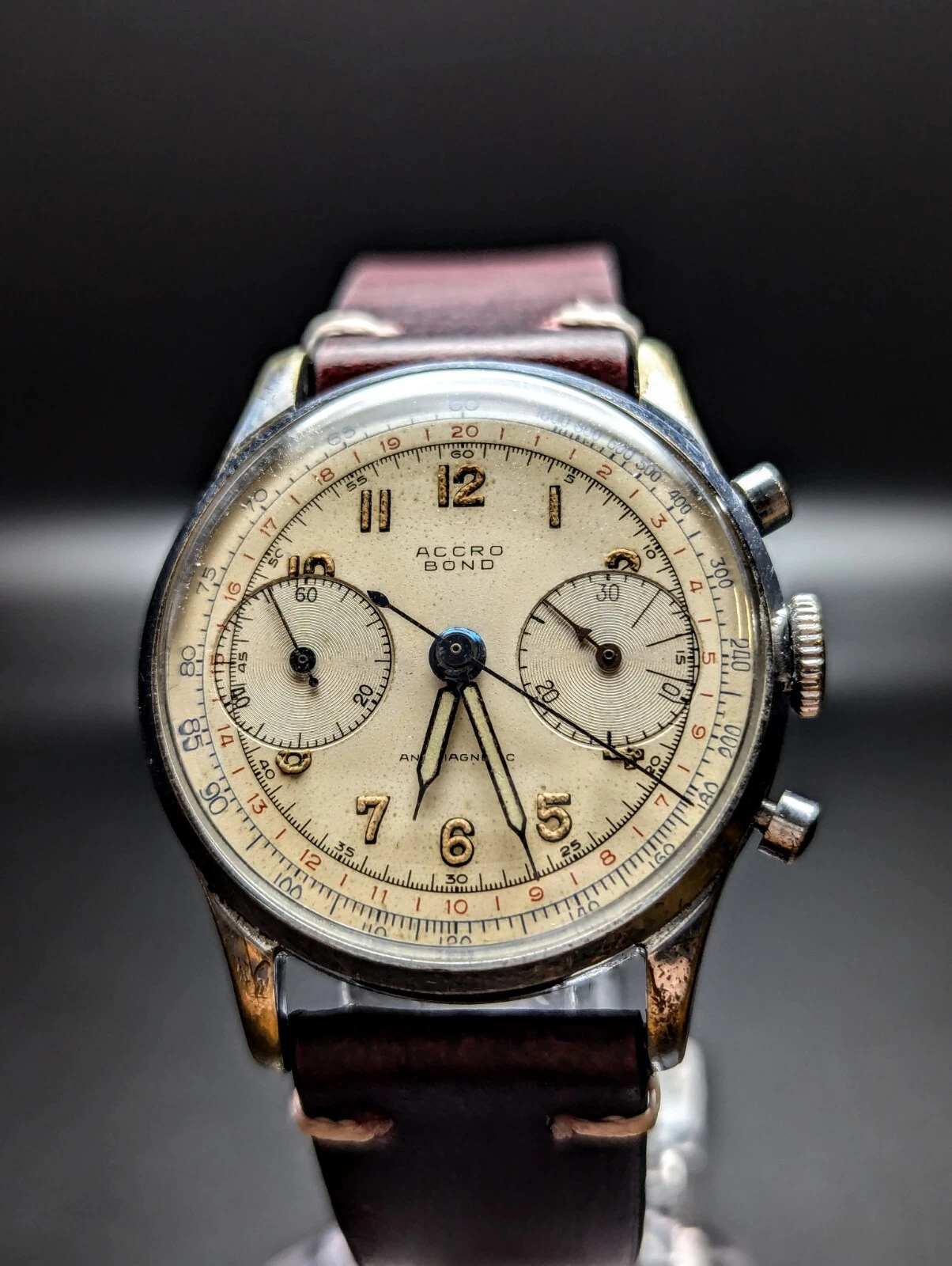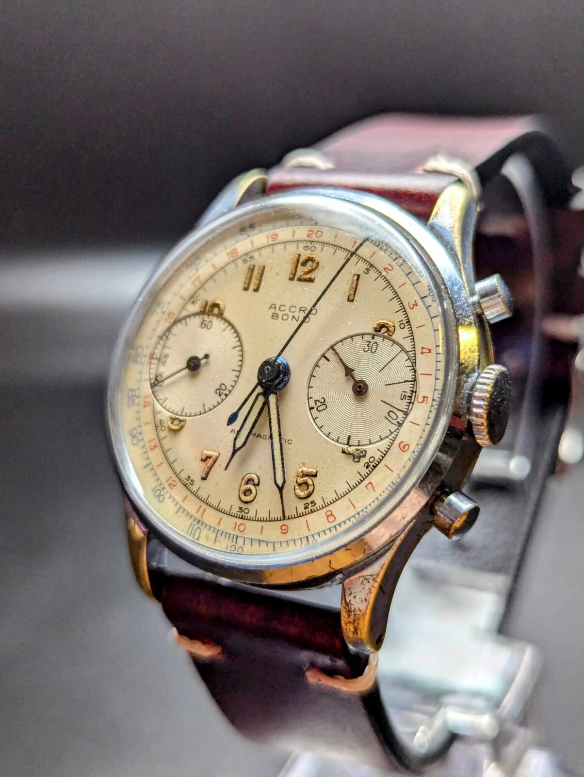 Vintage Novus Accro Bond 17 jewel chronograph wrist watch Landeron 48 SERVICED