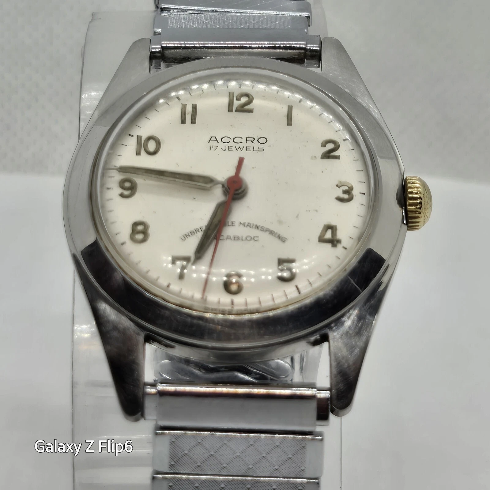 Accro Mens Mechanical Watch 17j 32mm Case Incabloc Unbreakable Mainspring