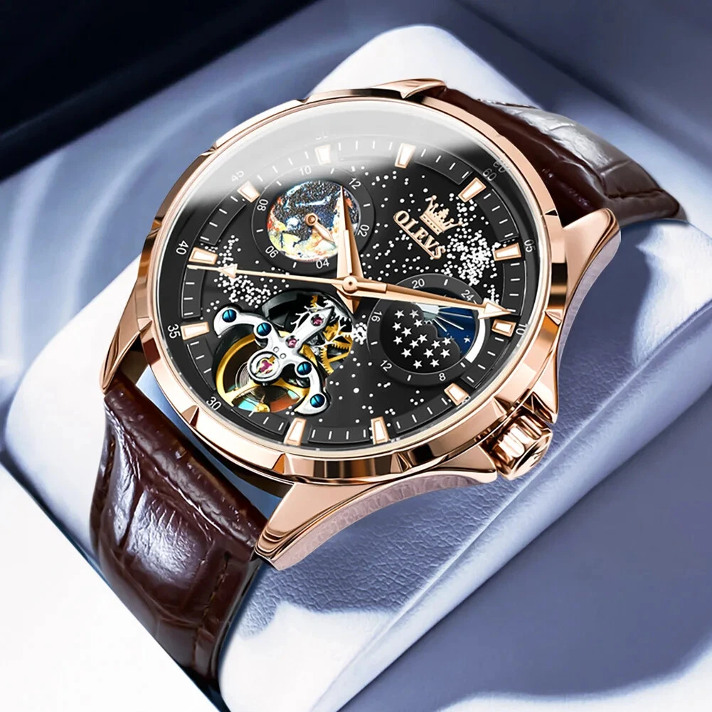 Men's Watches Tourbillon Style Automatic Mechanical Watch for Man Waterproof Lu