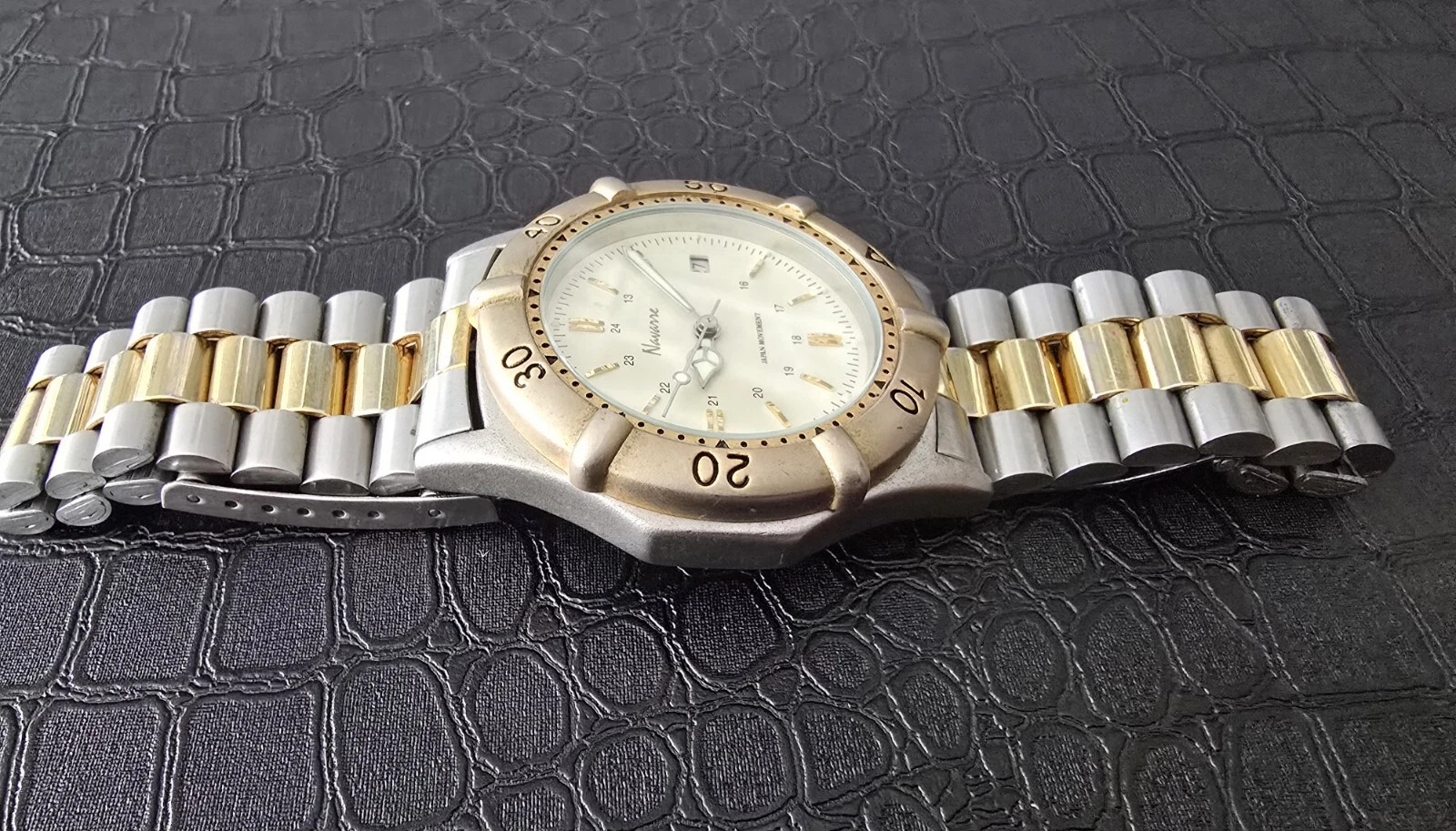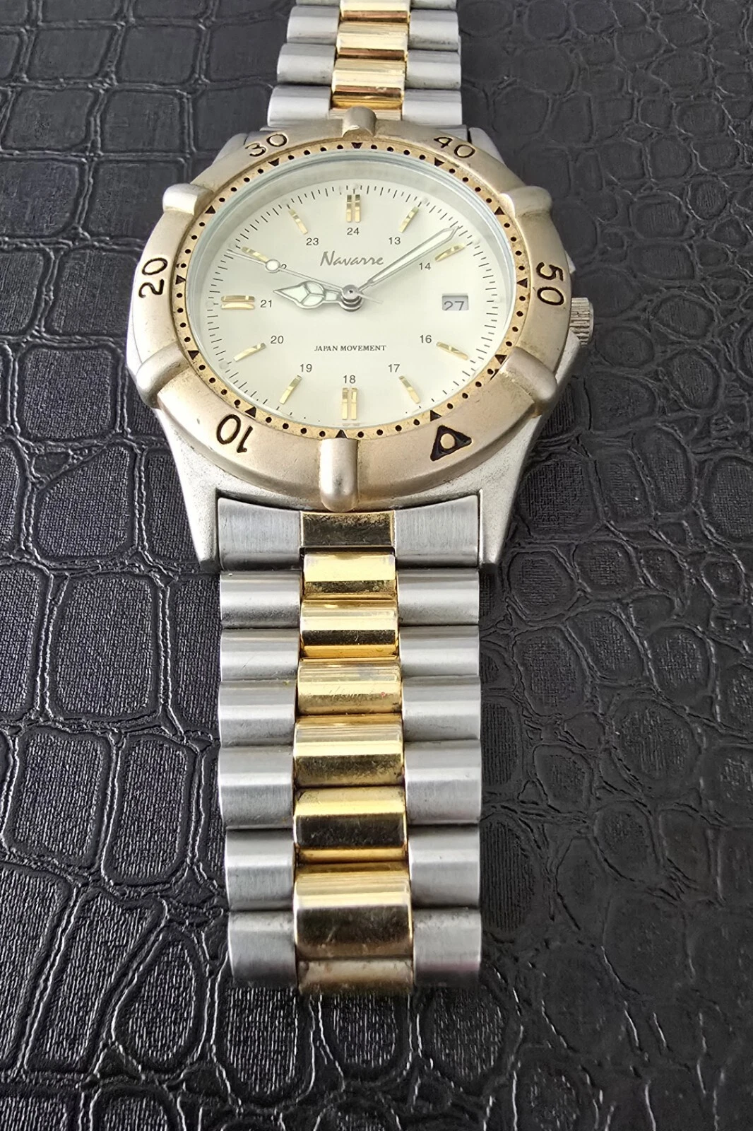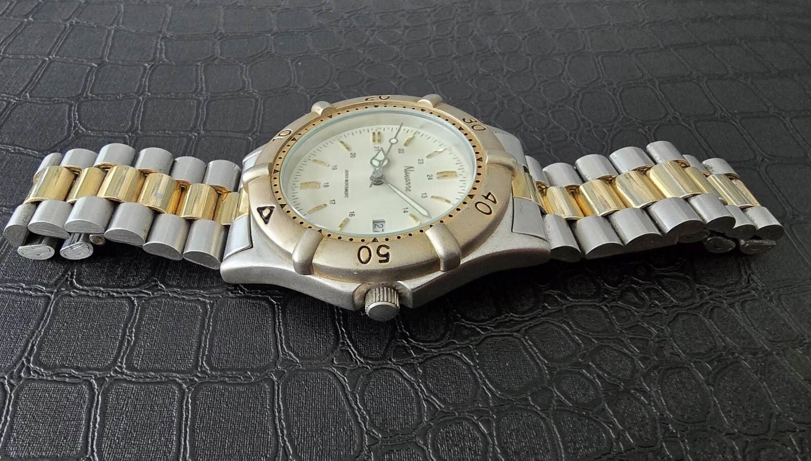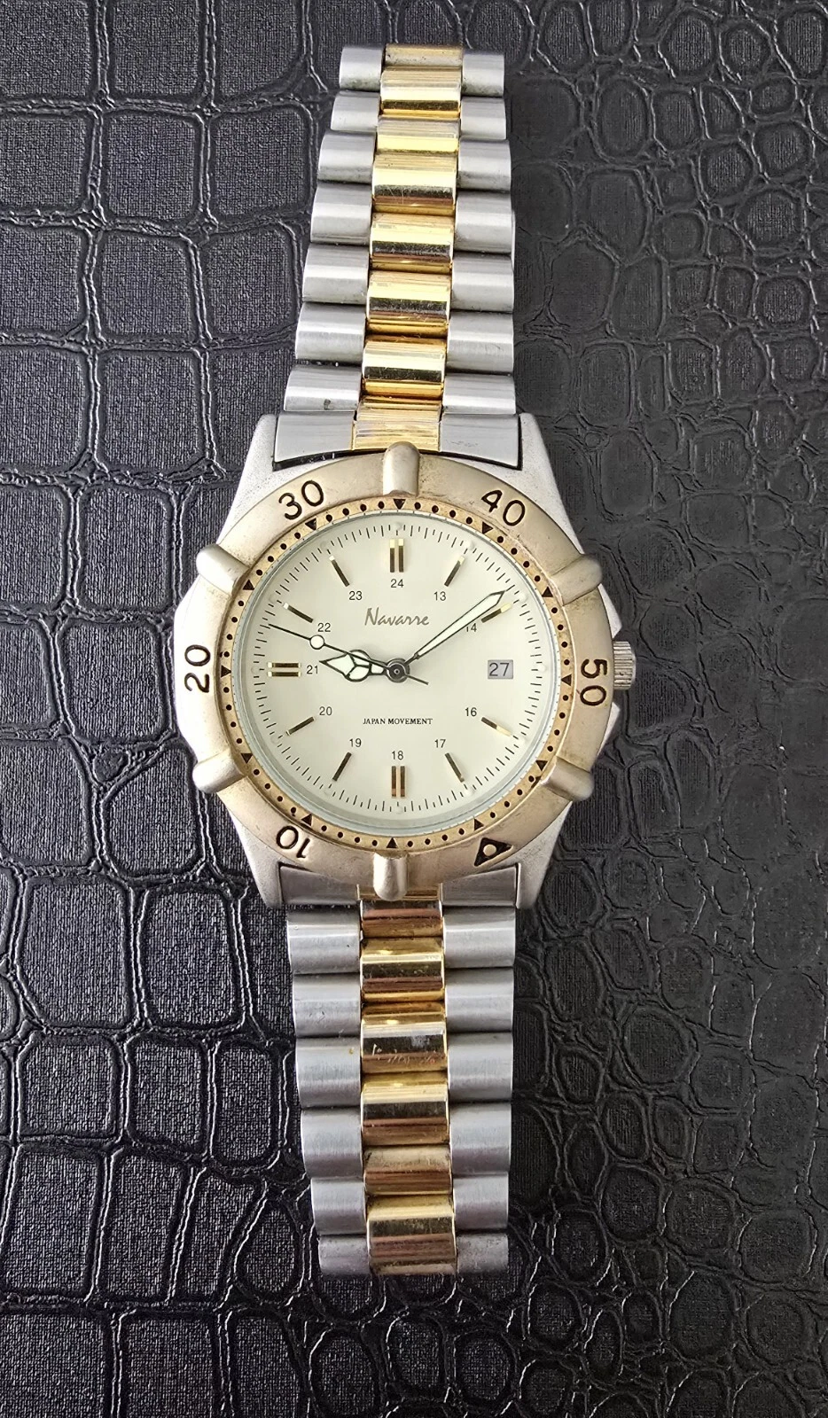 Men's 43mm Two Tone Navarre Watch, Rotating Bezel
