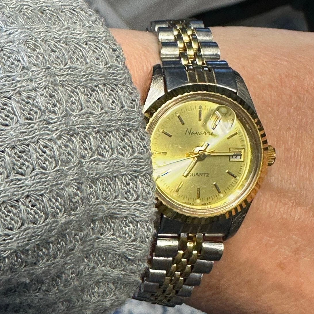Vintage Navarre Quartz Gold and Silver Tone Women's Wristwatch
