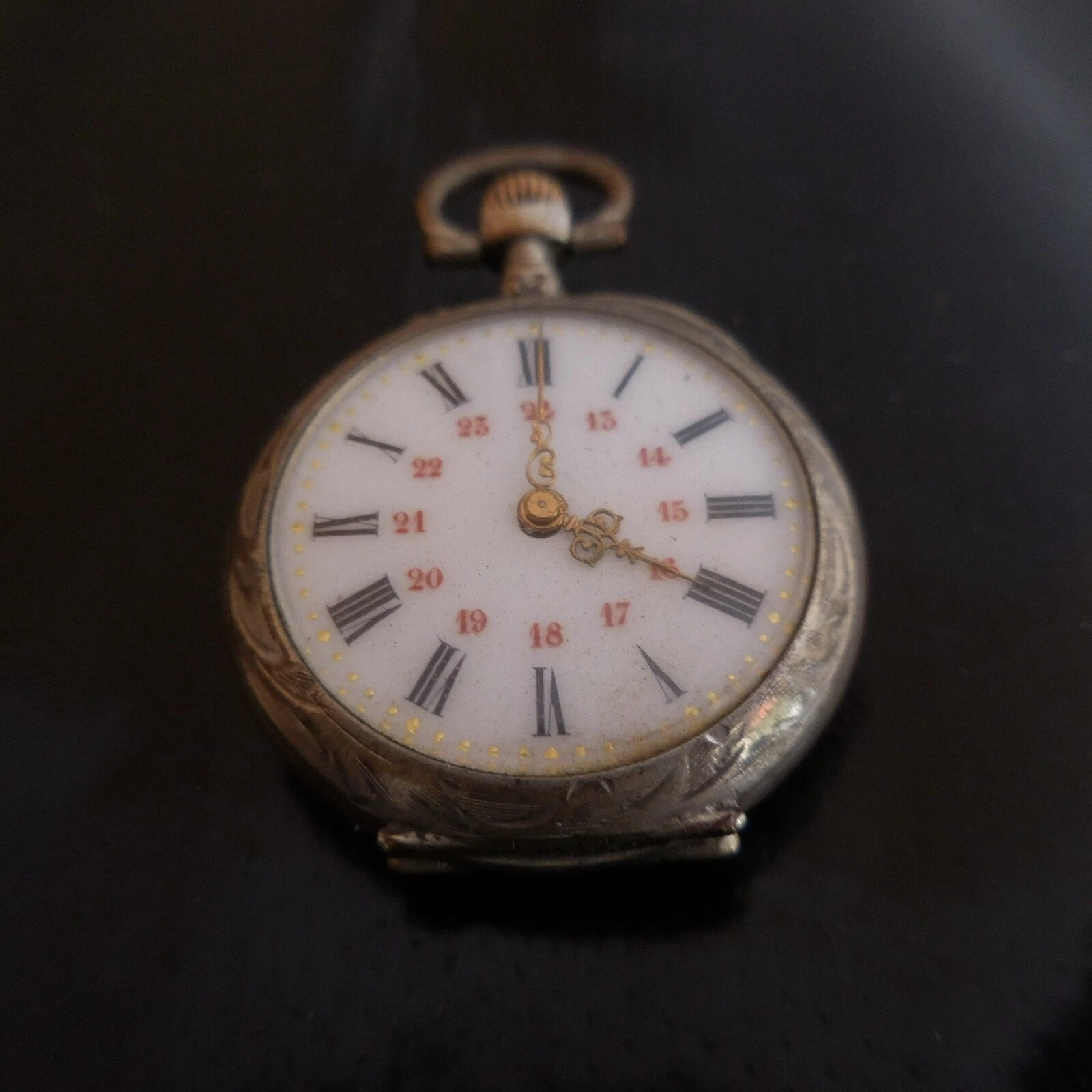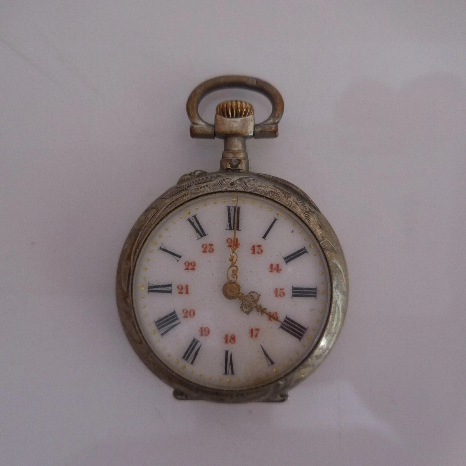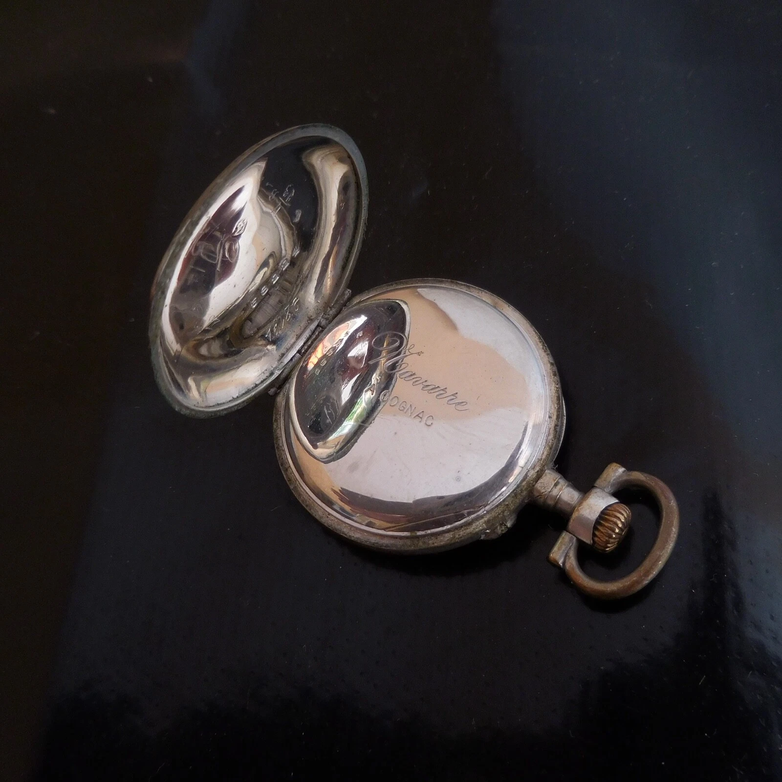 Pocket watch woman NAVARRE Cognac silver gold porcelain jewel France N4028