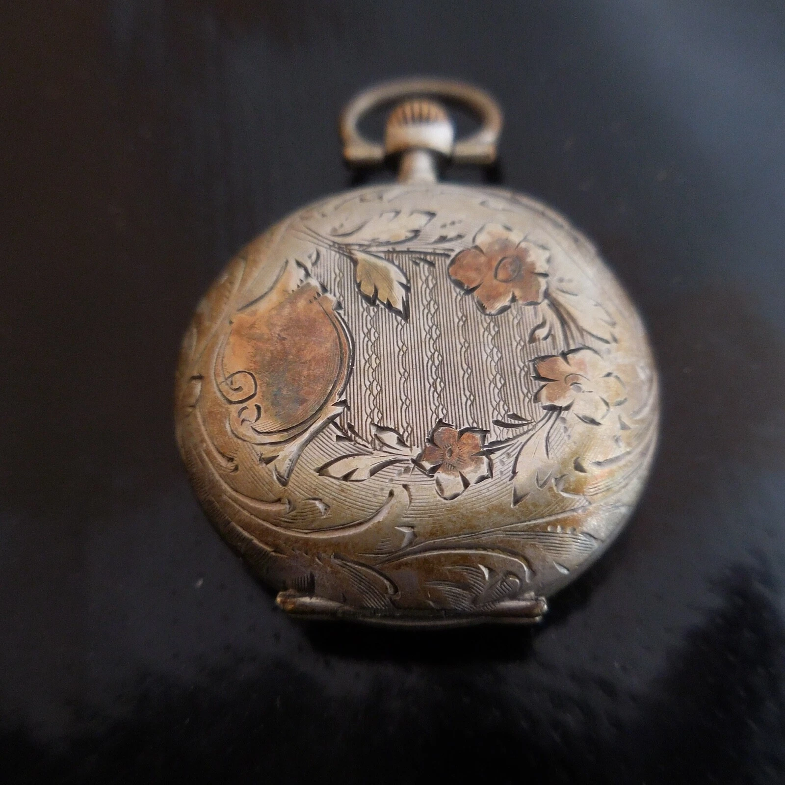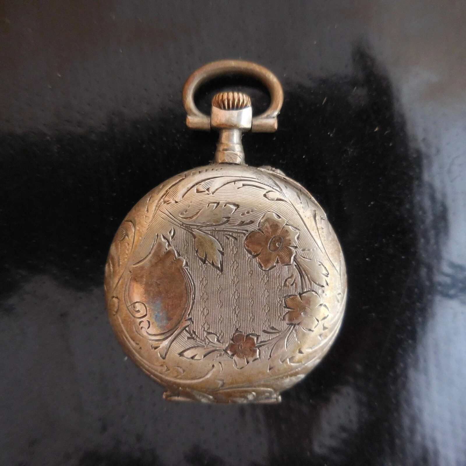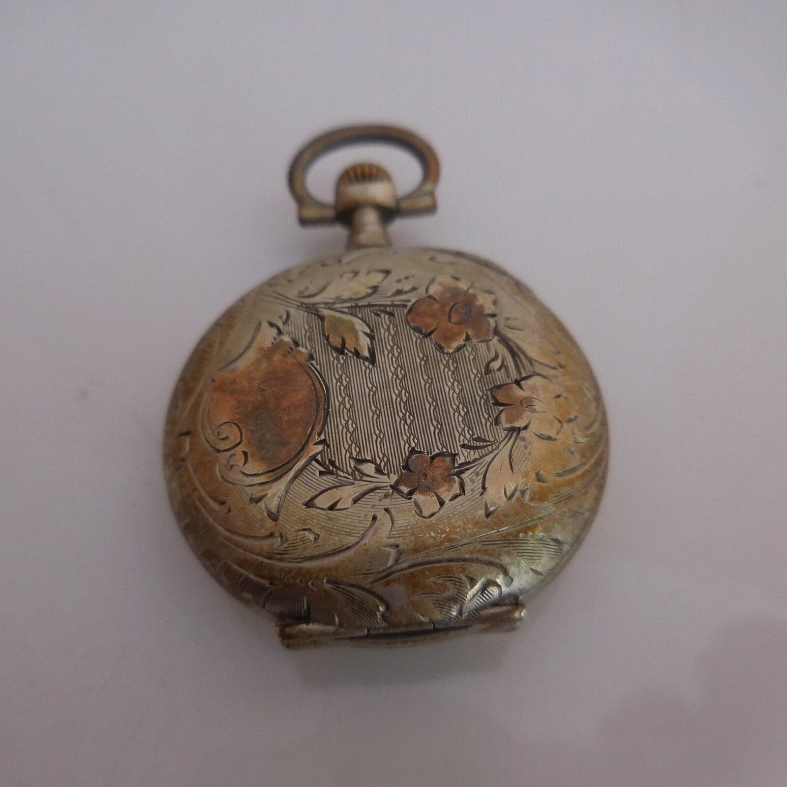 Pocket watch woman NAVARRE Cognac silver gold porcelain jewel France N4028