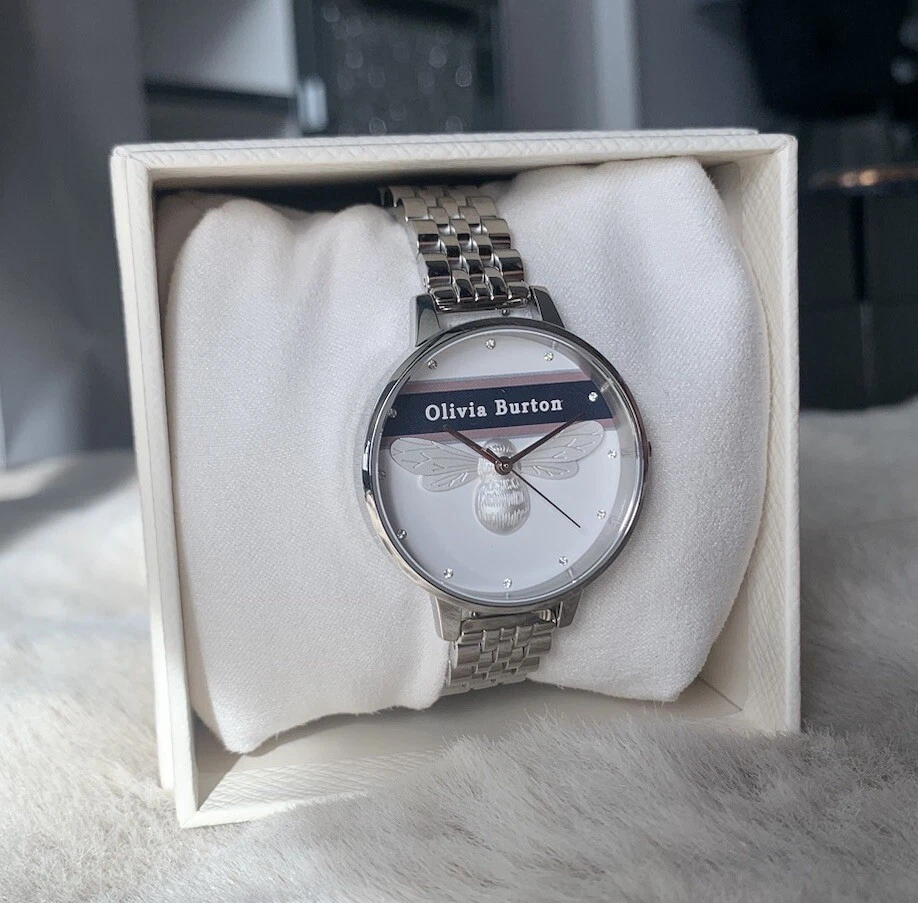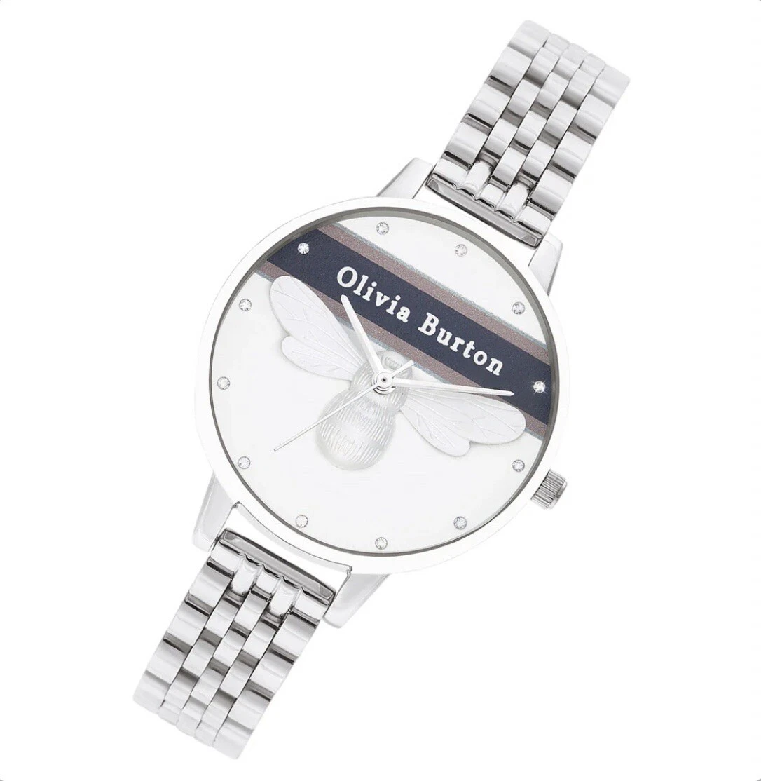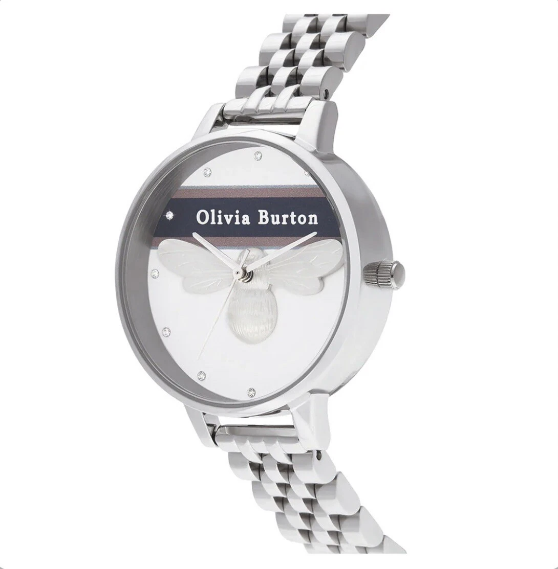 BRAND NEW Olivia Burton Stainless Steel White & Bee & Stone Dial Women's Watch