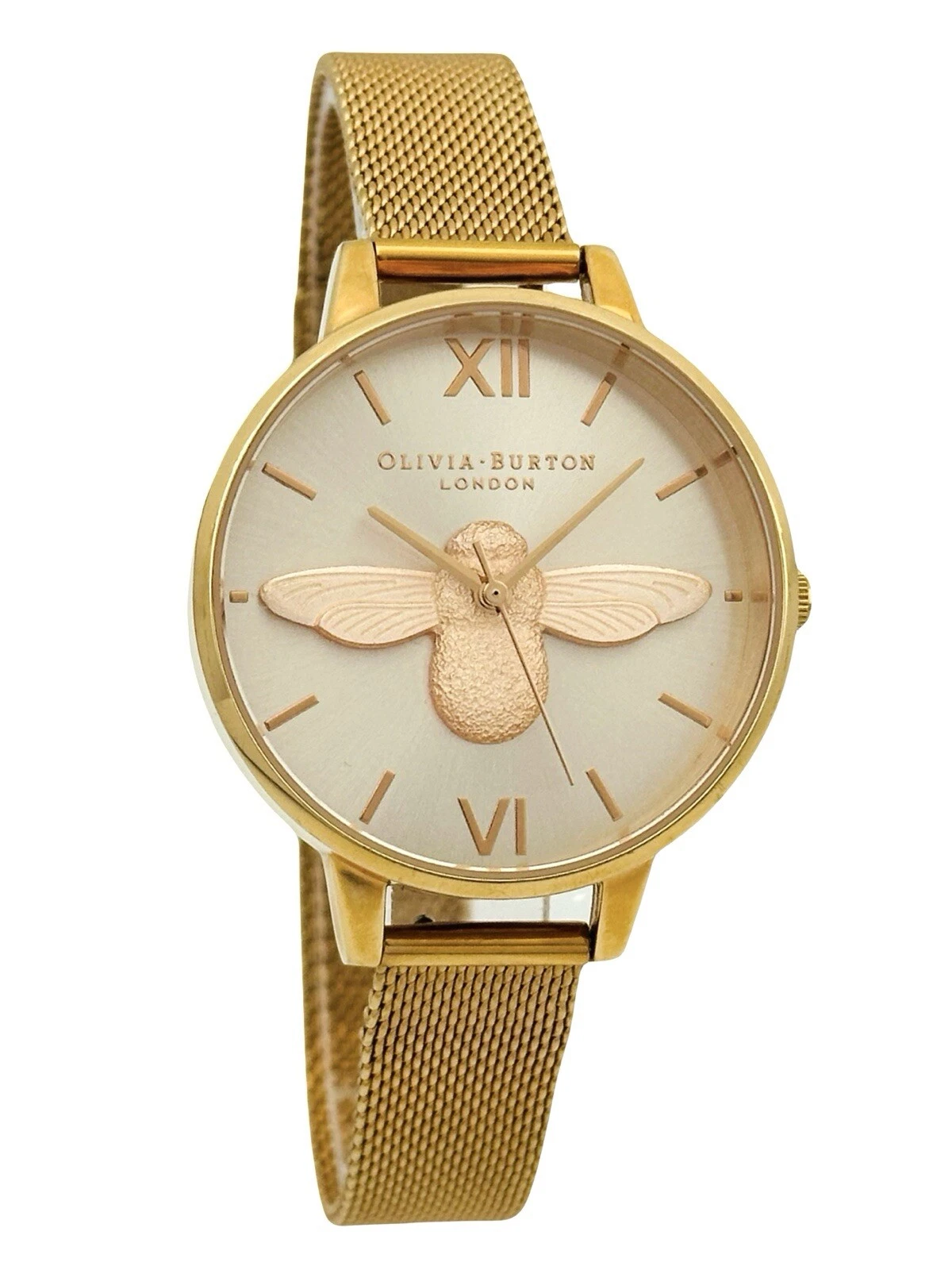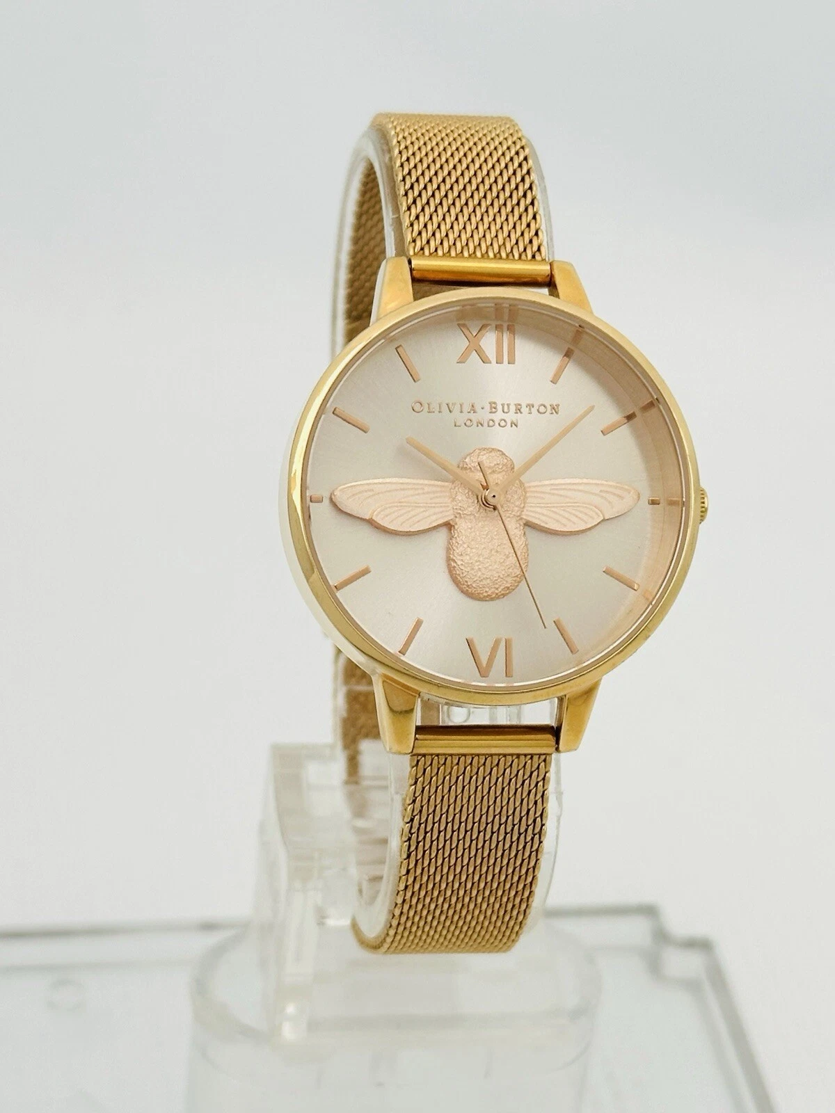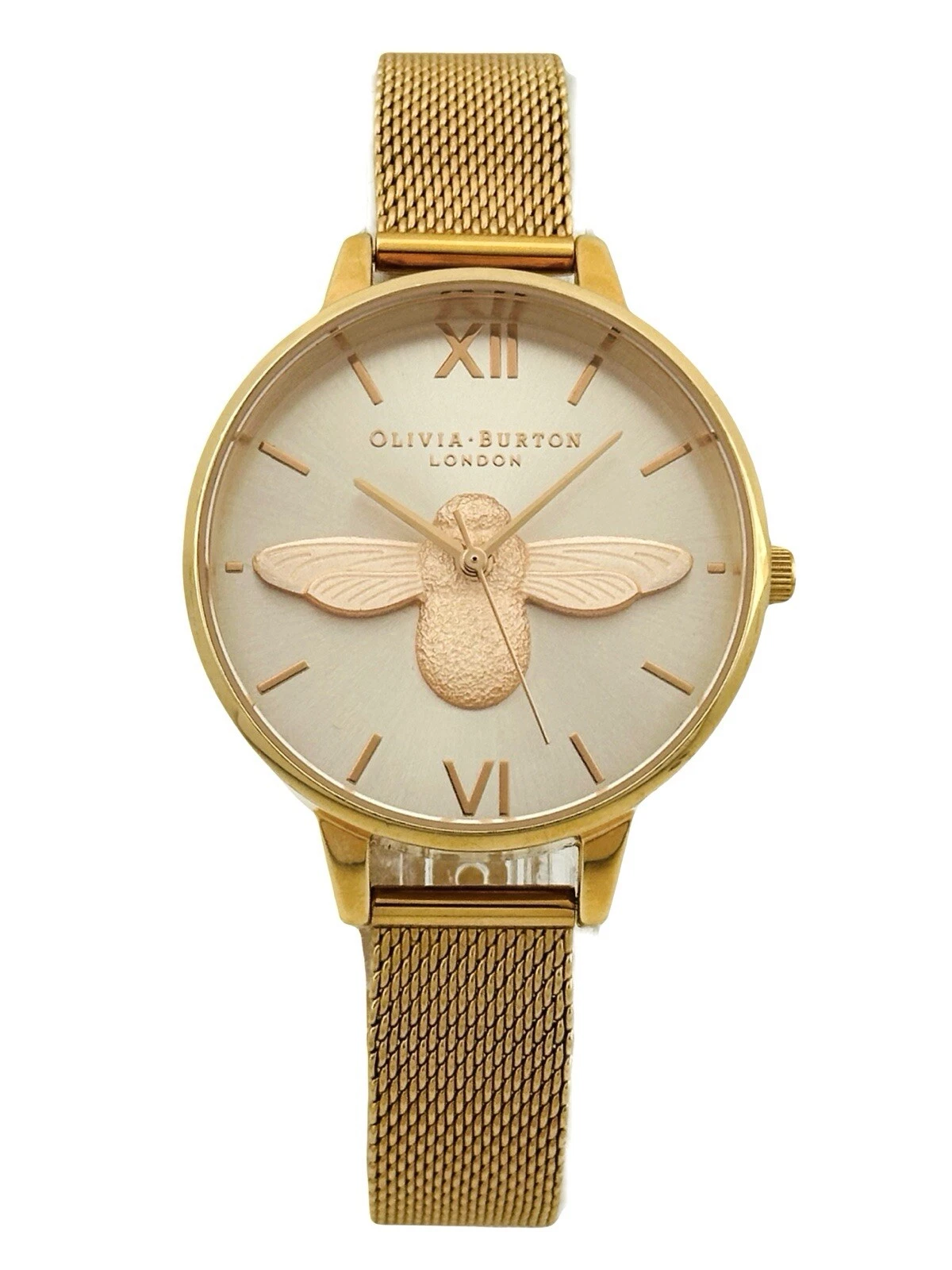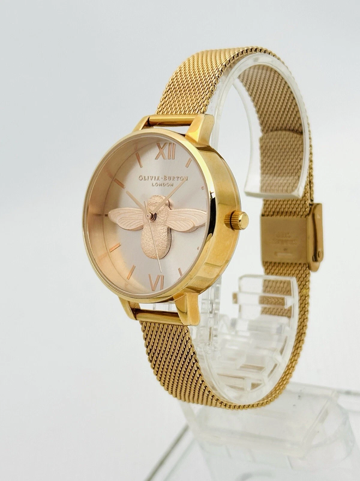 OLIVIA BURTON OBG42 3D Bee 🐝 Pink Dial Rose Gold Mesh Bracelet Watch