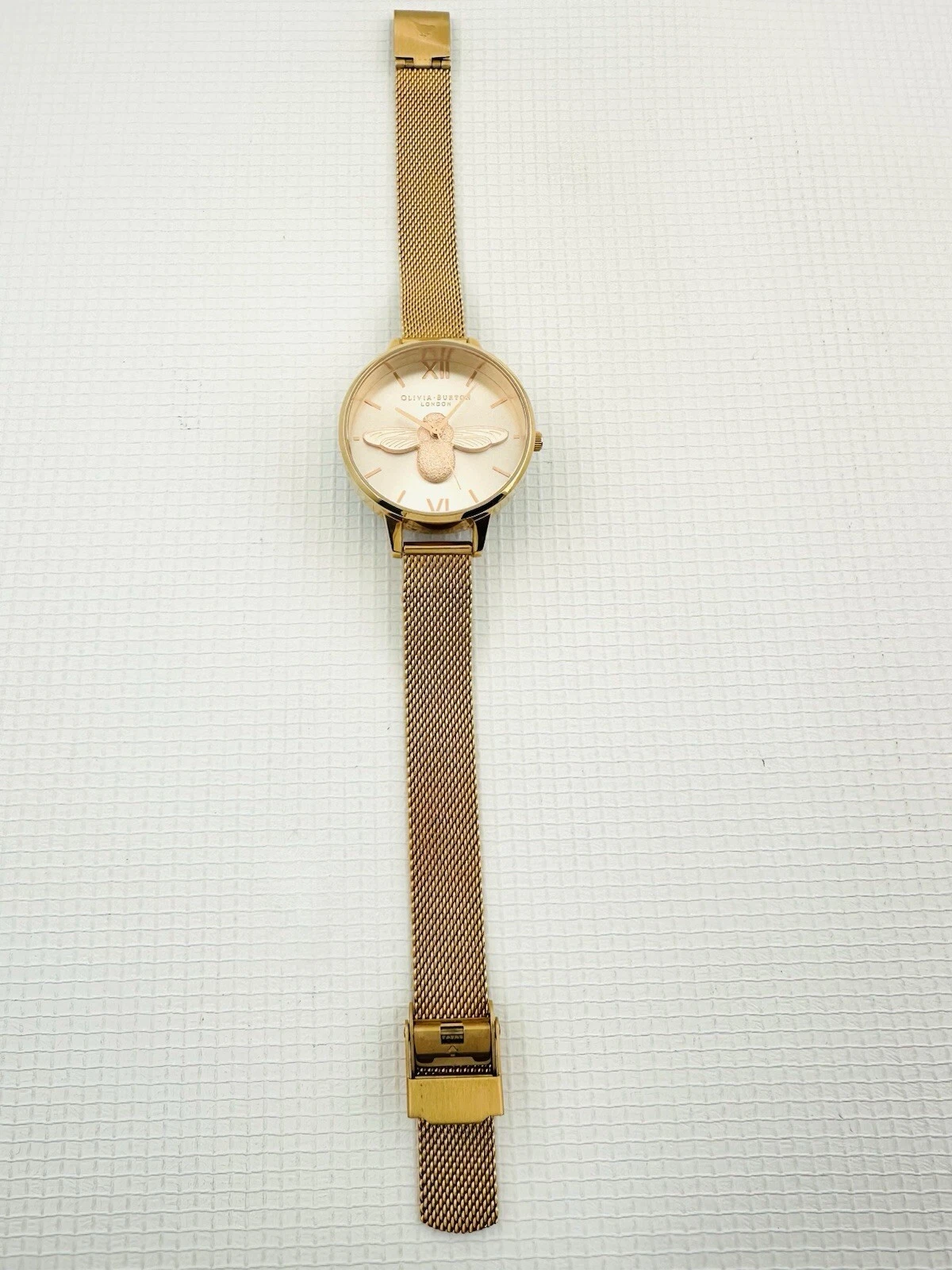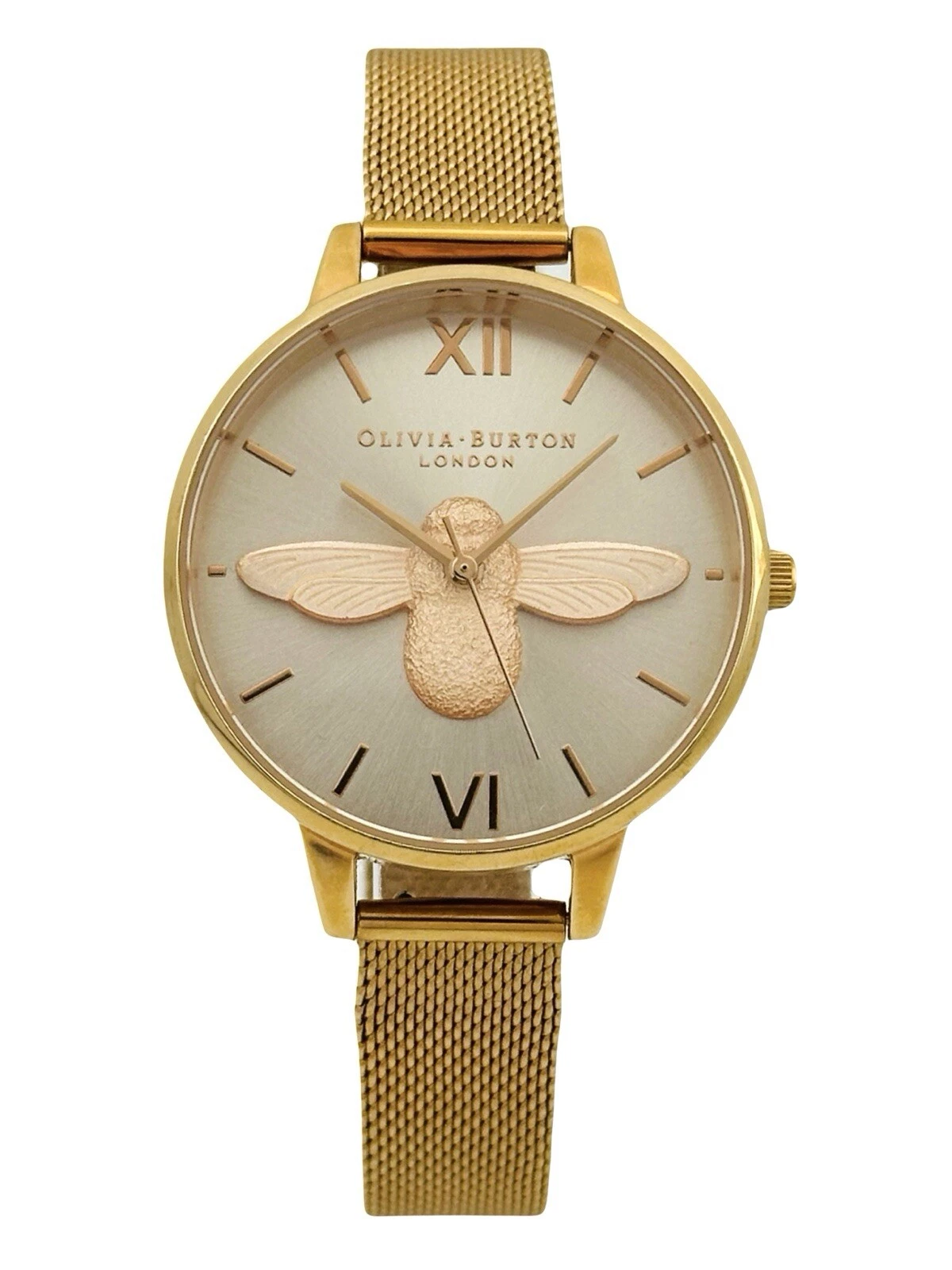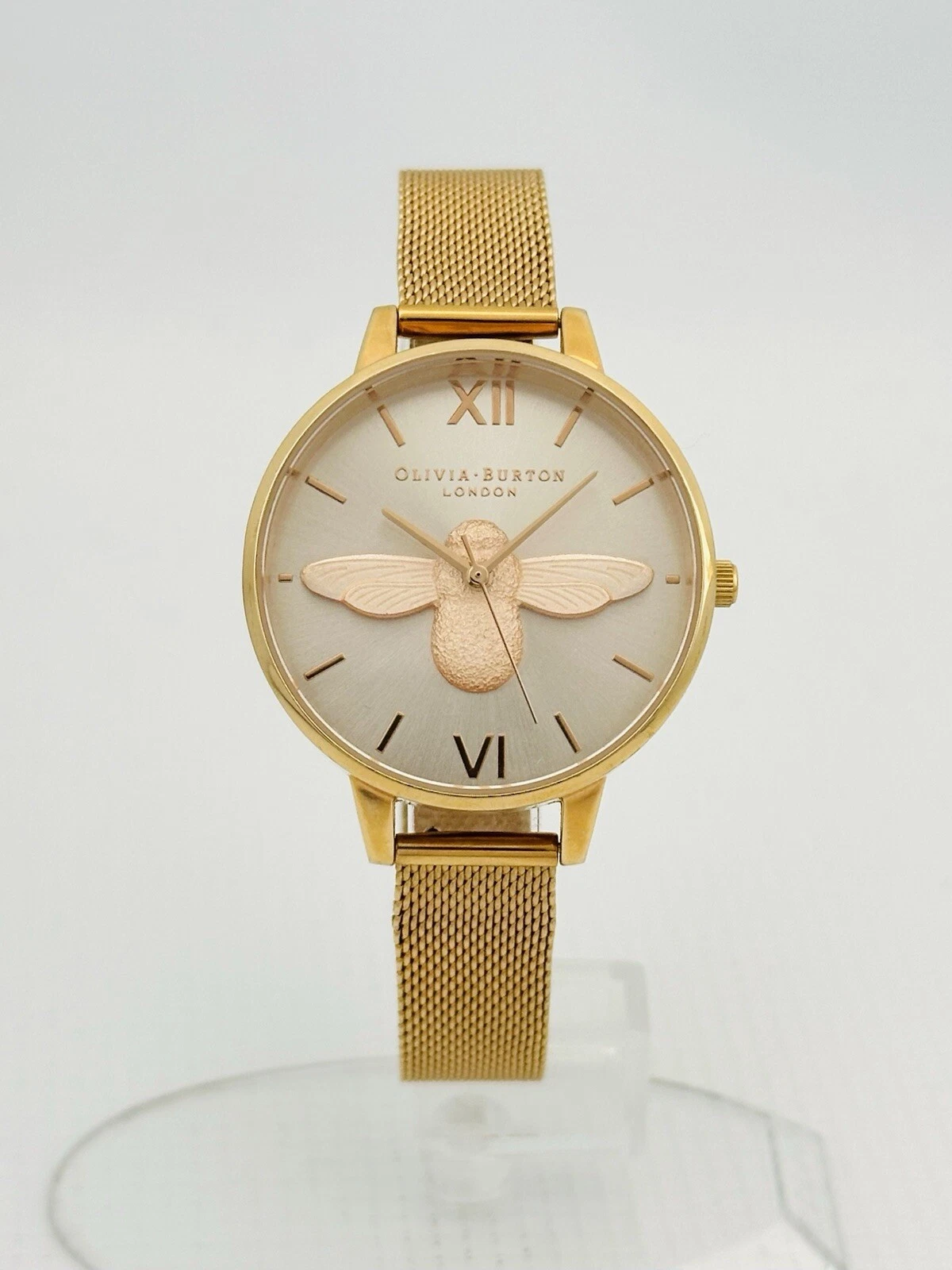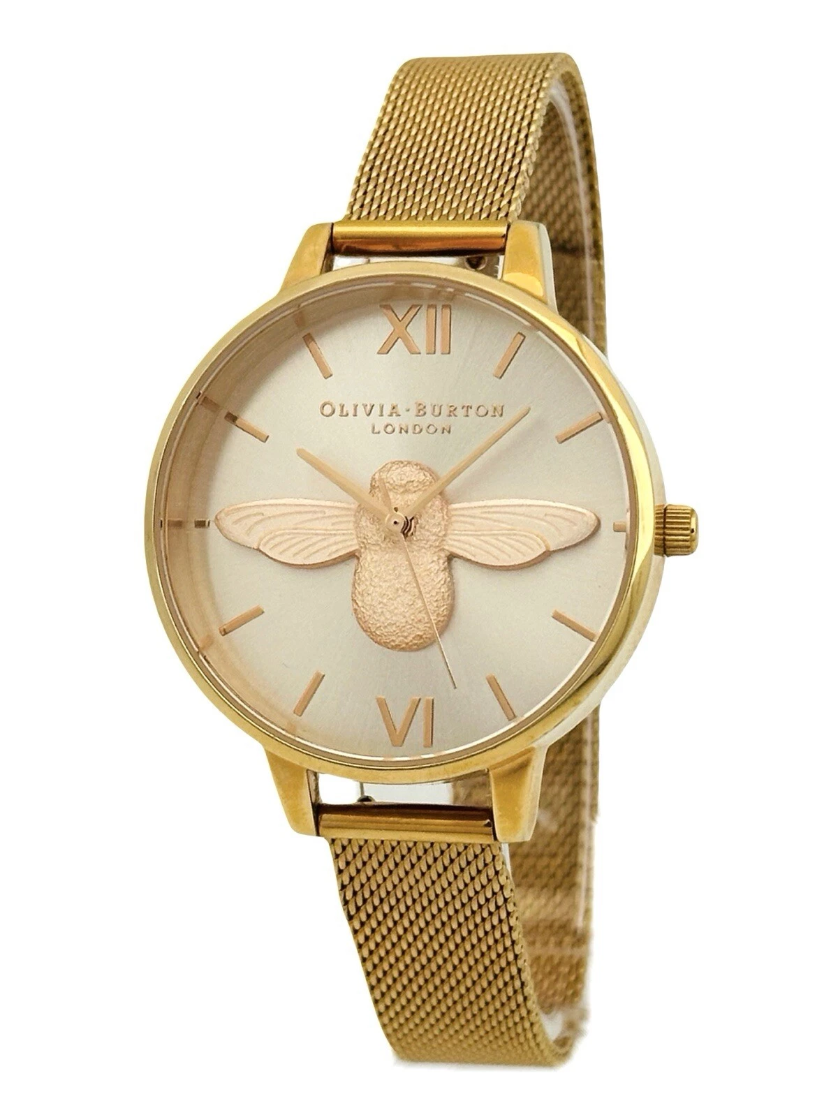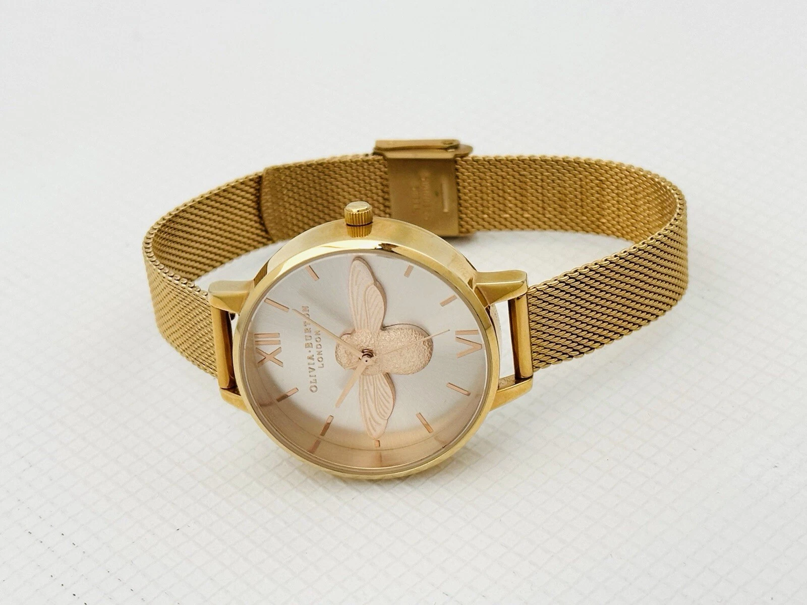 OLIVIA BURTON OBG42 3D Bee 🐝 Pink Dial Rose Gold Mesh Bracelet Watch