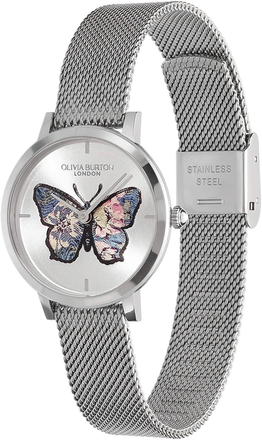 Olivia Burton Watch ob24000127 Signature 28mm Butterfly Ultra Slim Silver Mesh