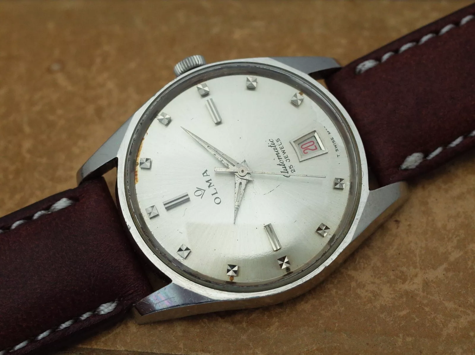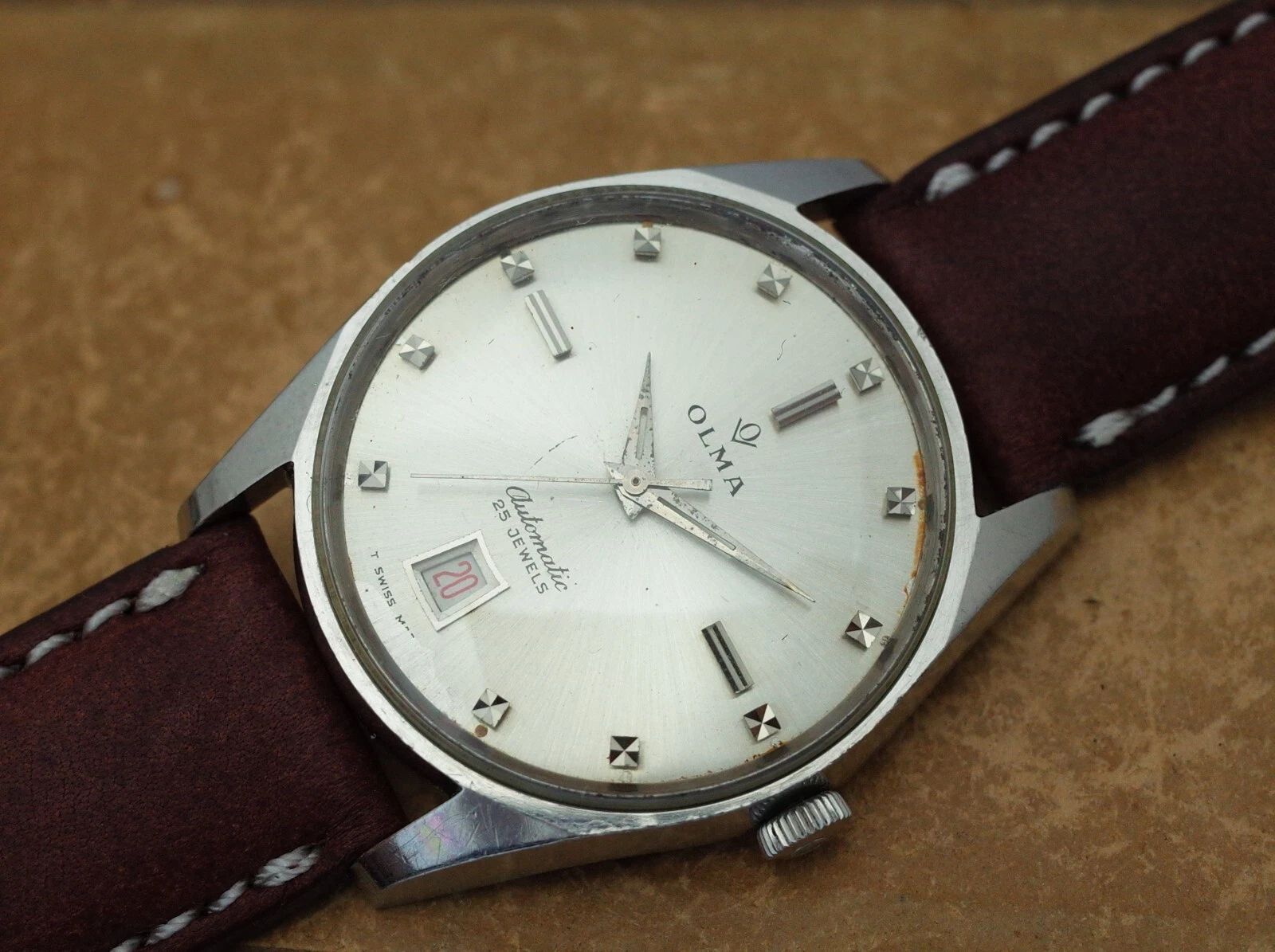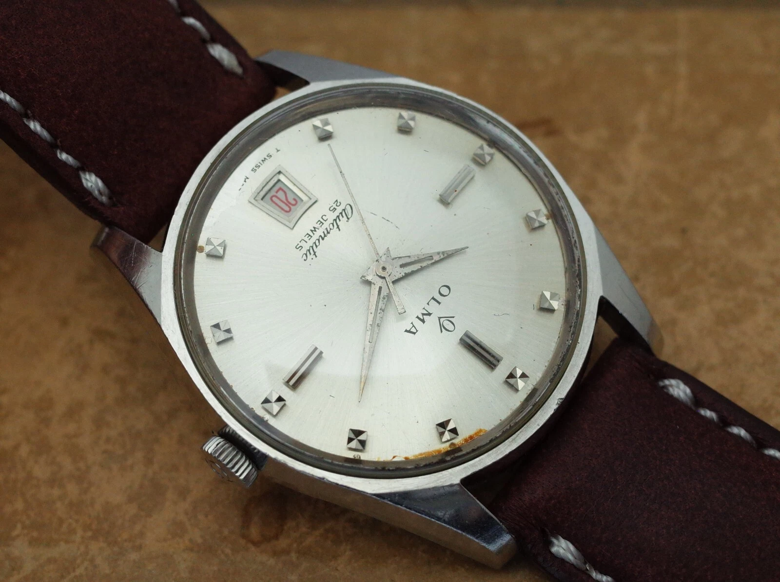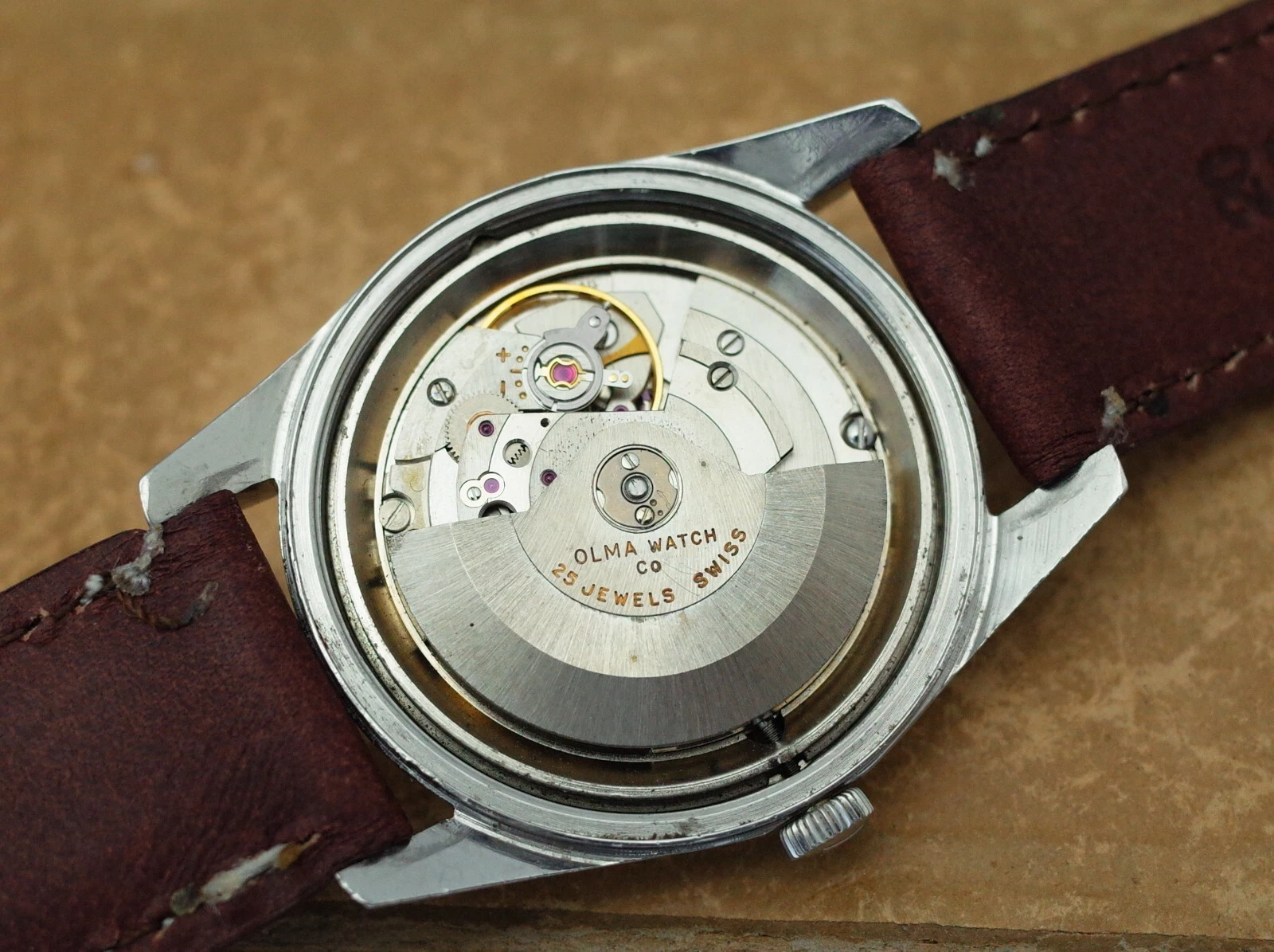 Vintage mens Olma automatic with date all steel case screw back nice model rare!