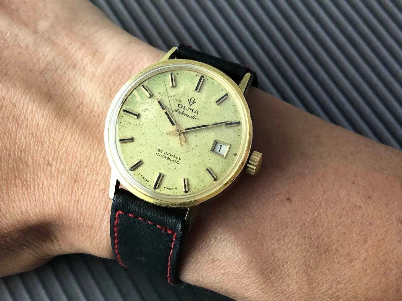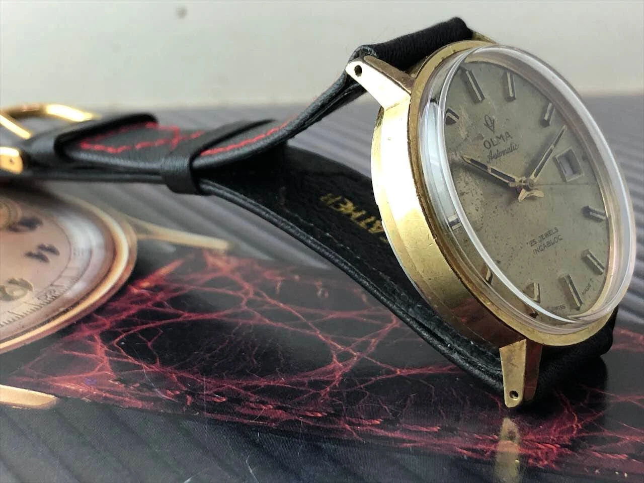 FREE SHIPPING! VINTAGE SWISS OLMA 25J AS.1902 AUTOMATIC MENS WATCH 34MM