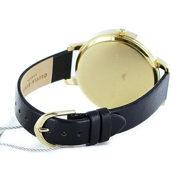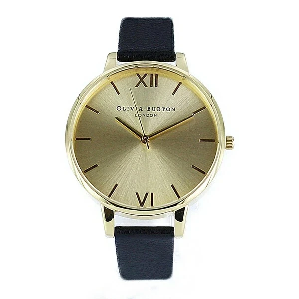 Olivia Burton OB13BD06 Watch With 38mm Golden Face and Black Leather Band