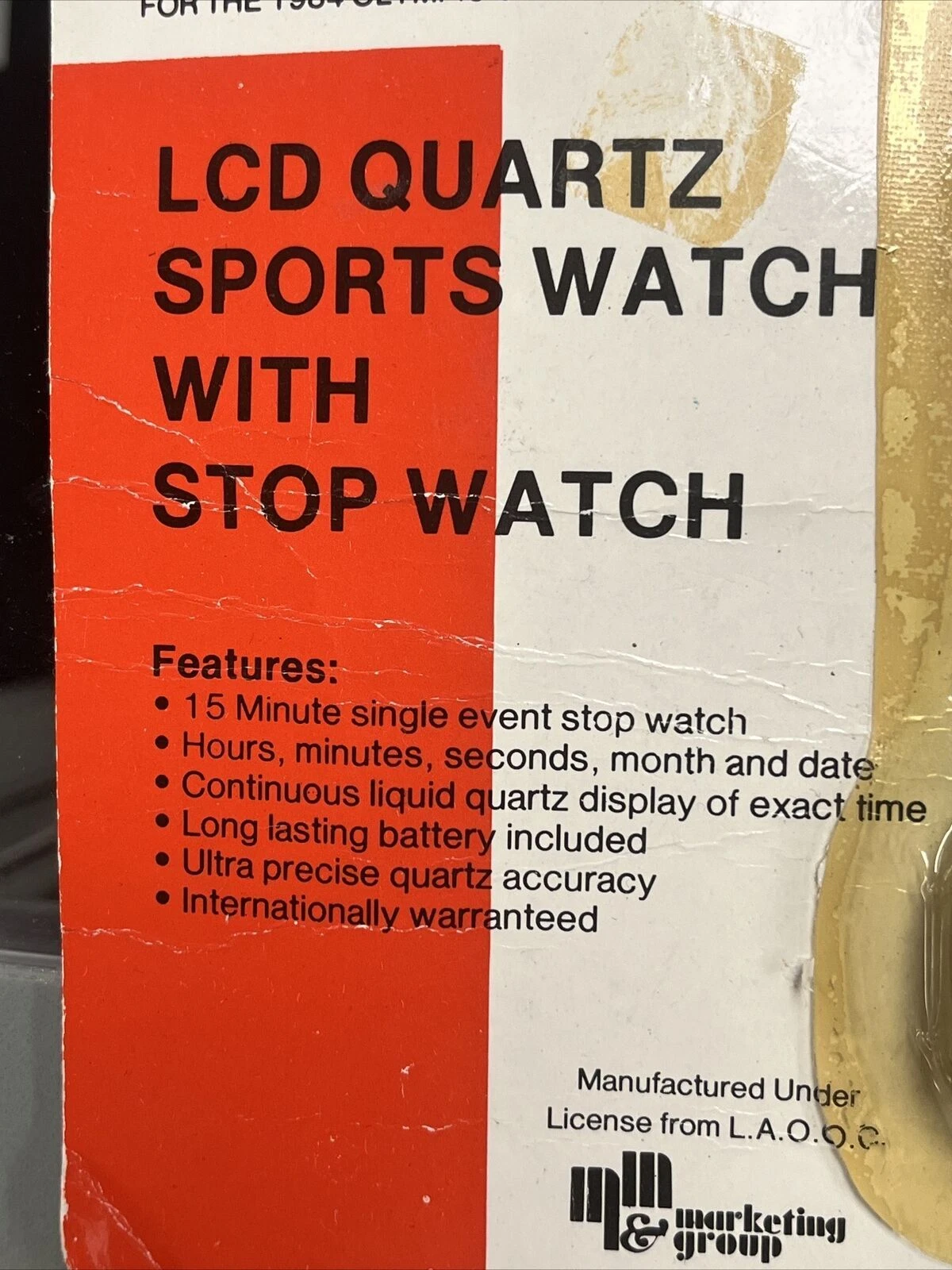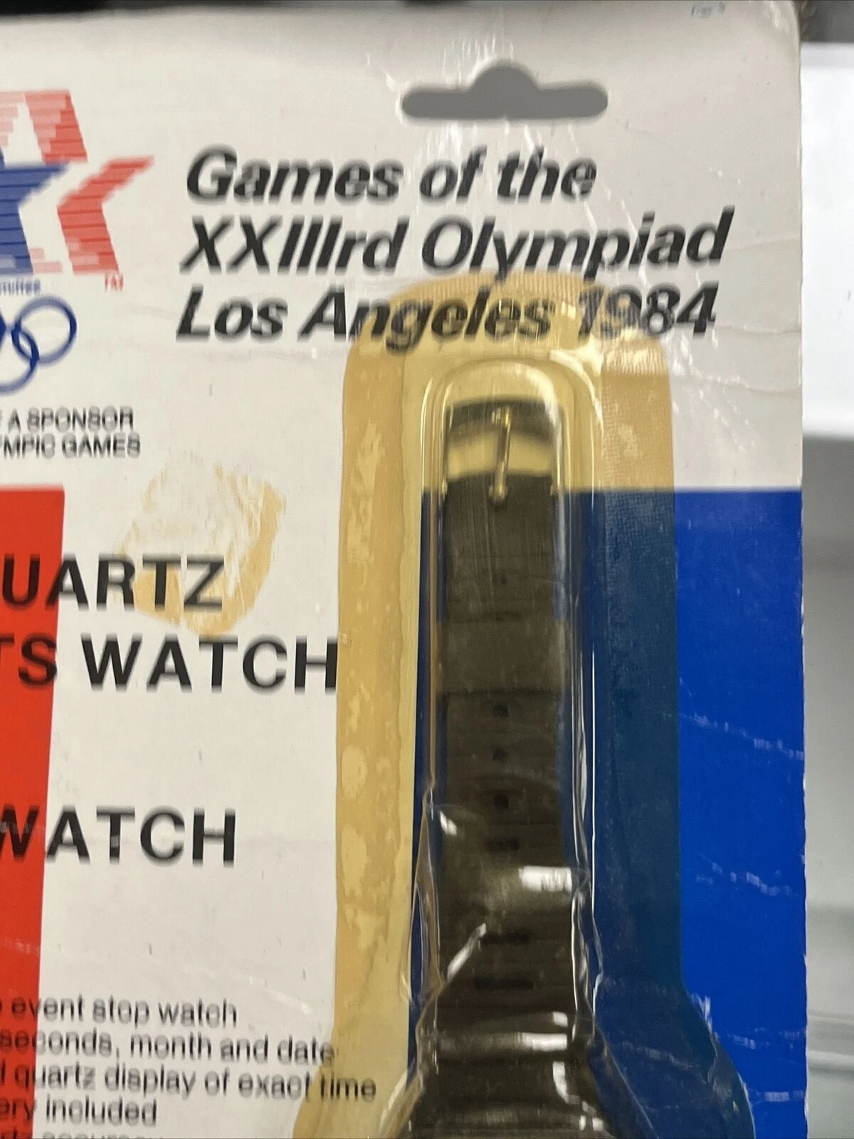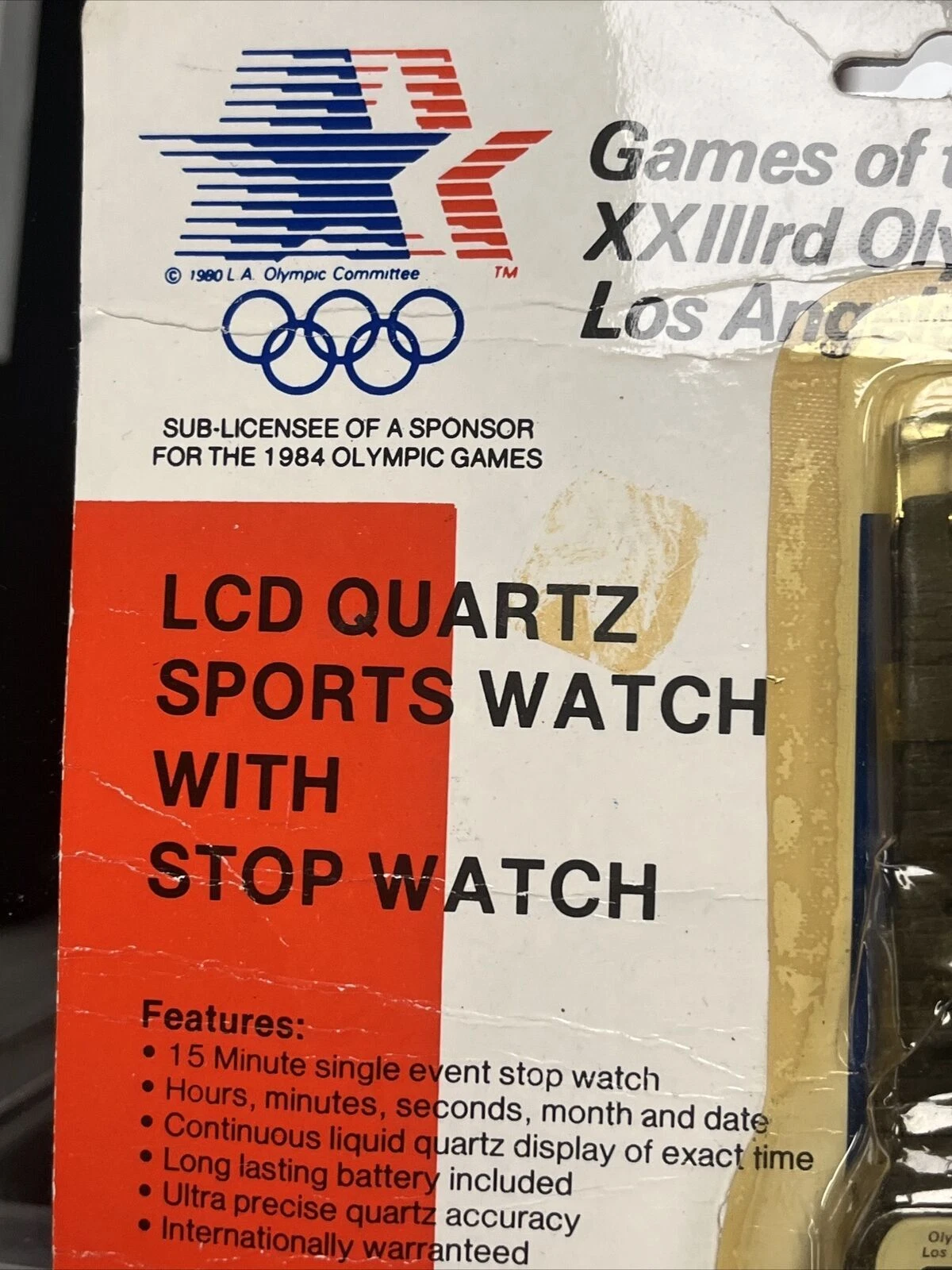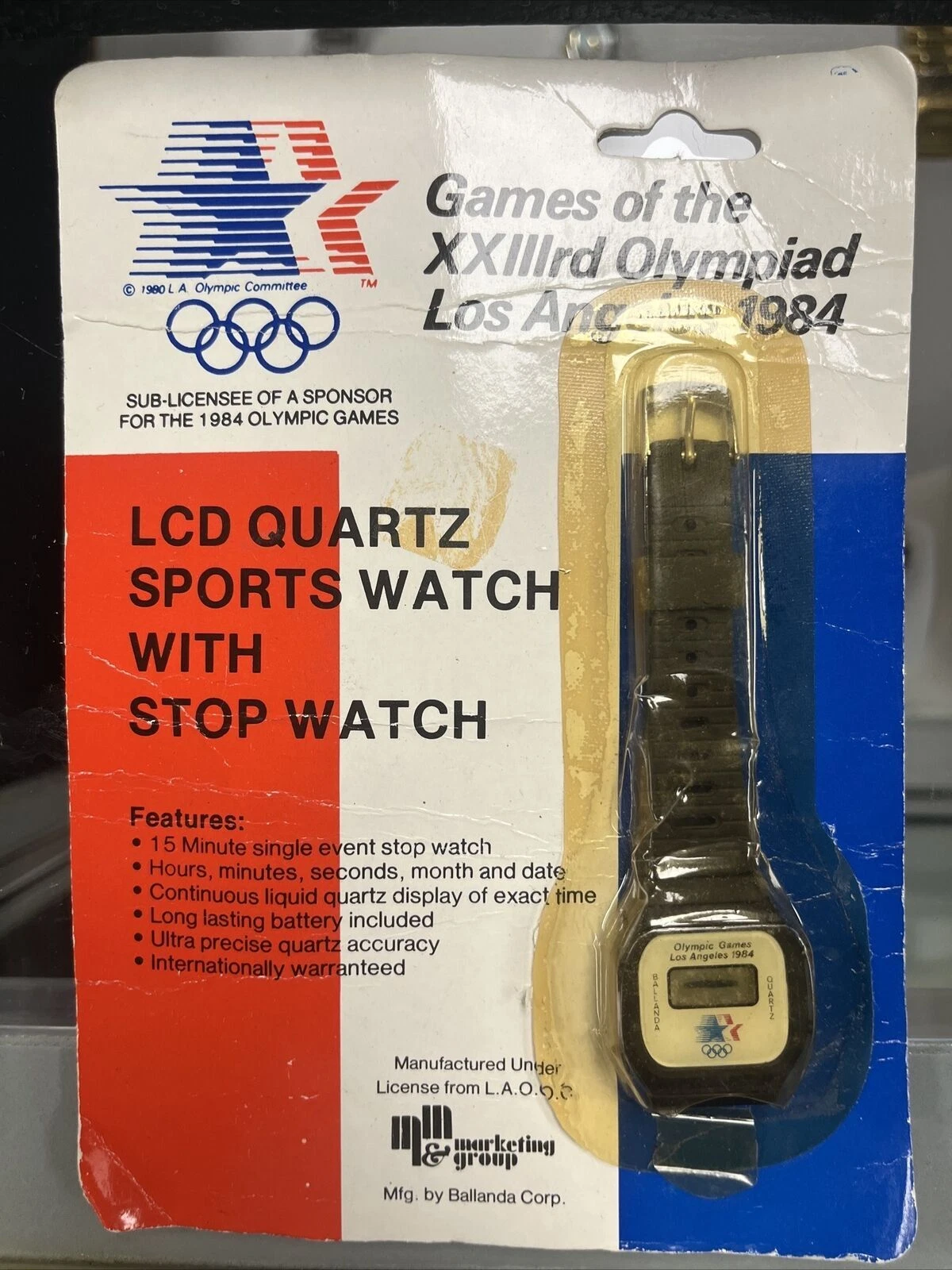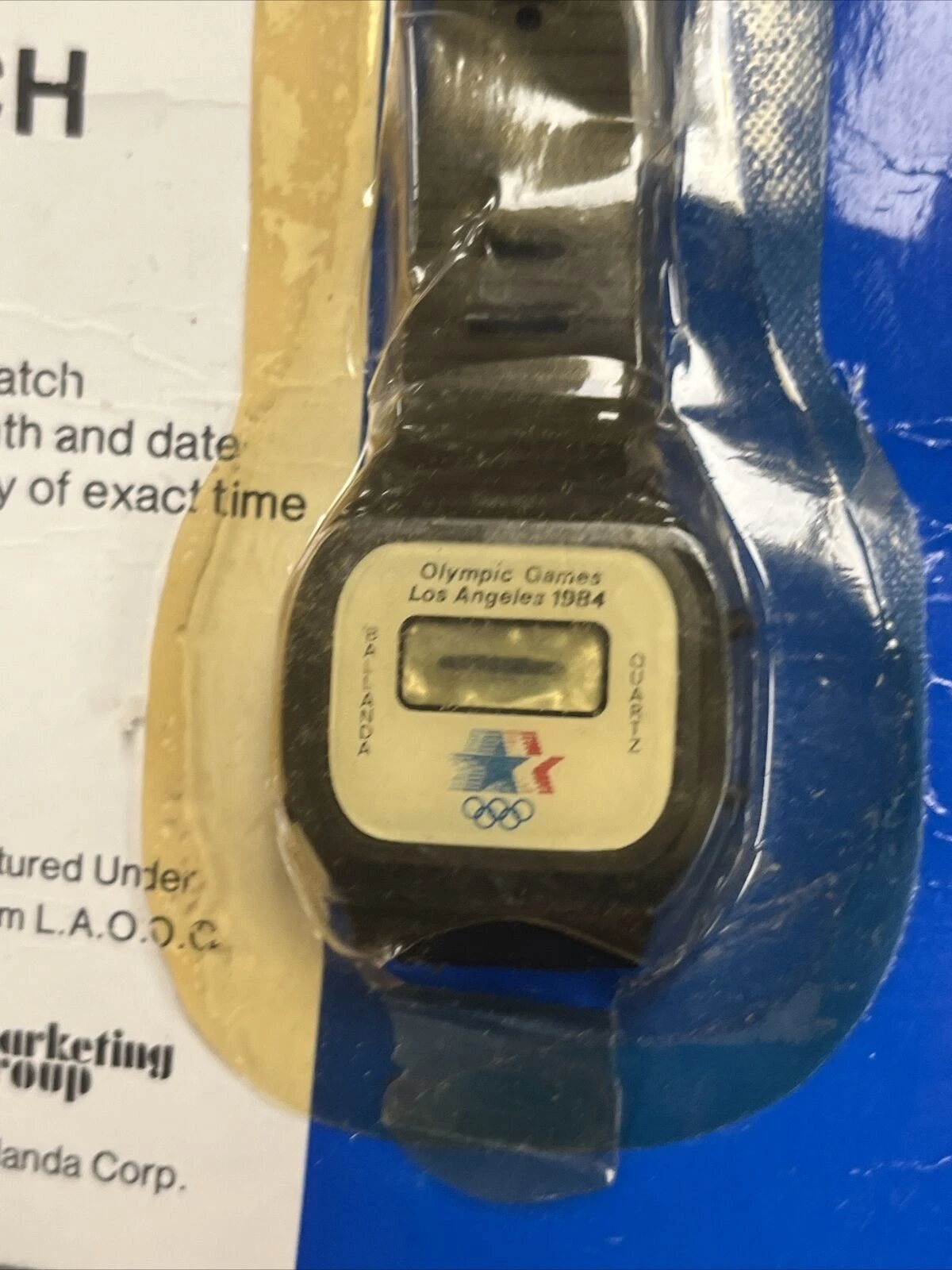 Vintage Olympics 1984 Black Digital Watch Souvenir Bellanda Display NOT WORKING