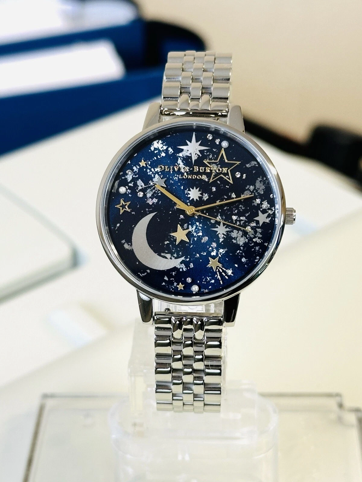 OLIVIA BURTON OB16GD64 Ladies Celestial Navy Night Sky Dial Silver Bracelet Watc