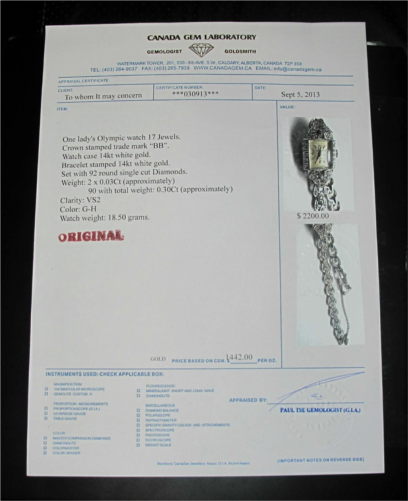 14K gold & 92 diamonds Lady's mechanical watch "OLYMPIC" $2200 Scrap $850+