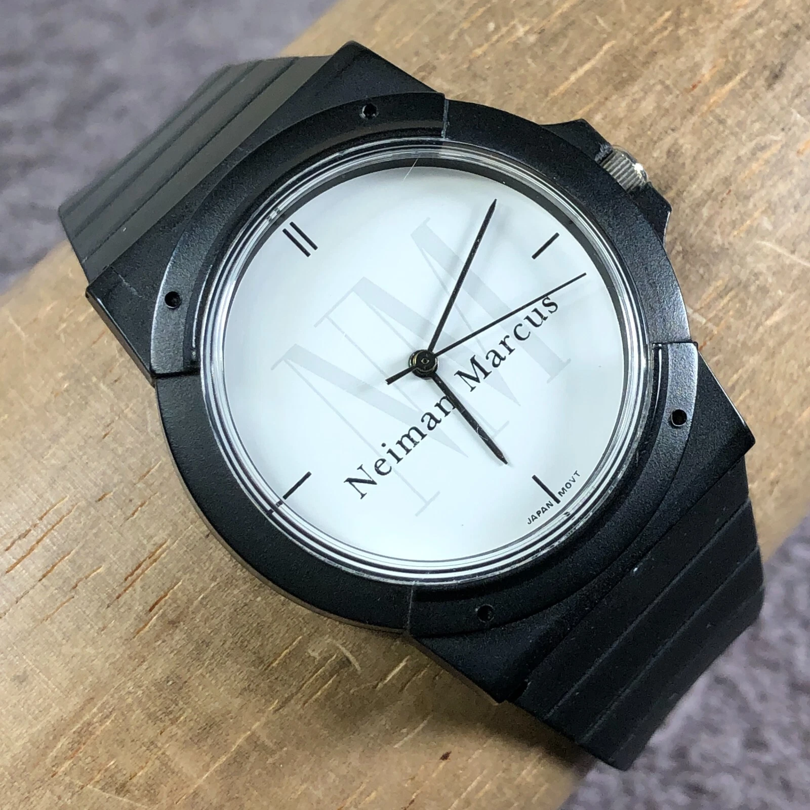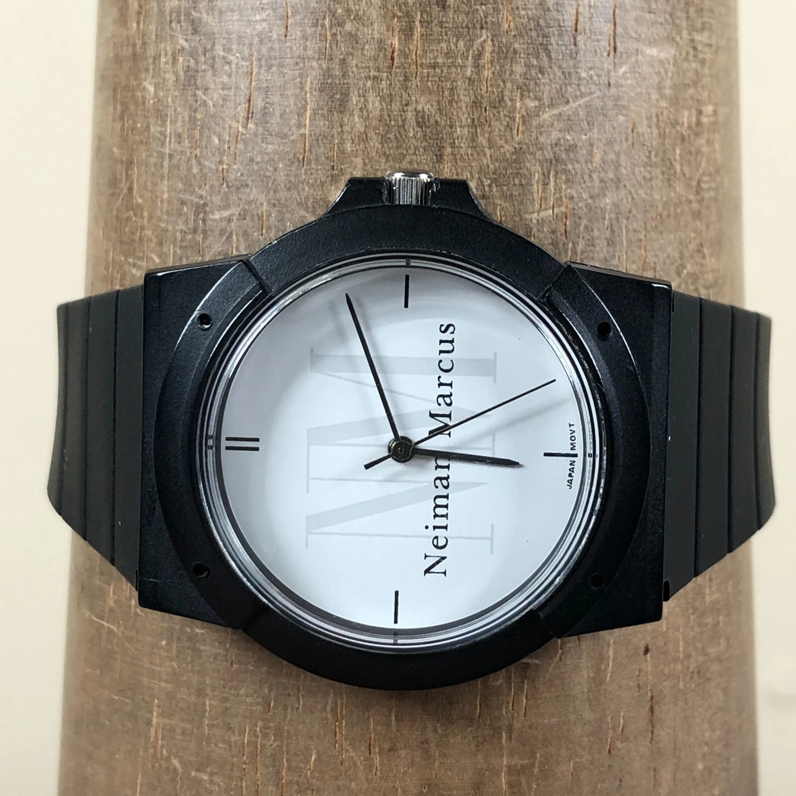Neiman Marcus Unisex Sport Black Rubber Strap Quartz Analog Watch 7 3/4"