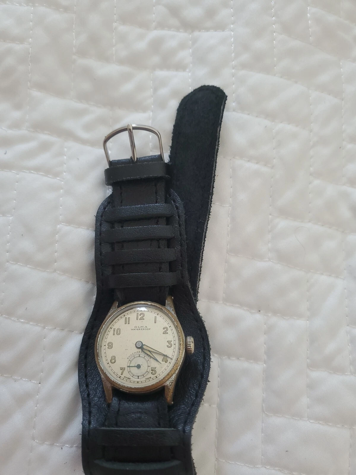 MEN'S WWII era VINTAGE MILITARY pilot OLMA Numa Jeannin steel watch c1940