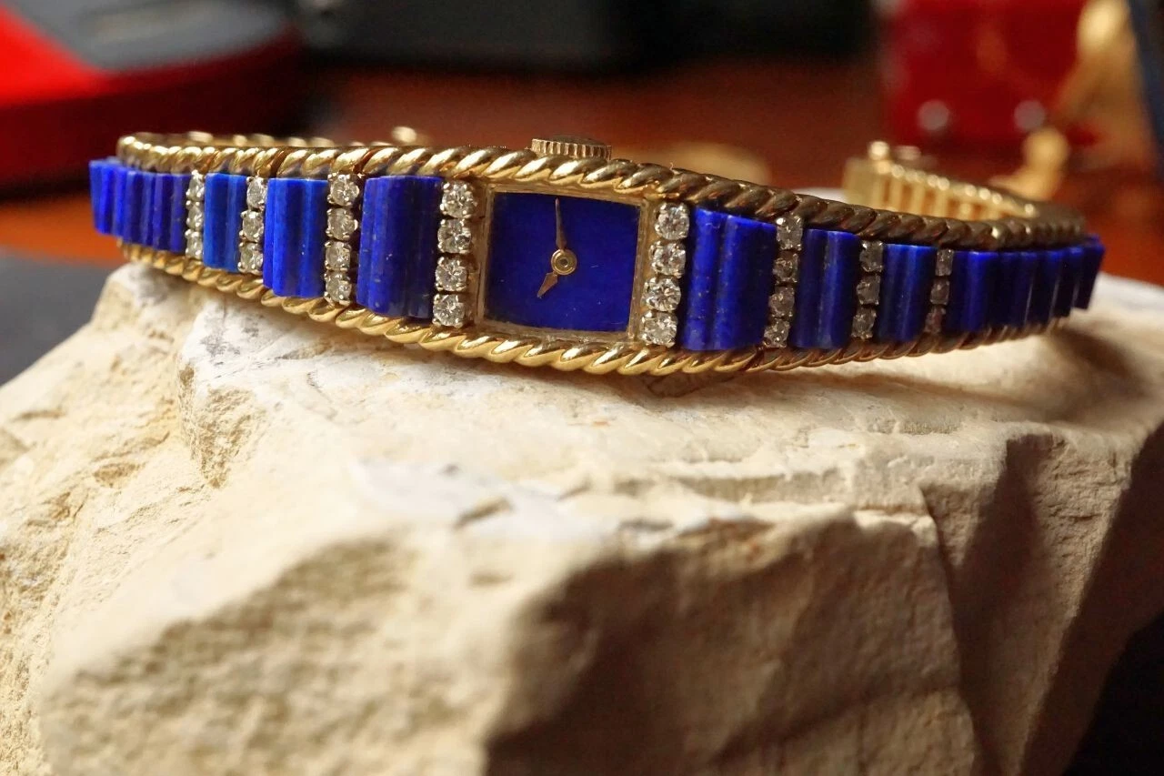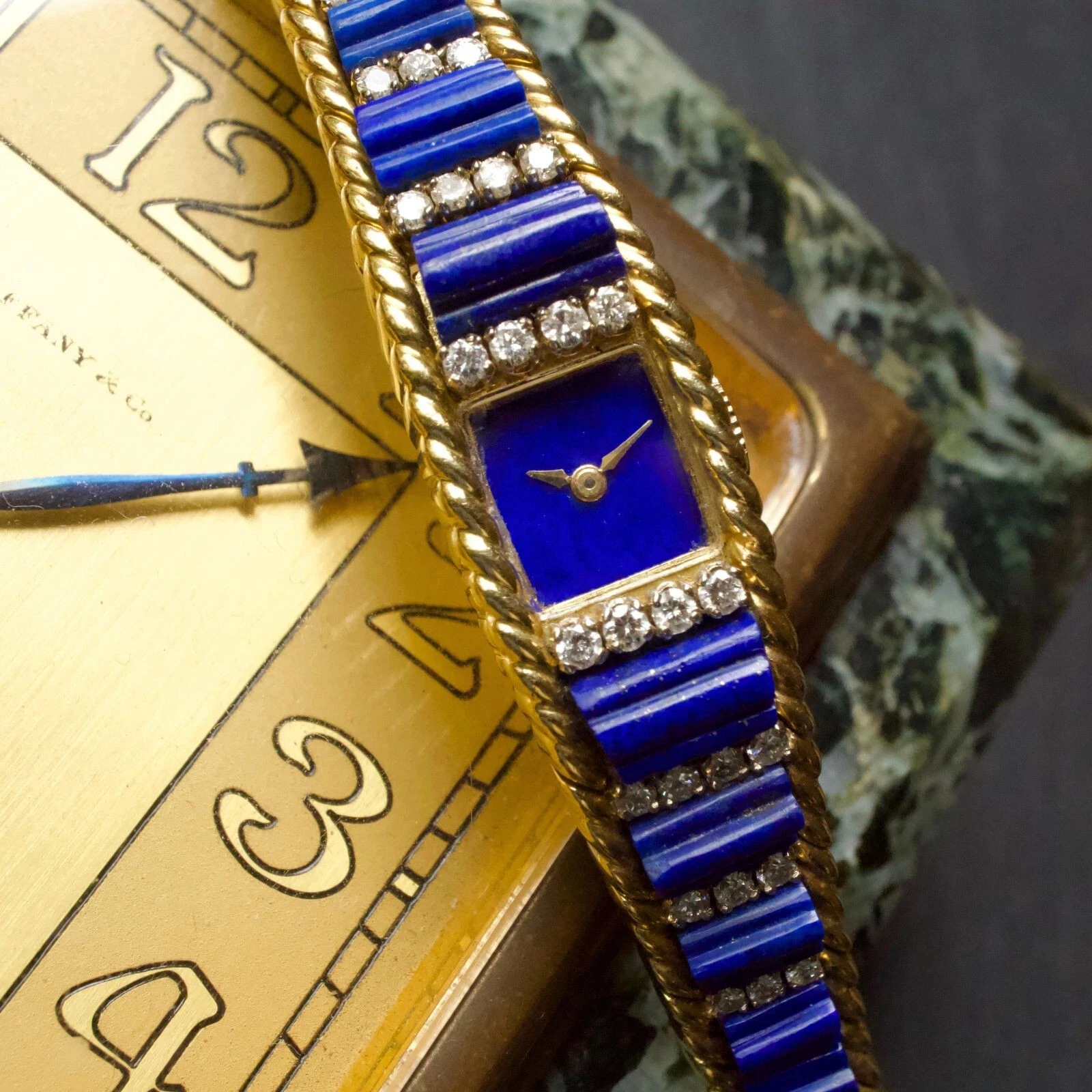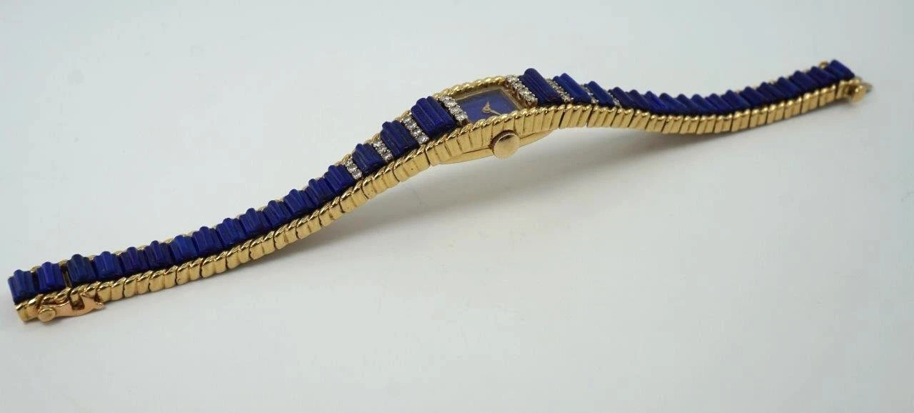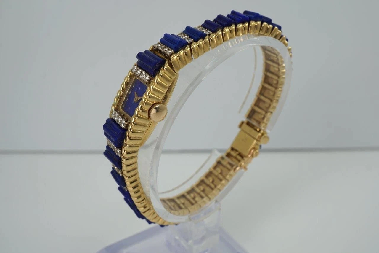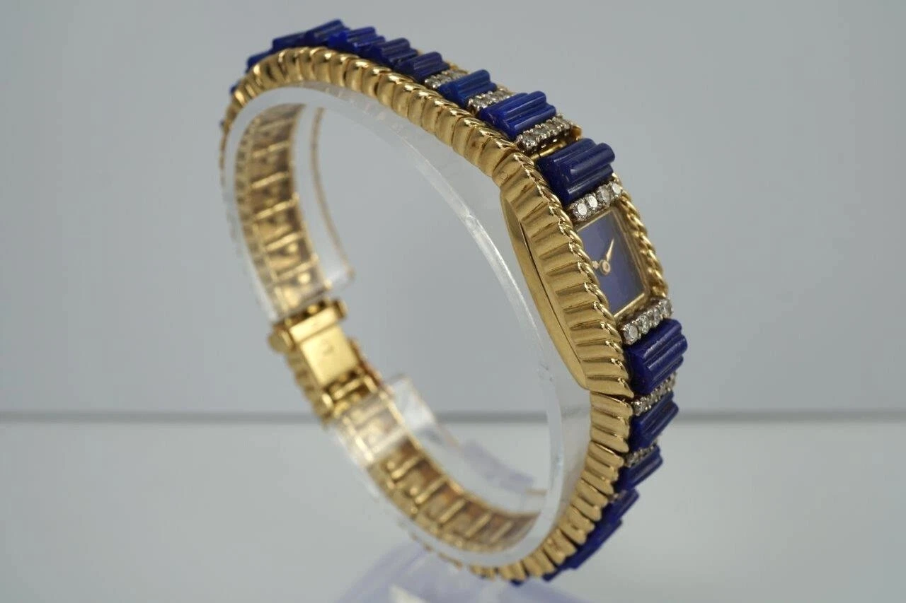 Neiman Marcus Rare French 18k Gold Lapis Lazuli & Diamond Women’s 14 mm 1970s