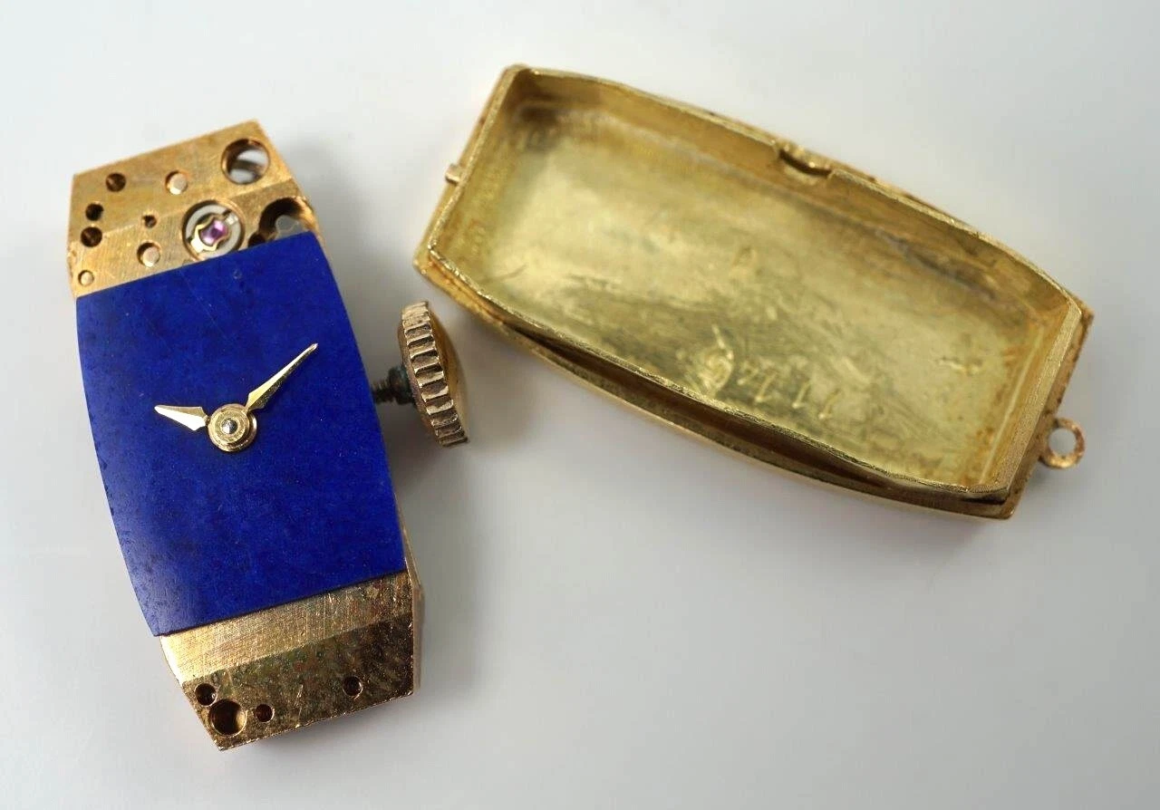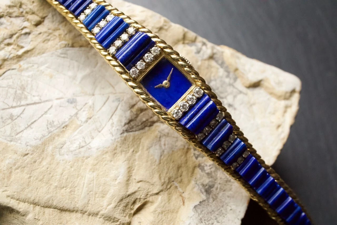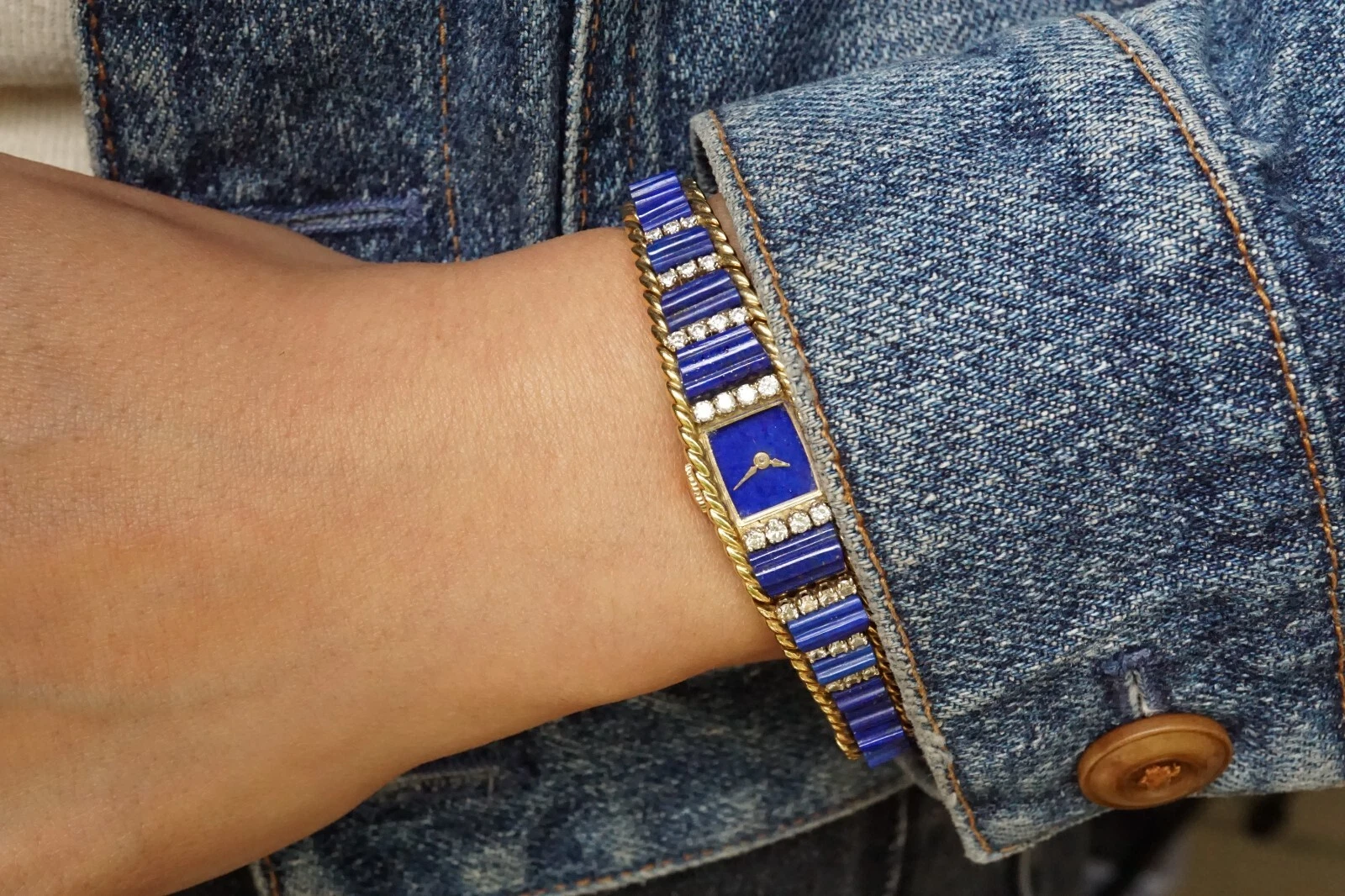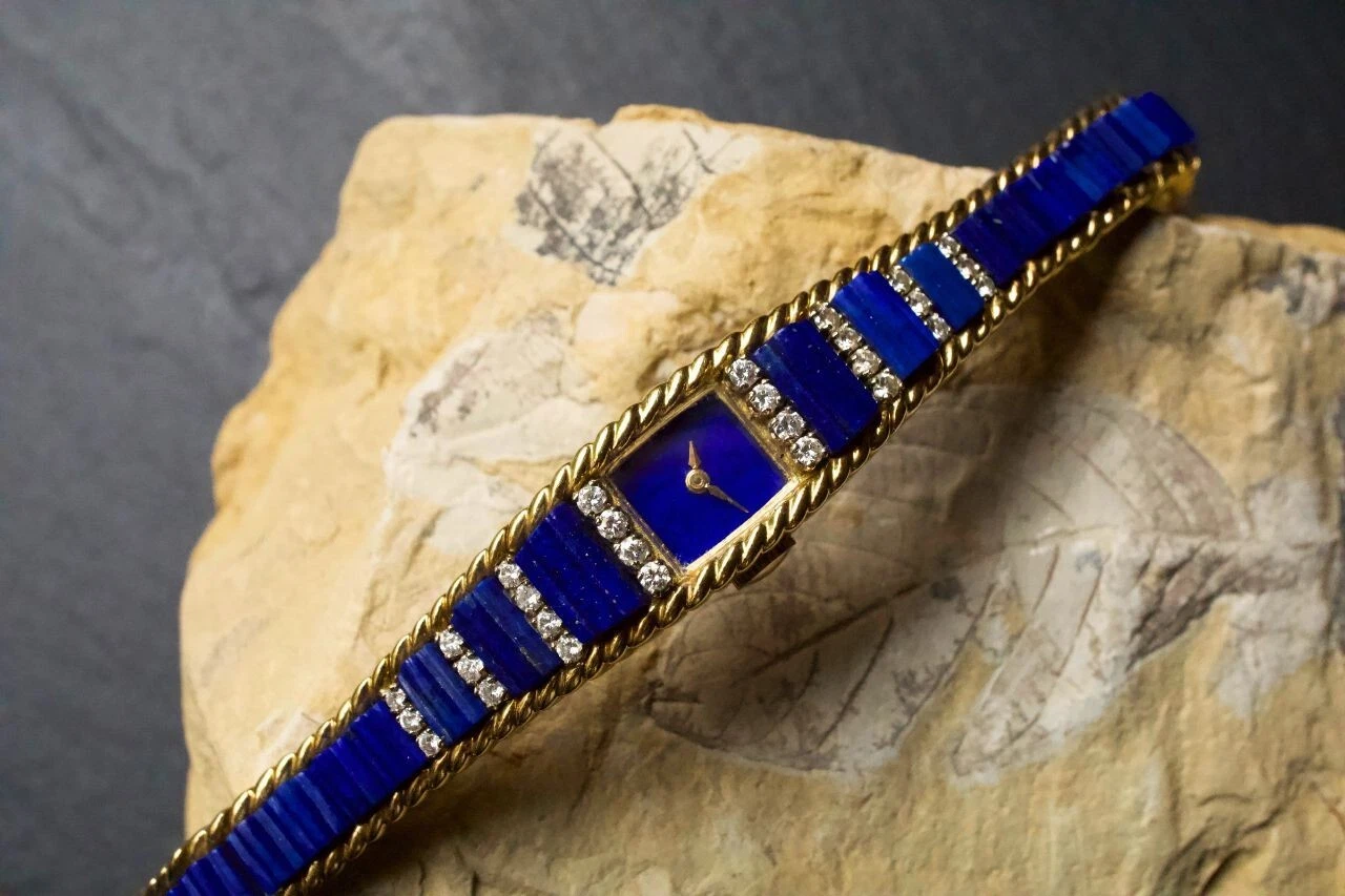 Neiman Marcus Rare French 18k Gold Lapis Lazuli & Diamond Women’s 14 mm 1970s