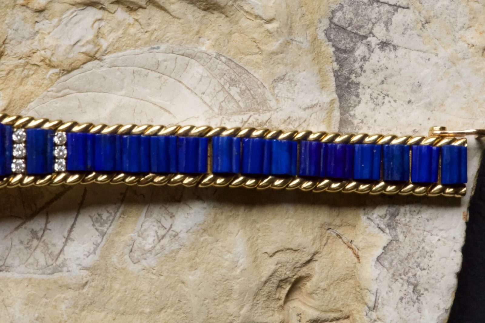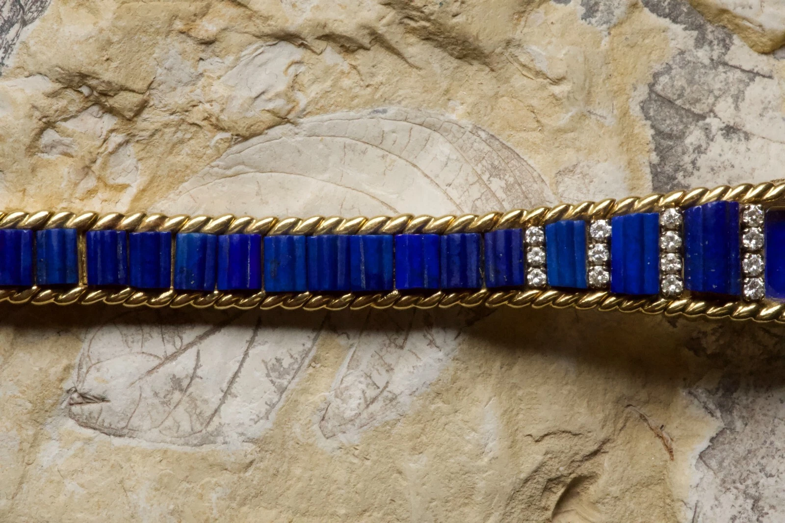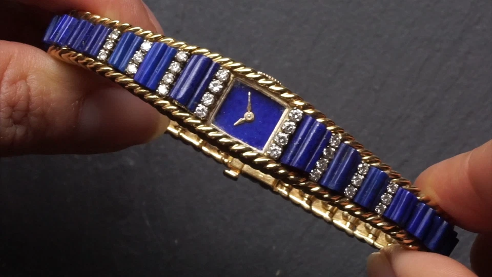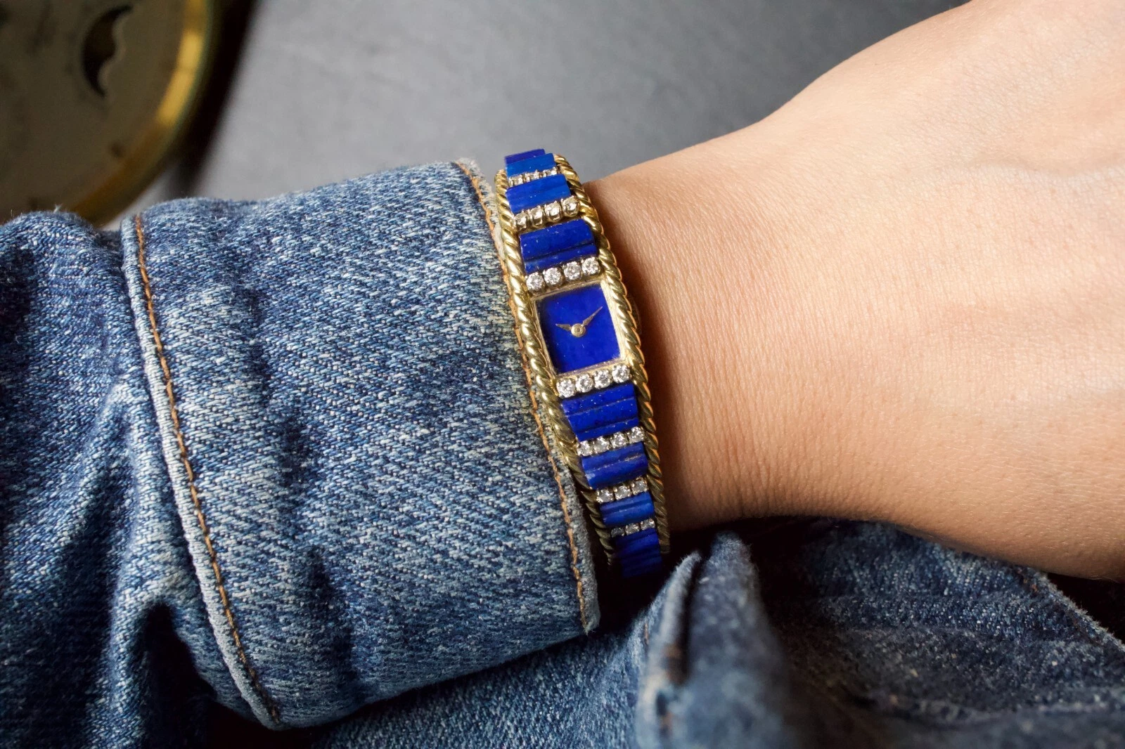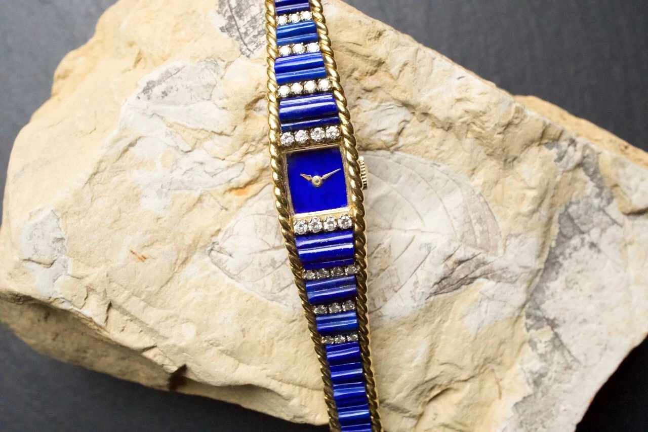 Neiman Marcus Rare French 18k Gold Lapis Lazuli & Diamond Women’s 14 mm 1970s
