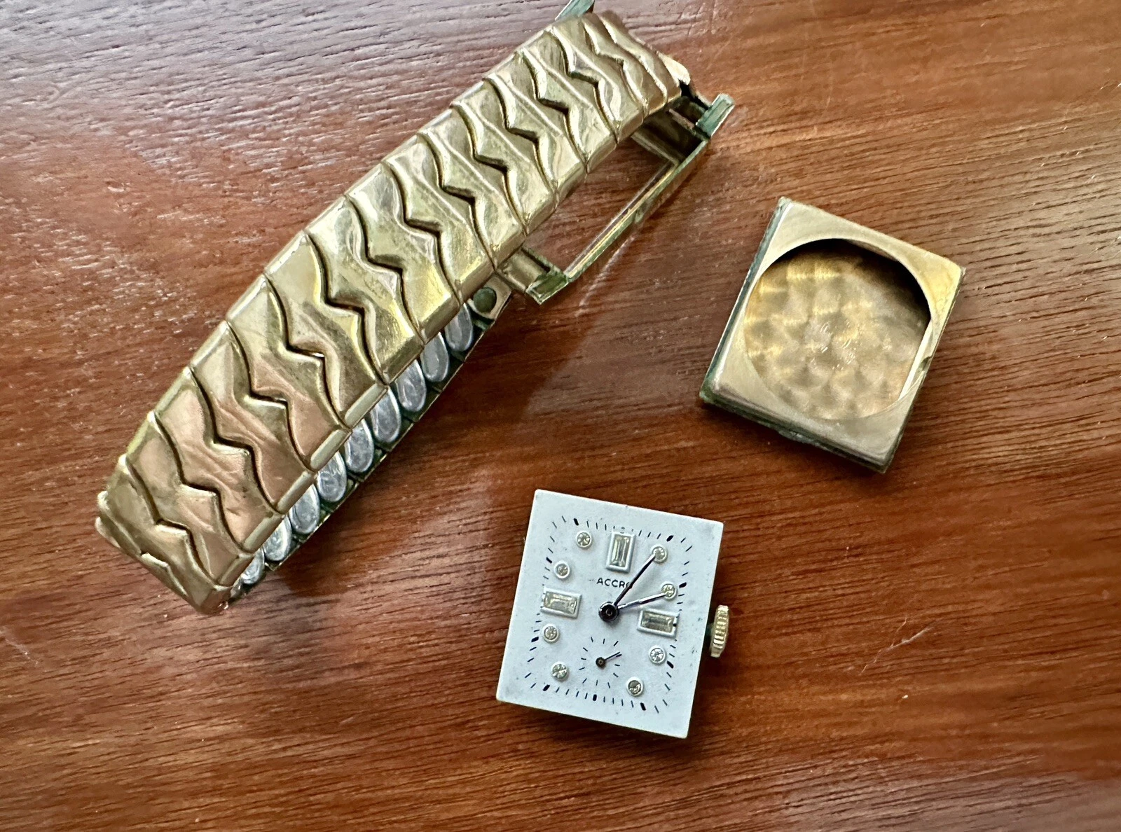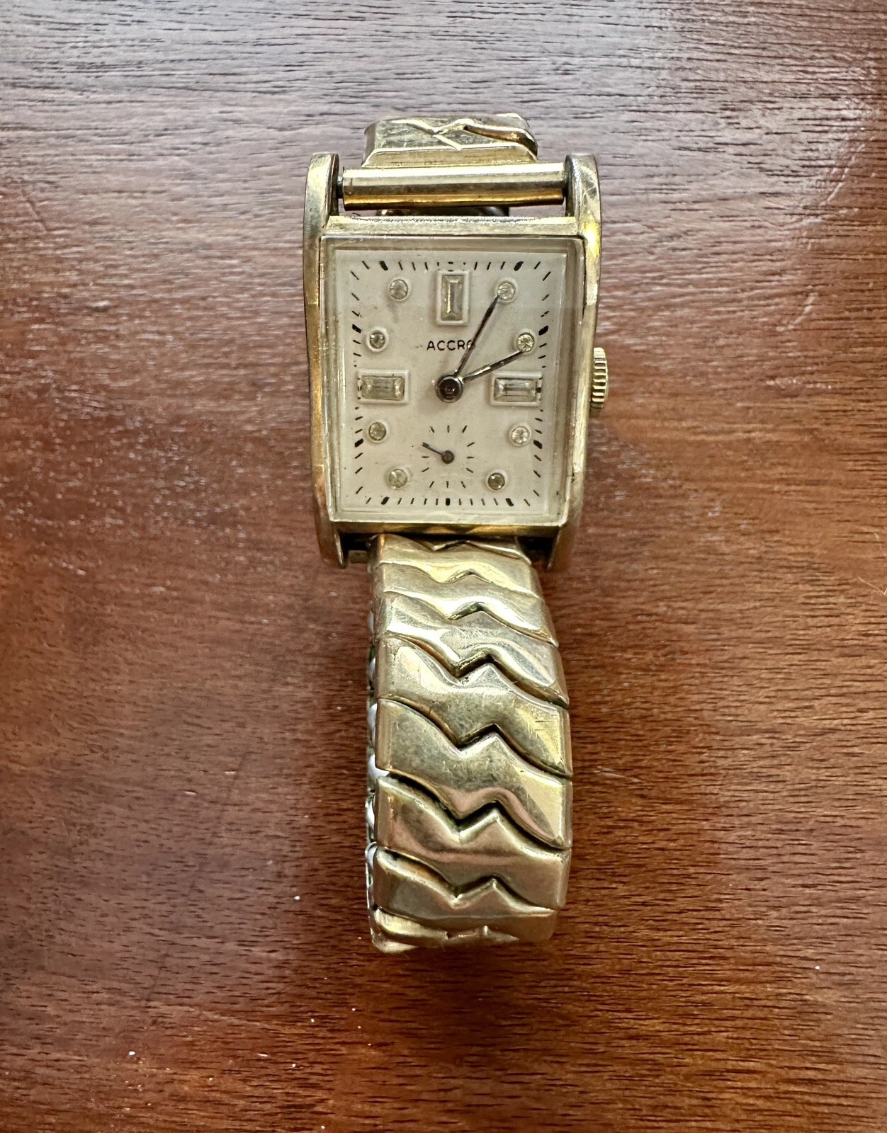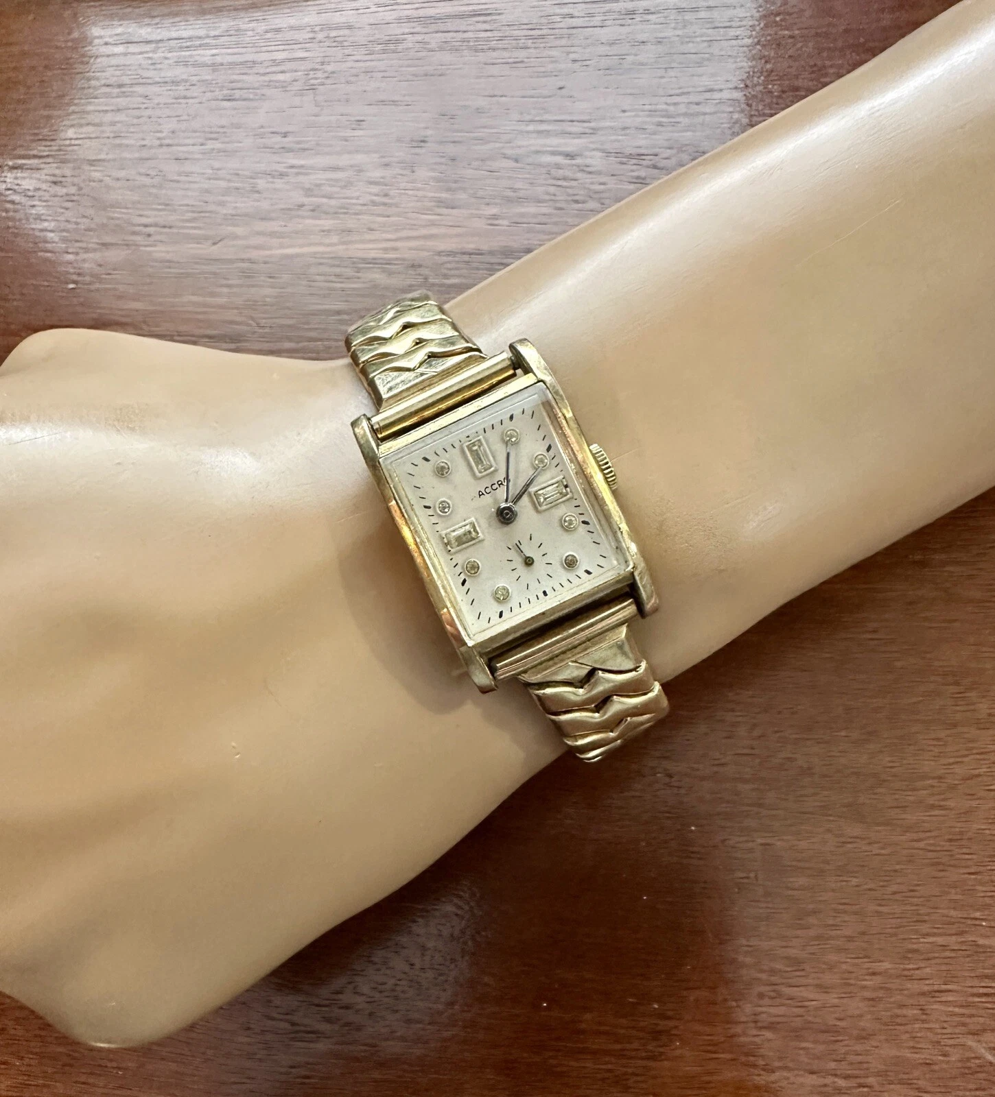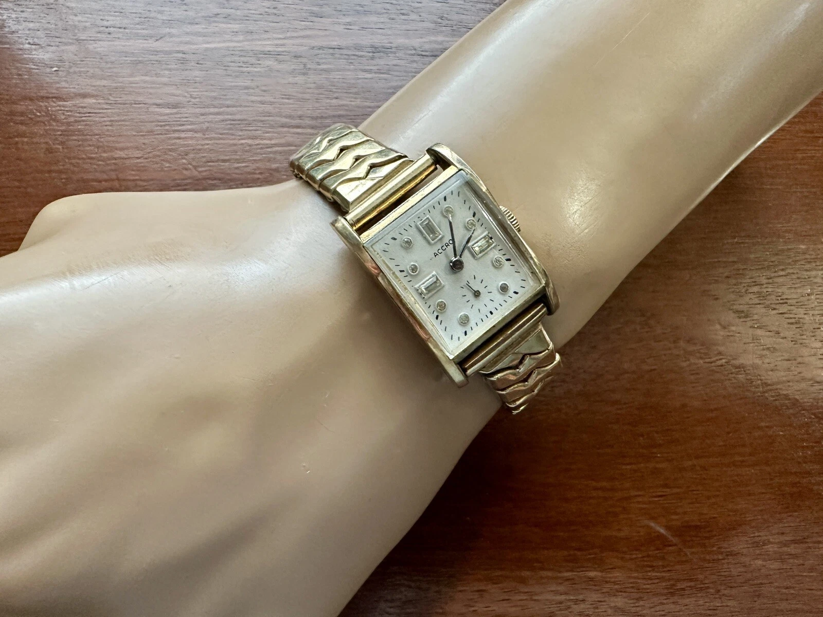 Vintage Mens 10k Rolled Gold Accro Jeweled Face 17j Wristwatch Watch Band