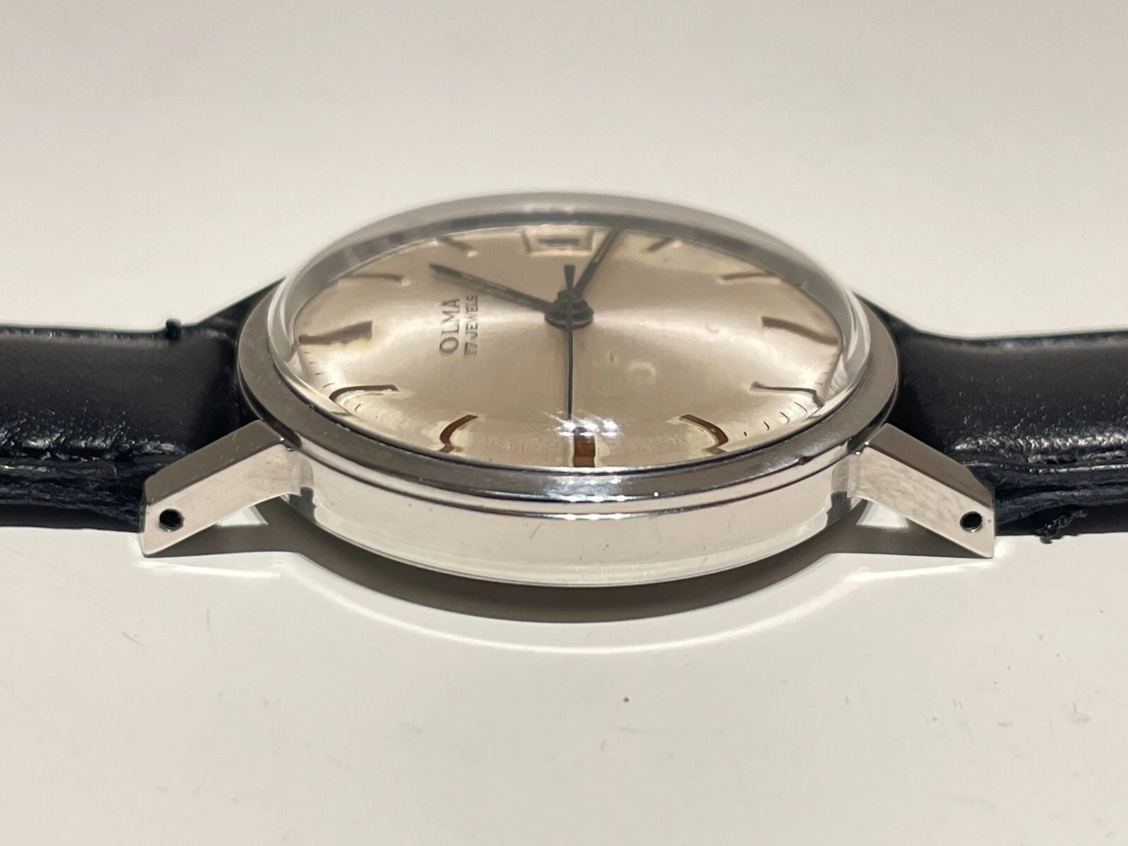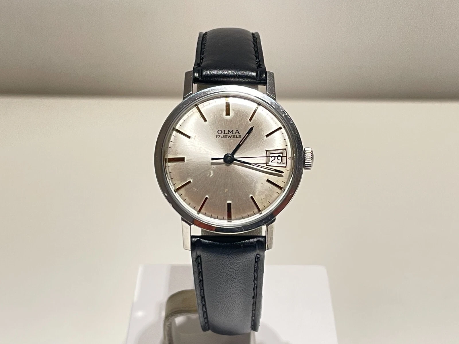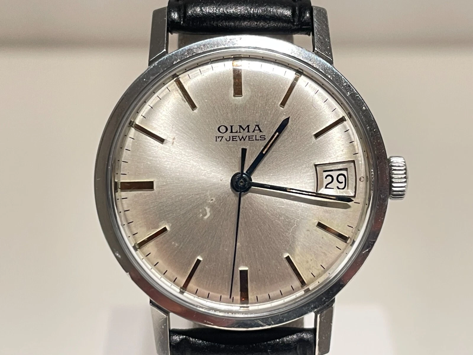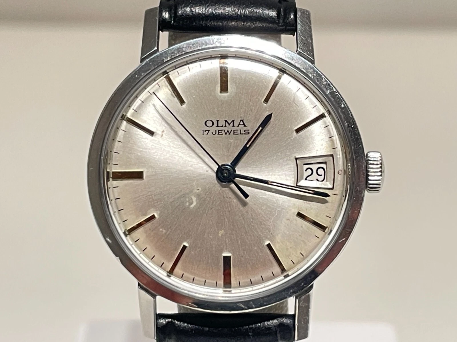 VINTAGE NICE CLASS ELEGANT 32mm ST. STEEL MECHANICAL SWISS MEN'S WATCH "OLMA"