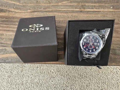 Oniss Paris MECA Men’s Watch Blue Dial Large Face Day/Date ON2233-MBU