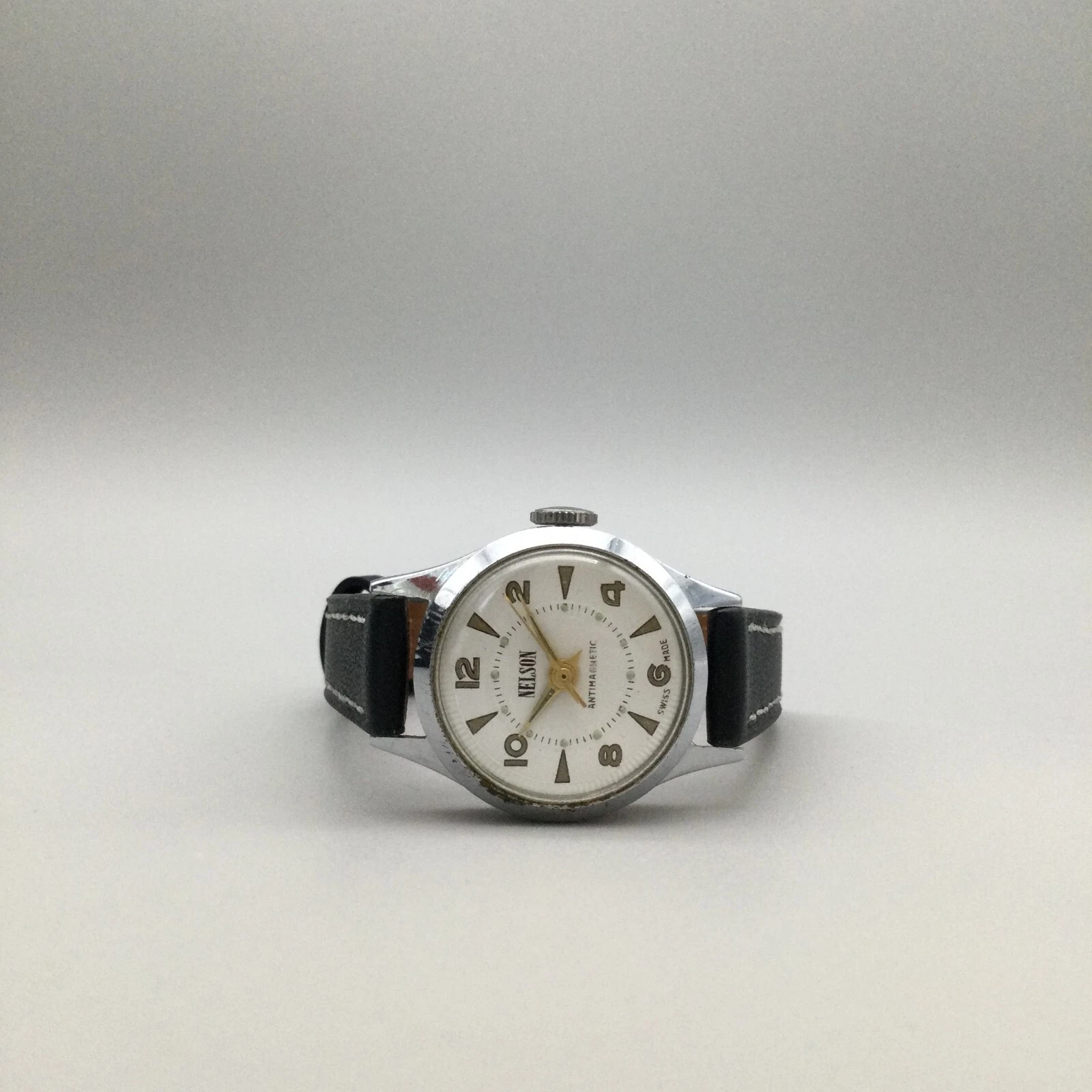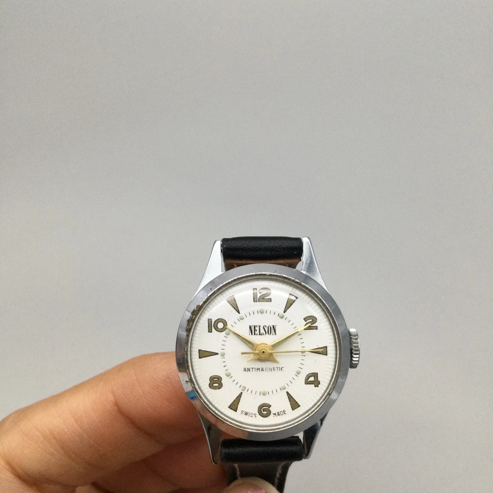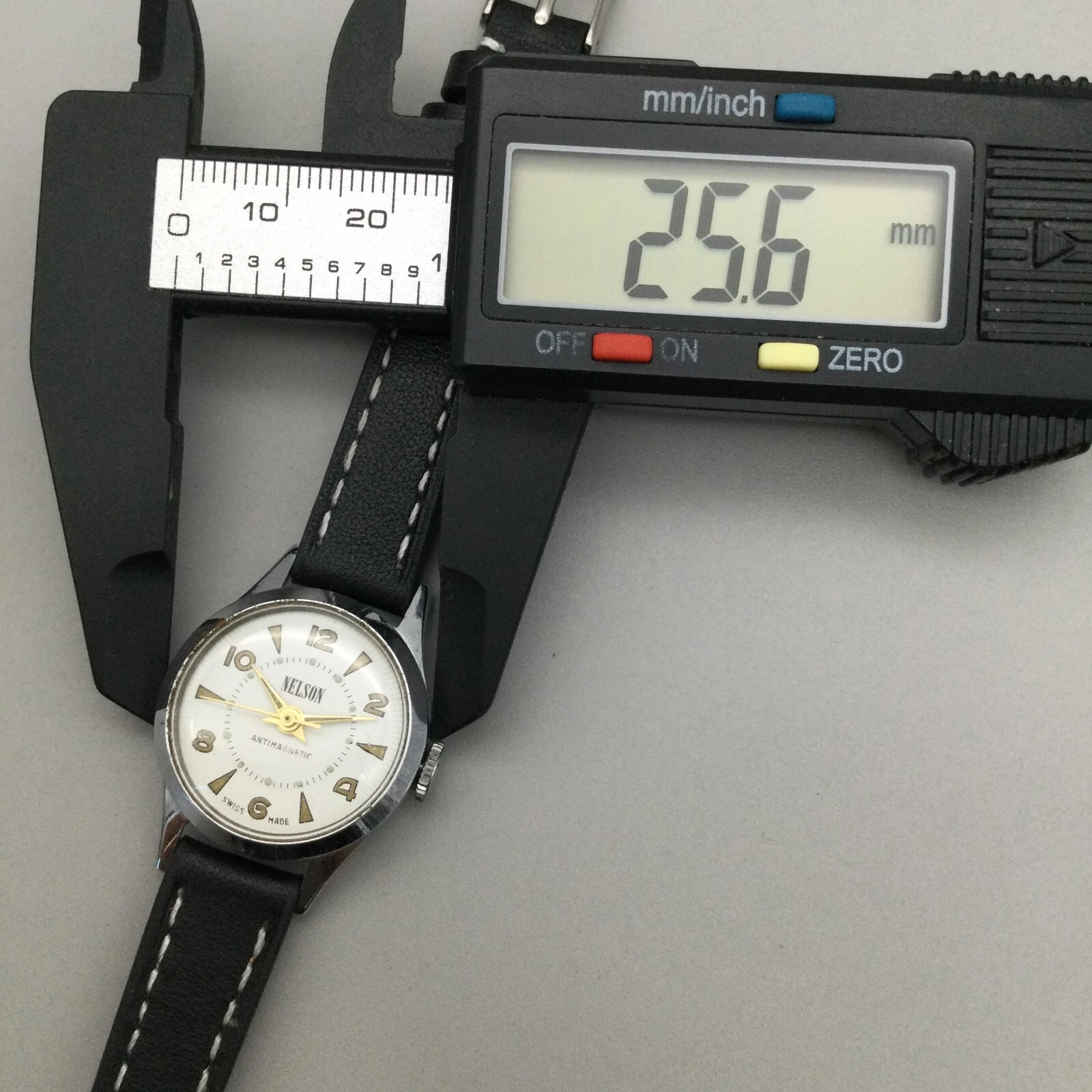 Vtg Nelson Watch Women 26mm Silver Tone Swiss Made Leather Band Manual Wind