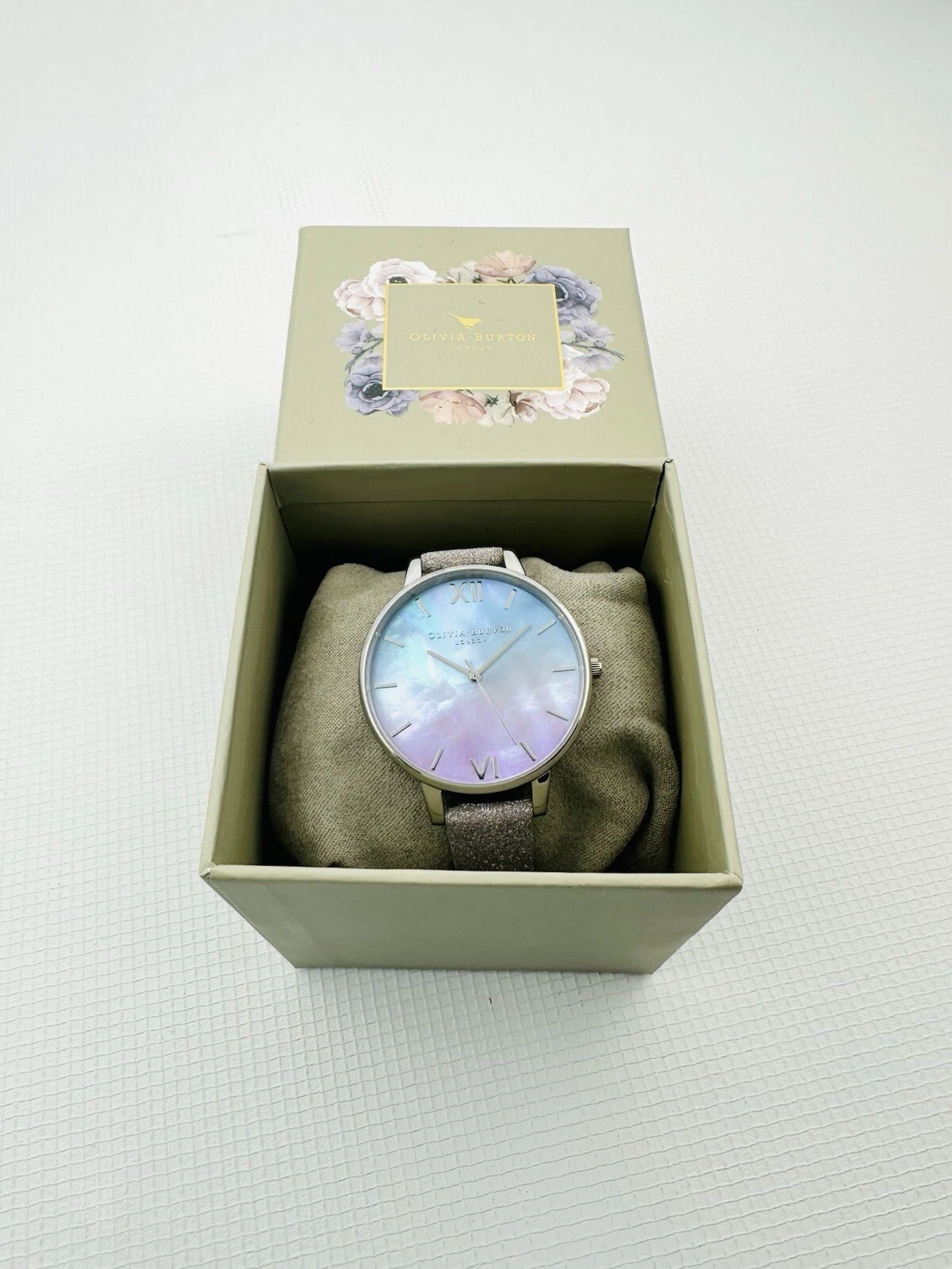 OLIVIA BURTON OBG143 OMBRE MOTHER OF PEARL DIAL WATCH WITH LILAC GLITTER STRAP