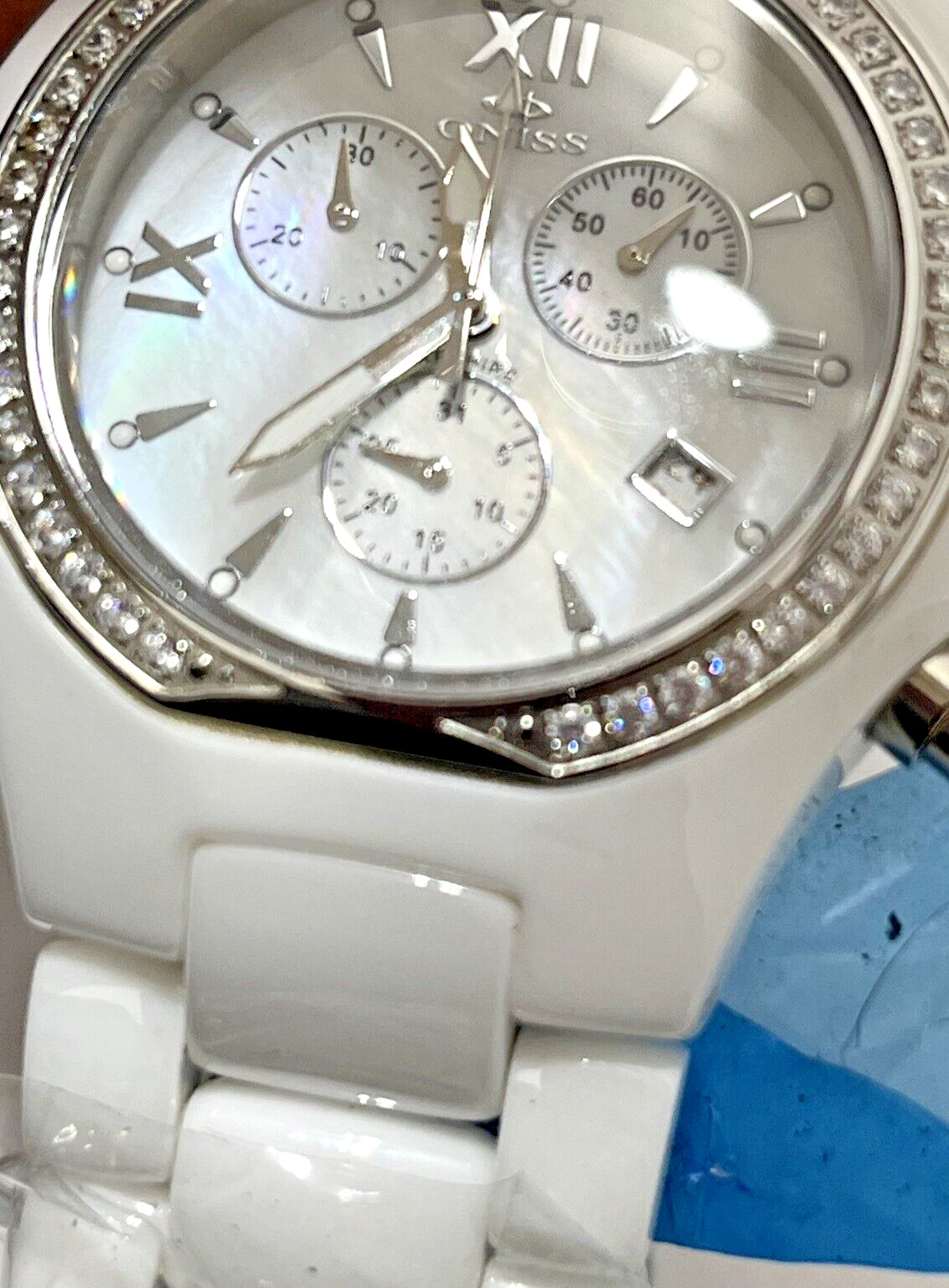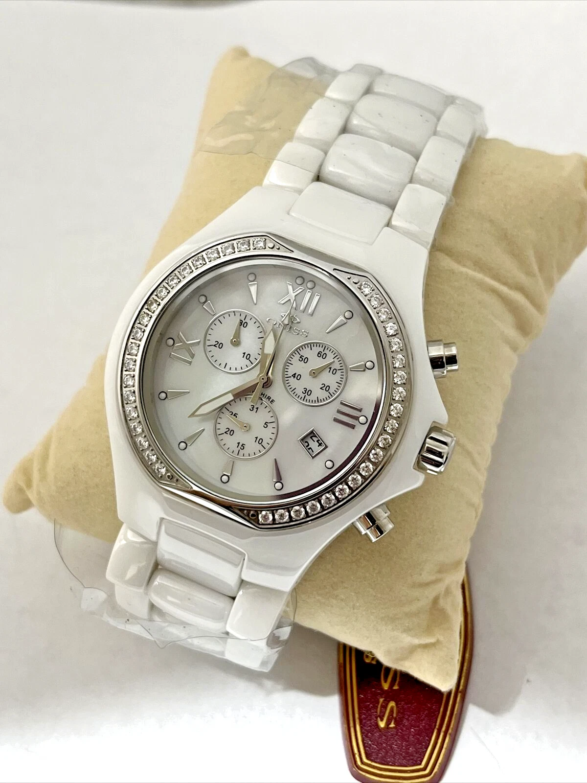 ONISS Chronograph Watch ON810-M Diamond Black Dial Swiss Box/Papers.need Battery