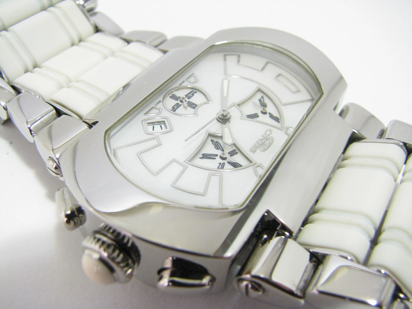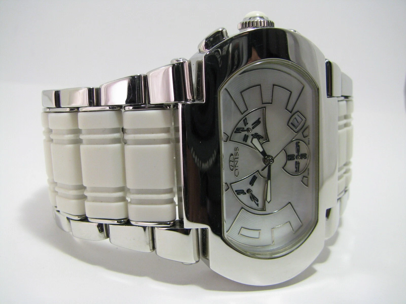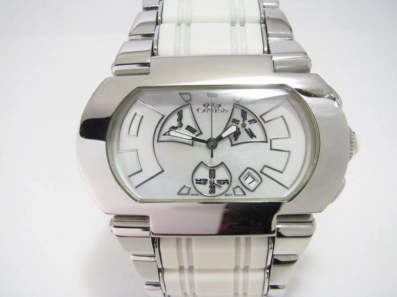 Oniss Swiss ETA Chronograph Watch Mother Of Pearl Dial Sleek Space Age Design