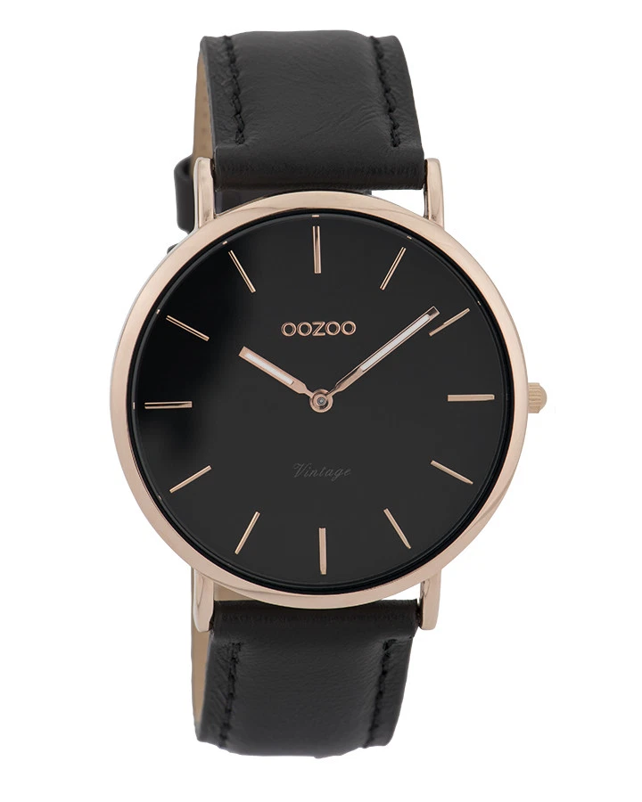 Oozoo Vintage Watch Black/Rose Very Flat Leather Strap Ø40mm 9318