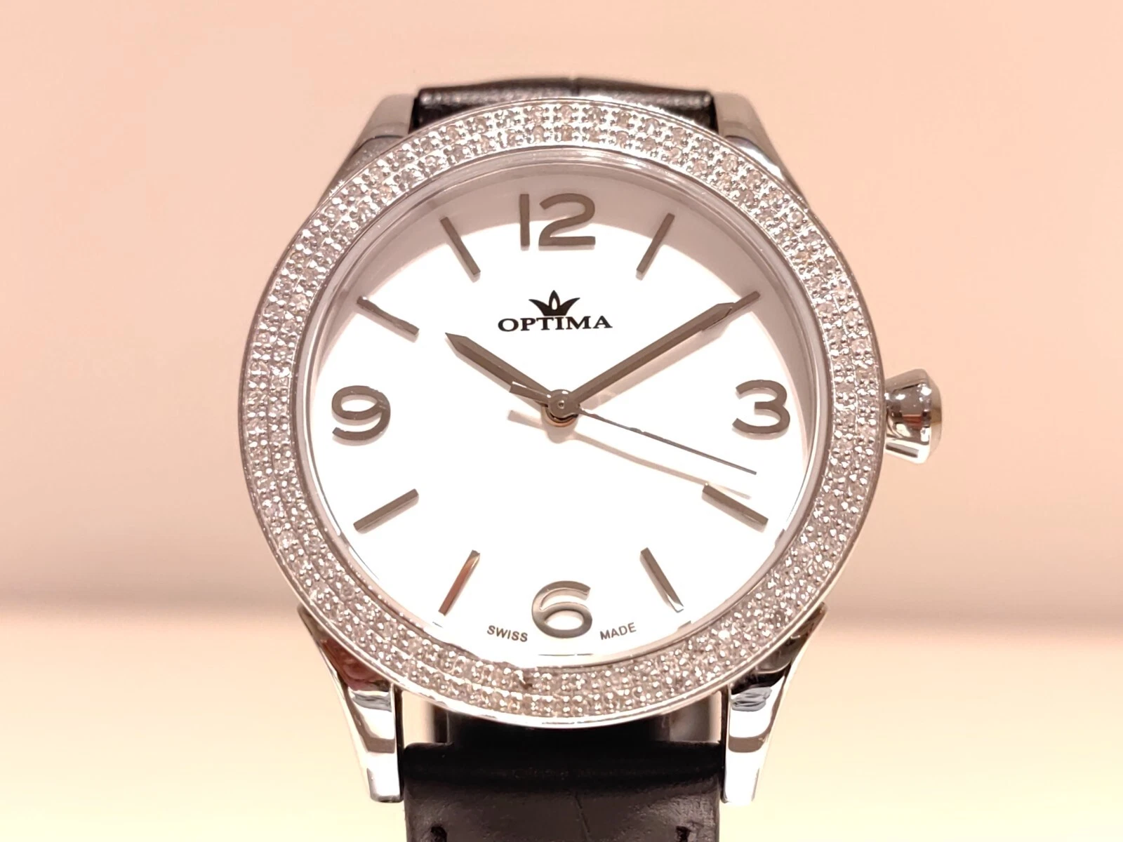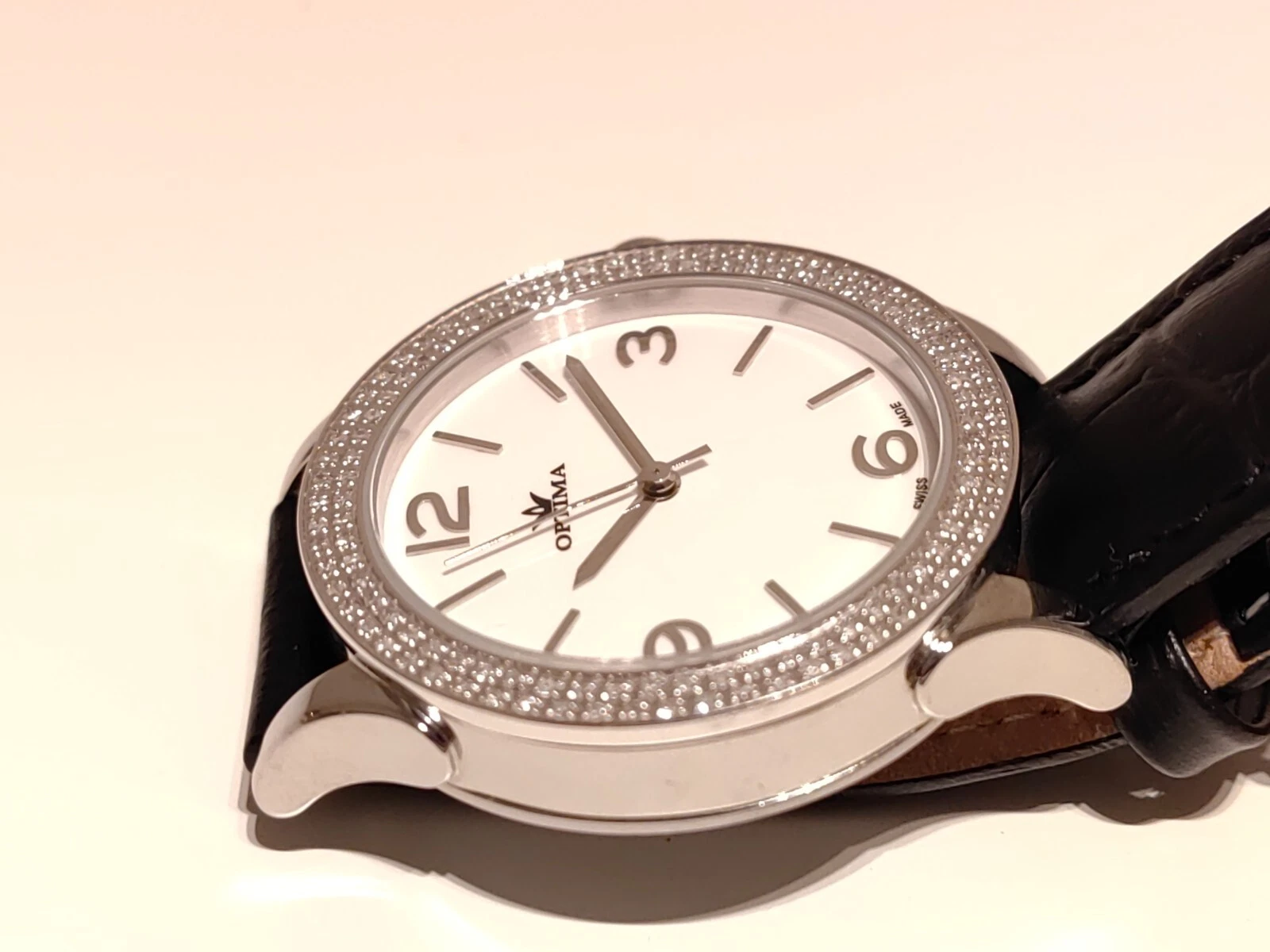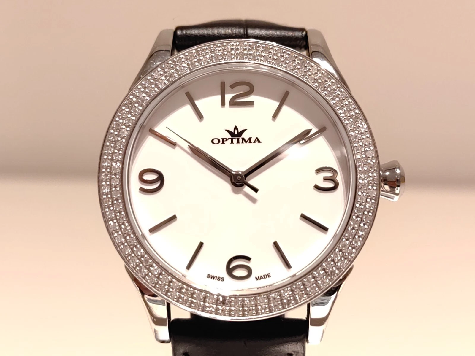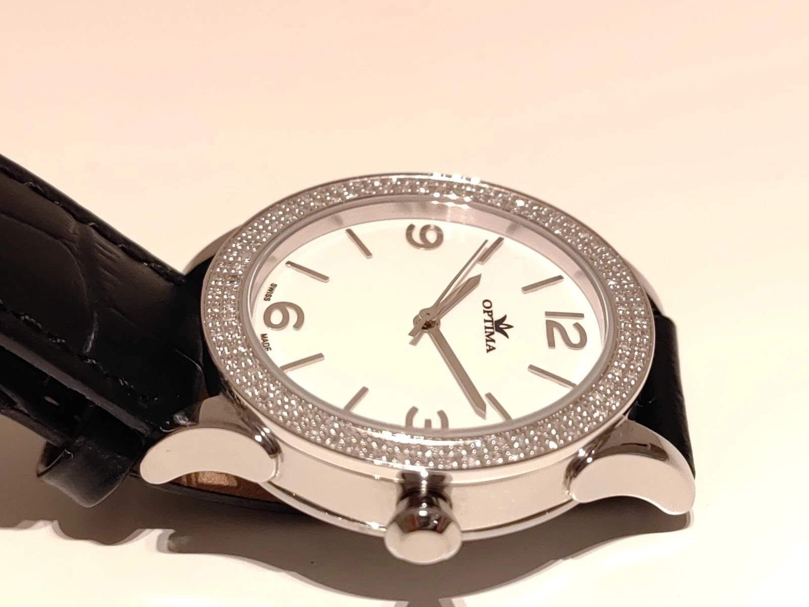 BEAUTIFUL LUXURY SWISS MEN LADIES QUARTZ WATCH "OPTIMA"WITH 128 DIAMONDS/0.68cts