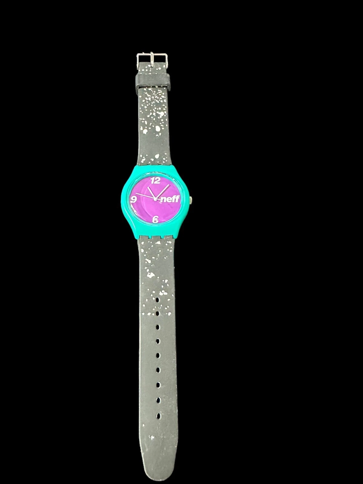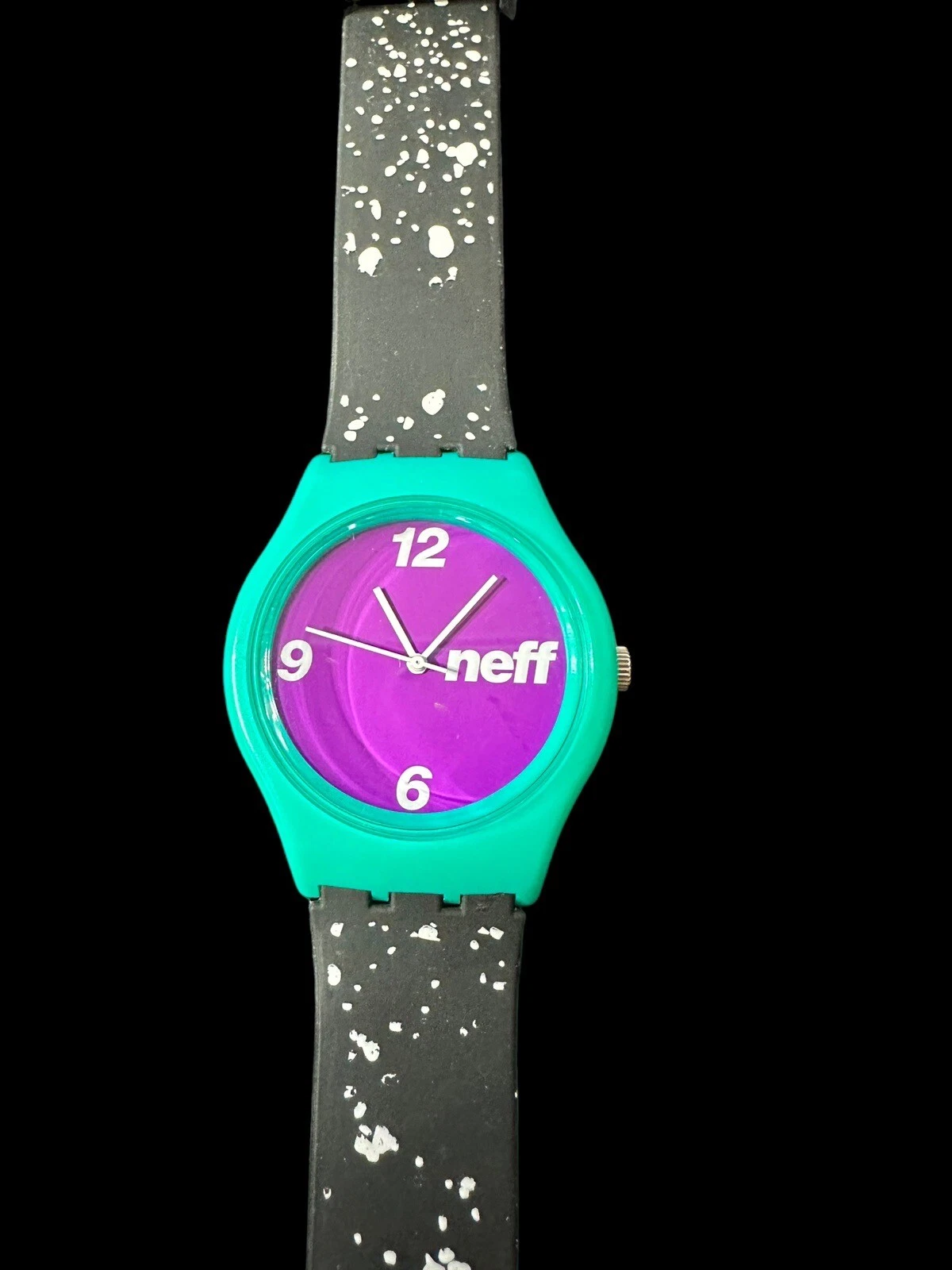 Neff Typhoon White Speckle Mint Green Case And Purple Dial Watch EUC Rare Color