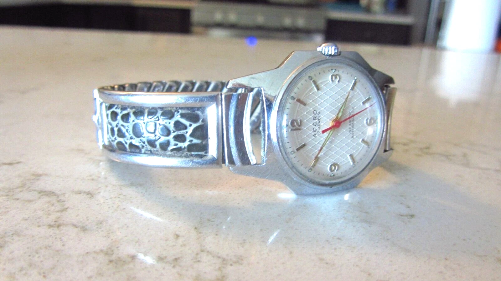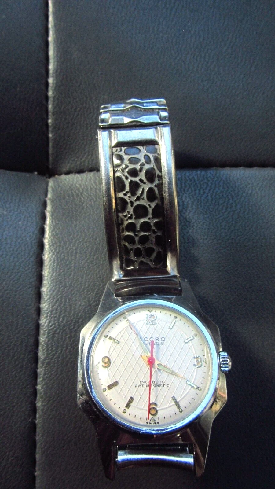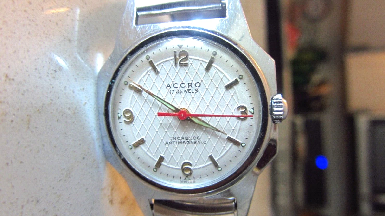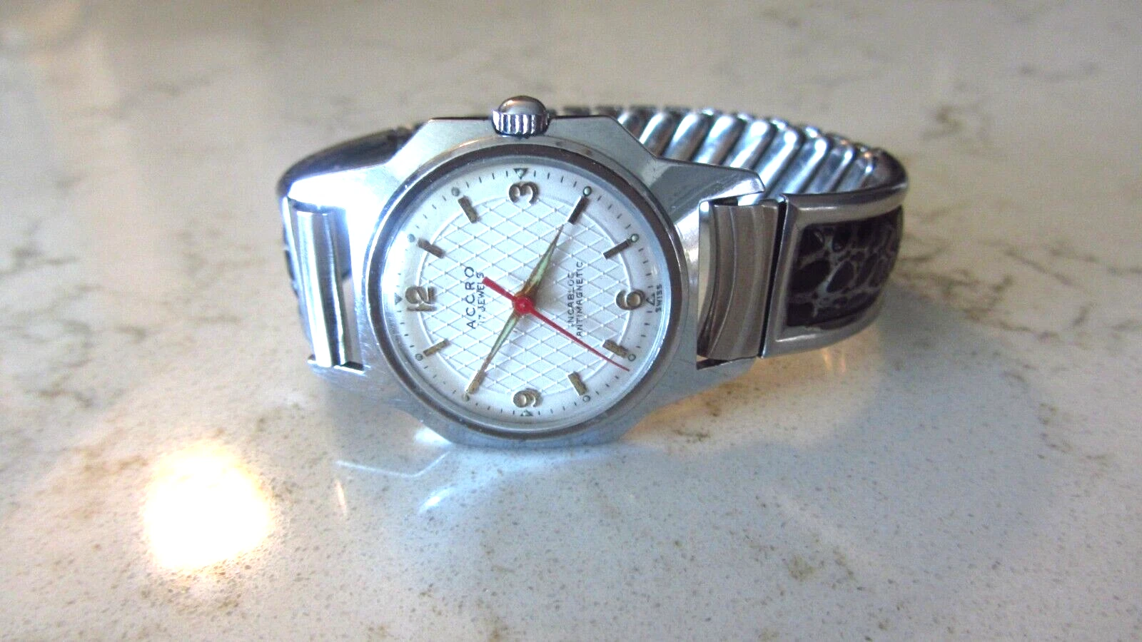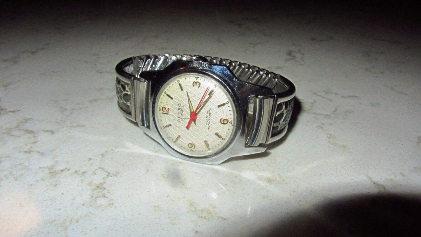 Accro Swiss 17J Watch Anti Magnetic Incabloc Fidelity Band Wind Up Working 20 Hr