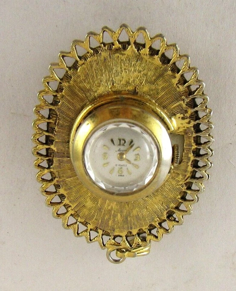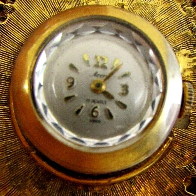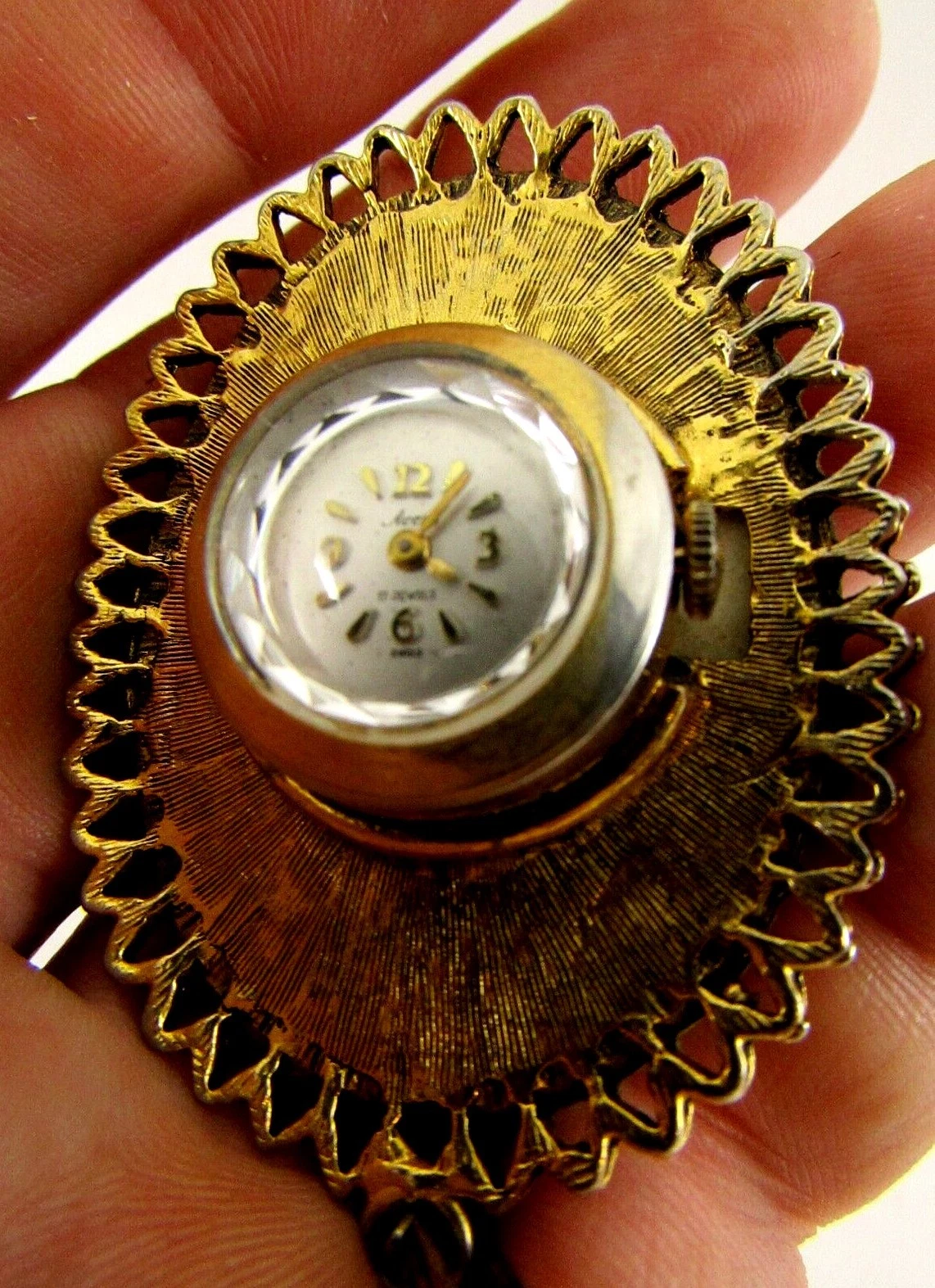 Vintage Accro Gold Tone 17 Jeweled Watch Pendant/Cameo Works.