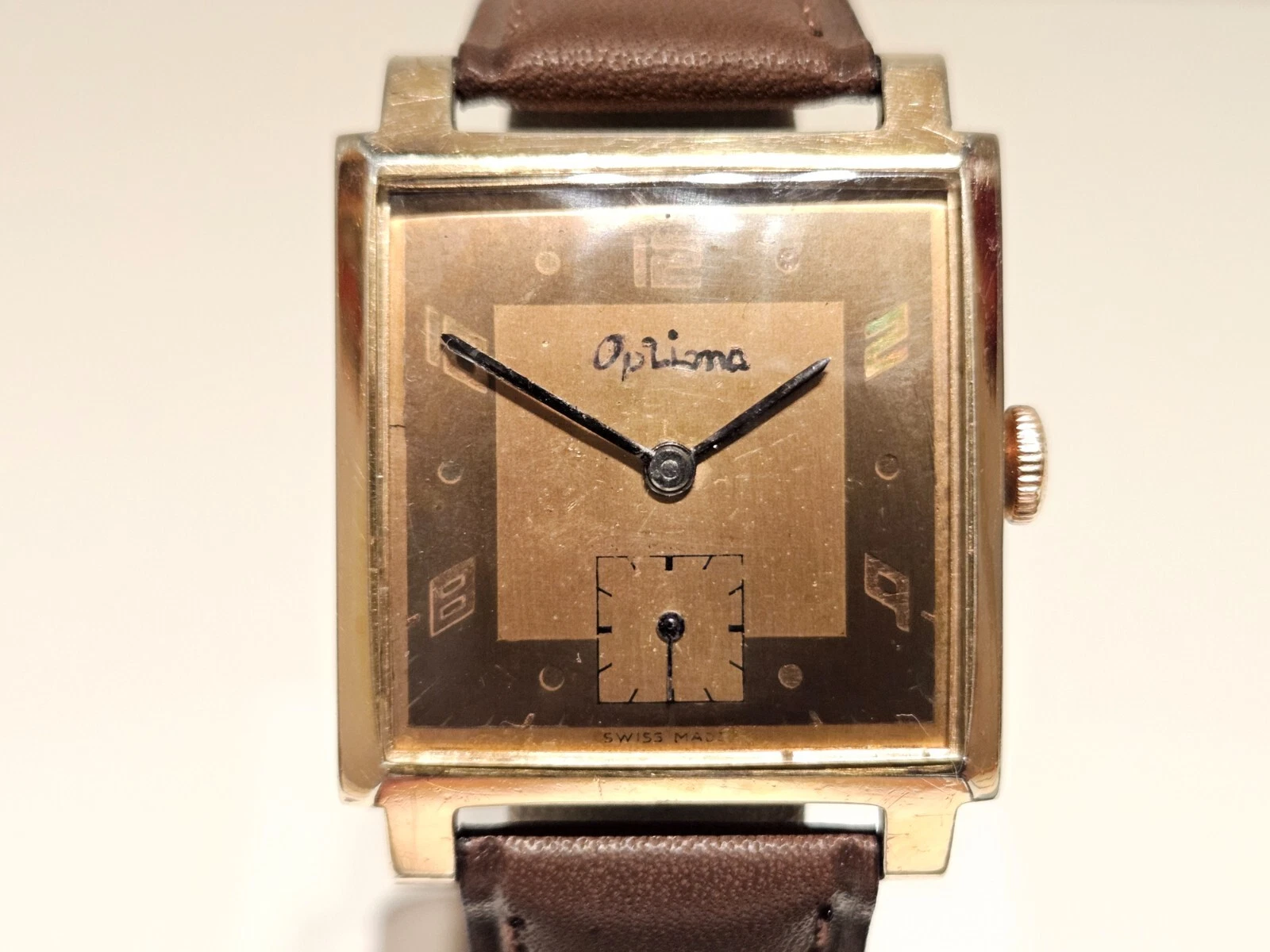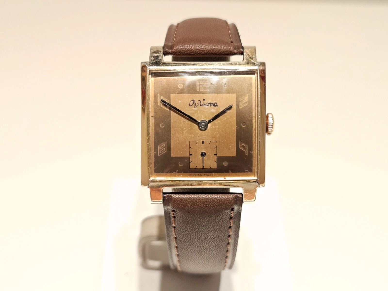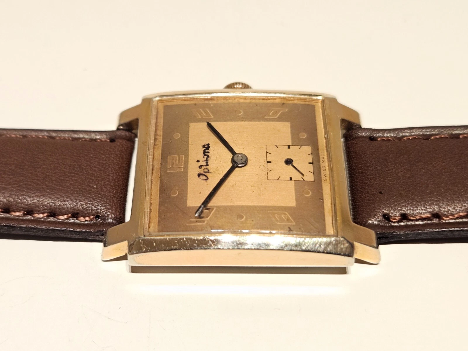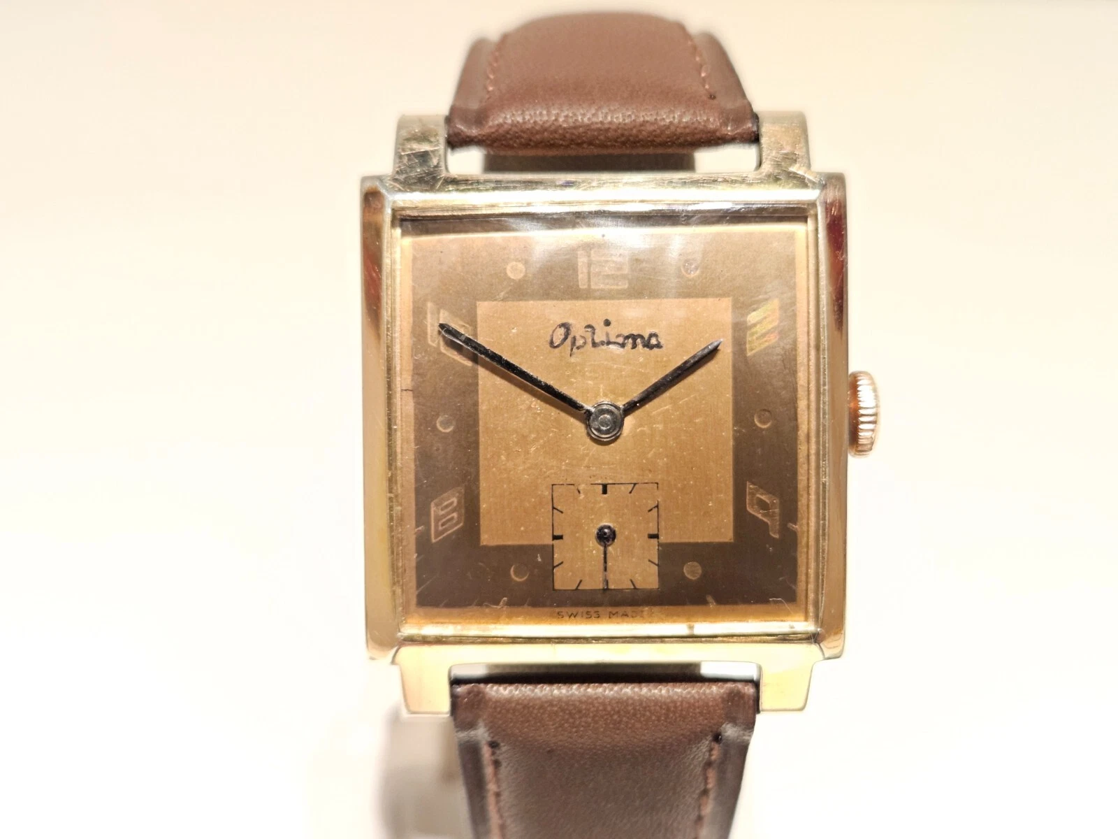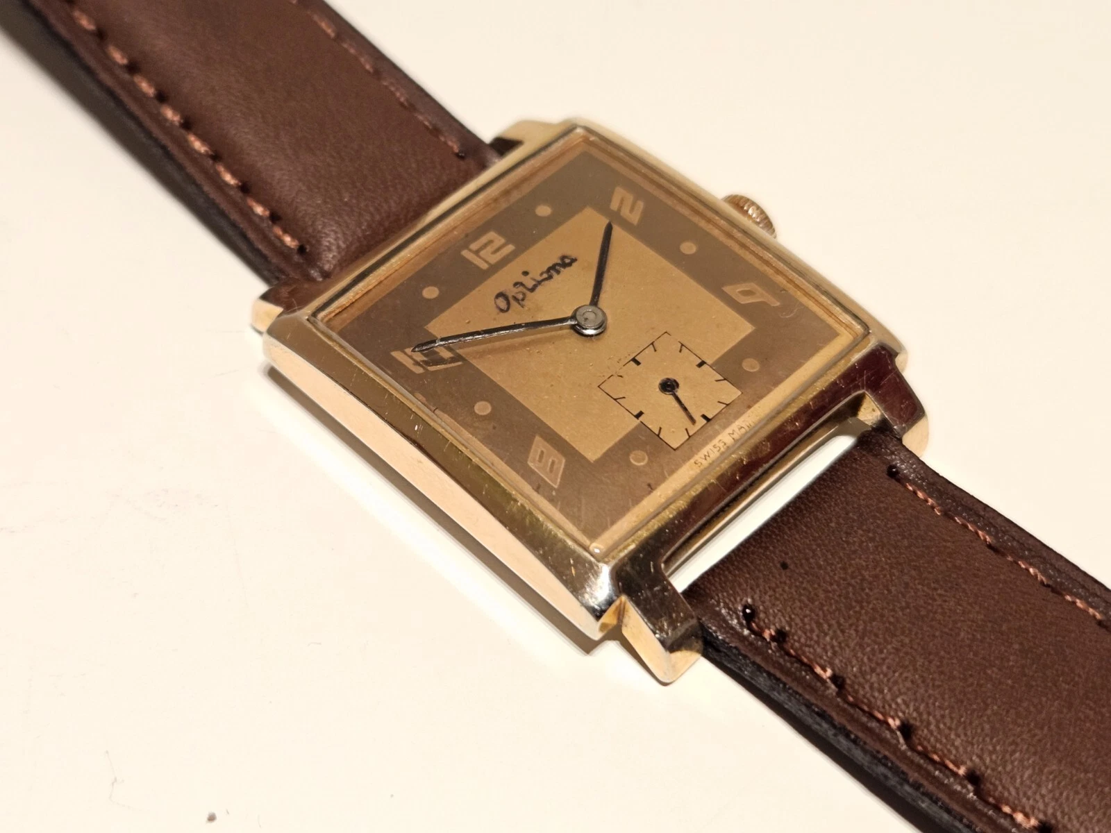 VINTAGE RARE WW2 SQUARE SWISS GOLD PLATED LUXURY MEN'S MECHANICAL WATCH "OPTIMA"